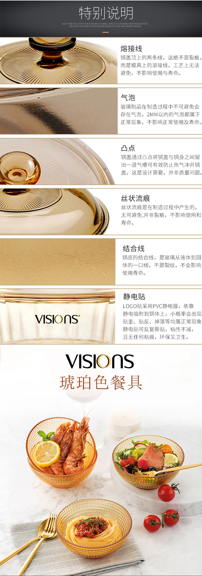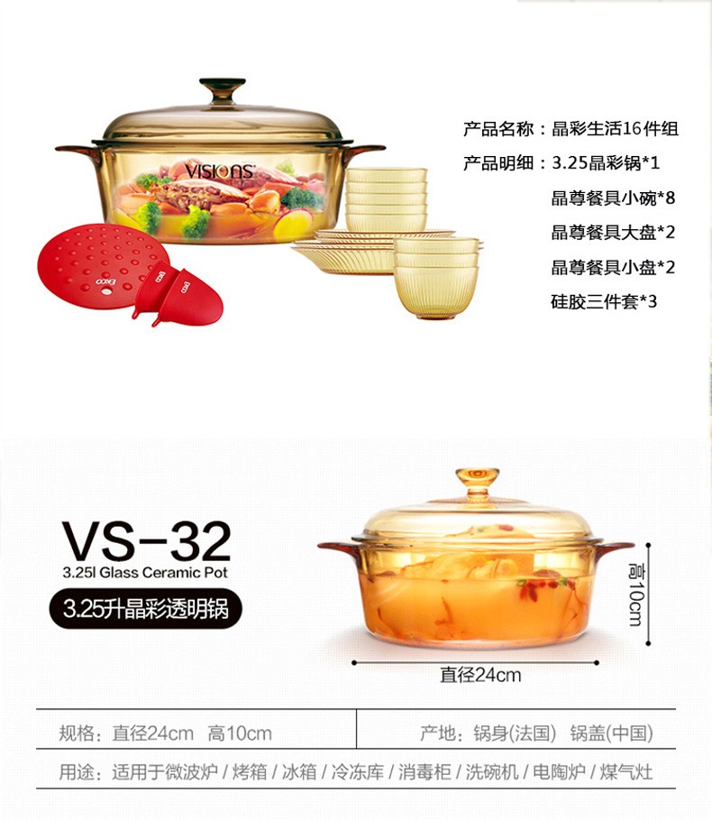 康宁(VISIONS) 晶彩透明锅煮锅汤锅visions晶莹系列锅具套装 晶彩生活16件组