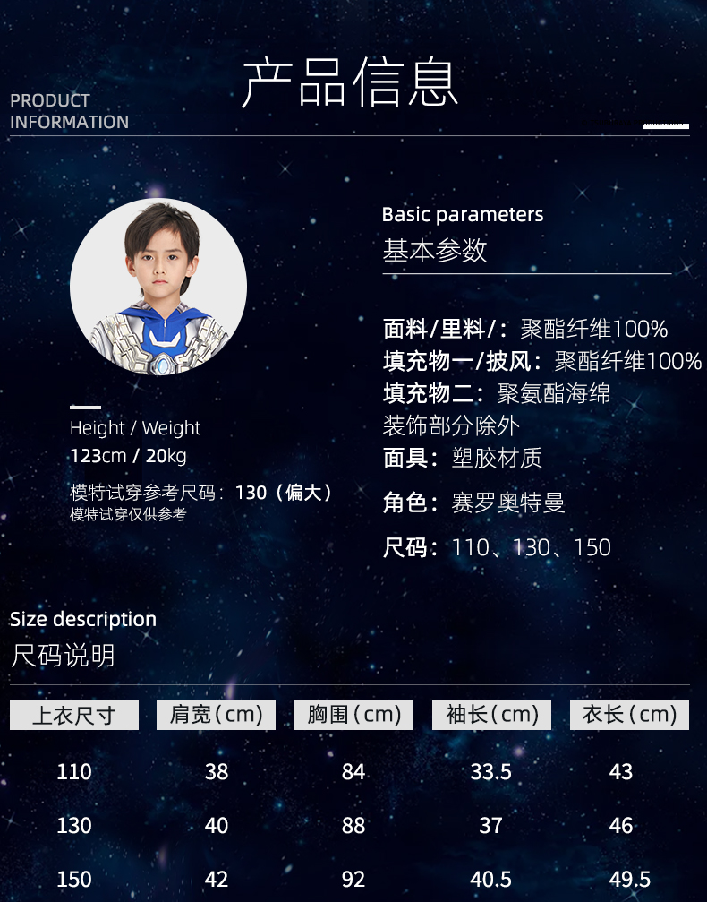 赛罗奥特曼披风立体面具套装男童儿童表演服装可发光胸灯肌肉服潮4919