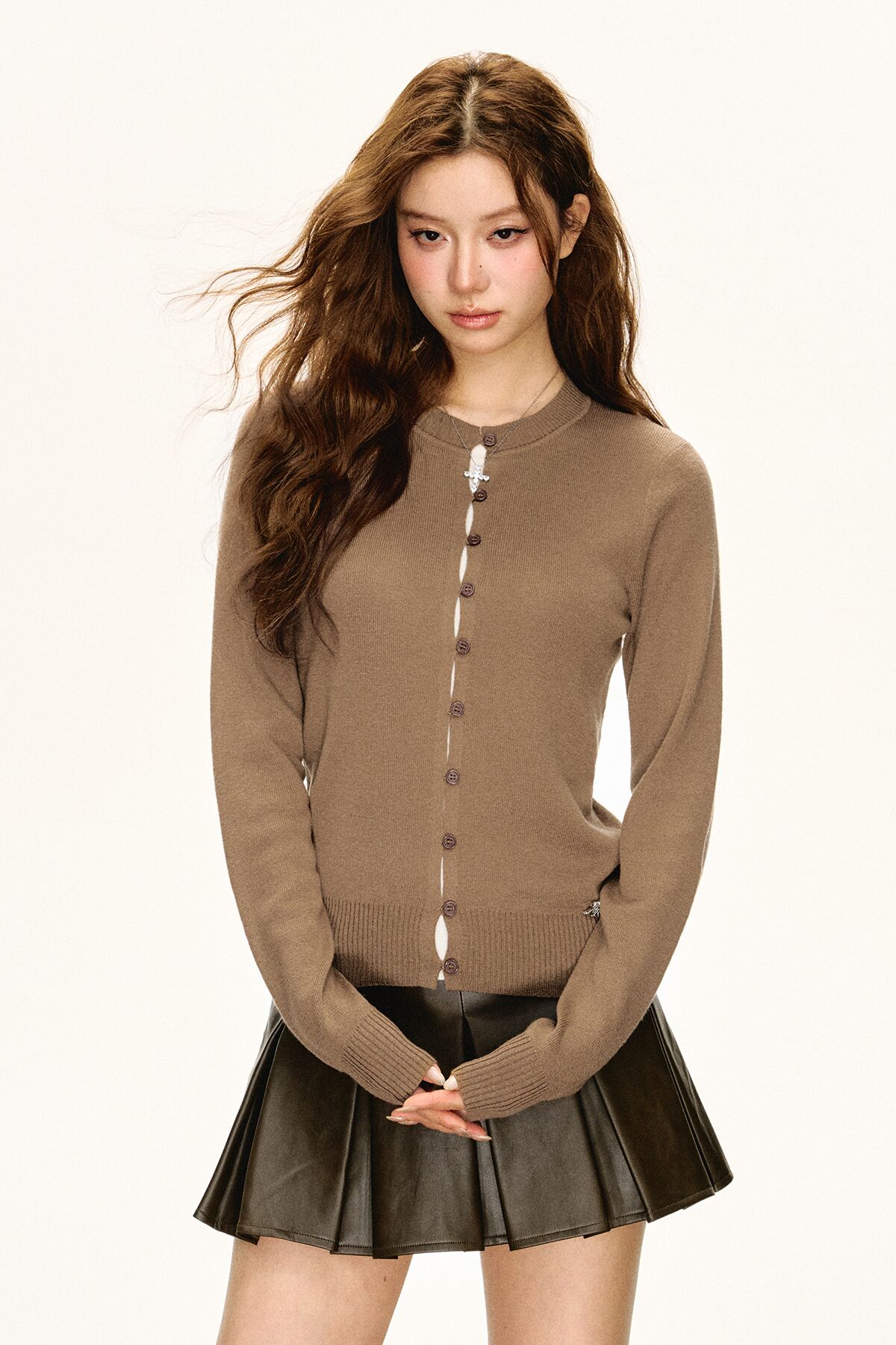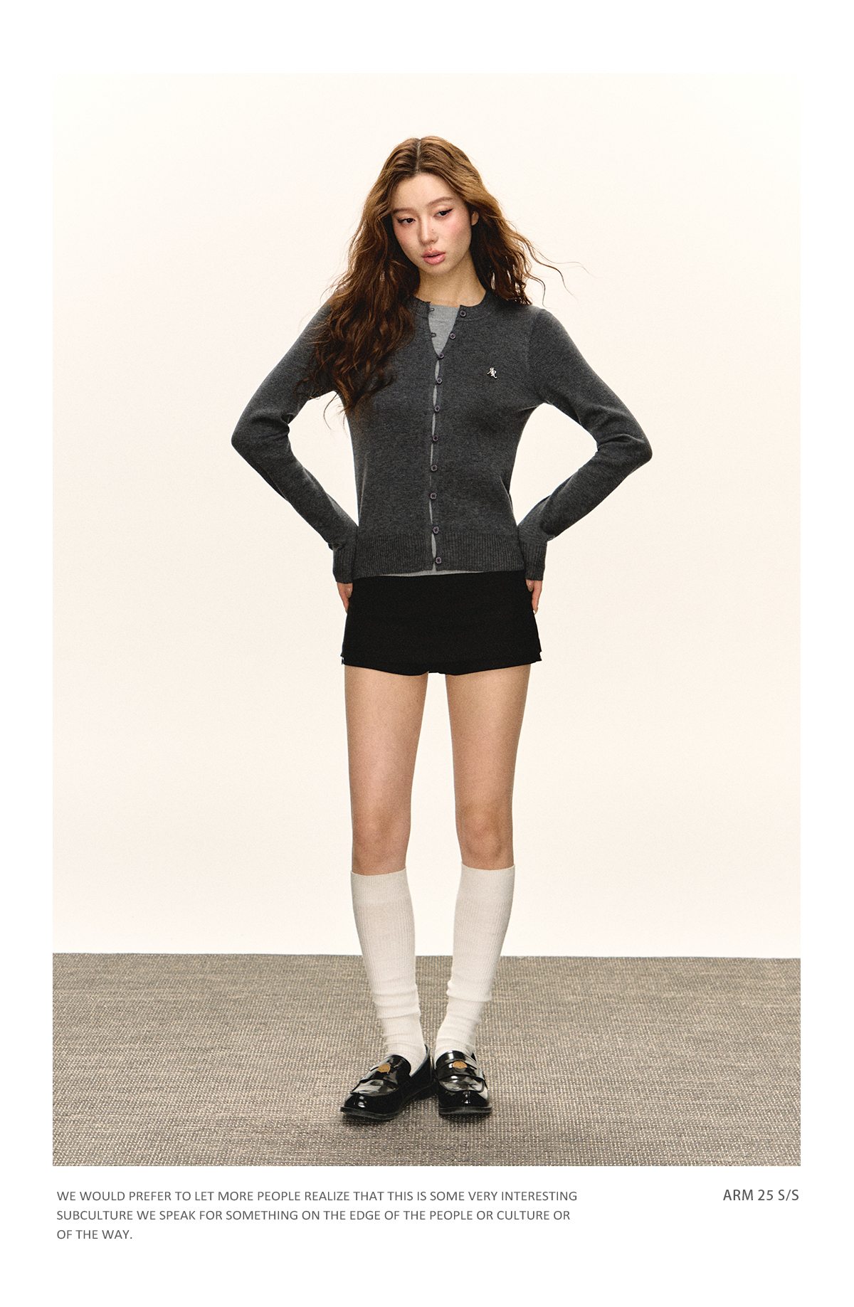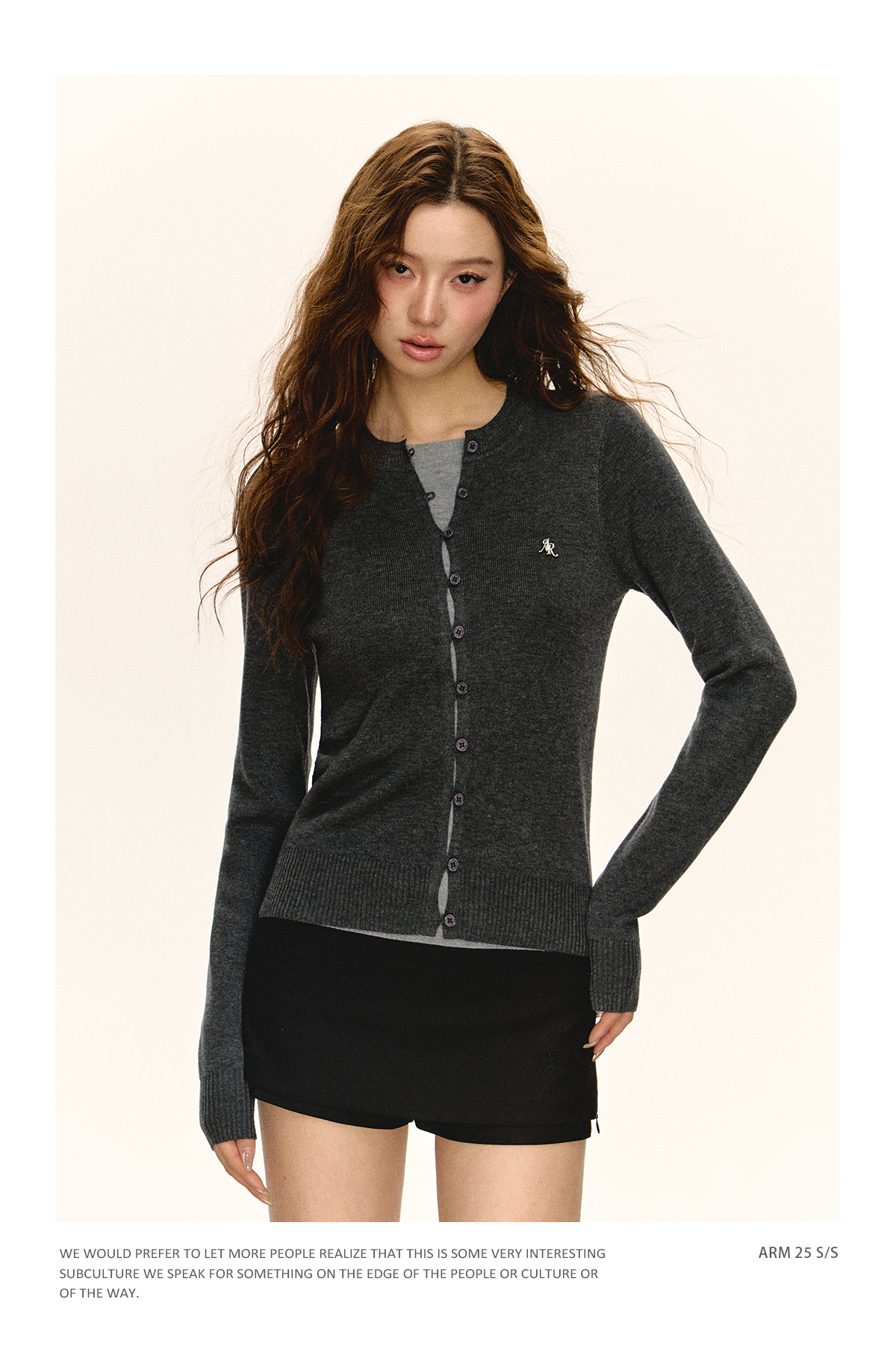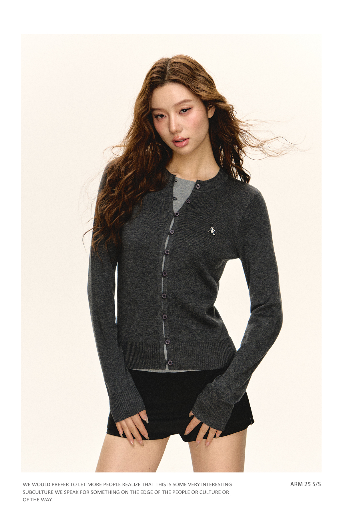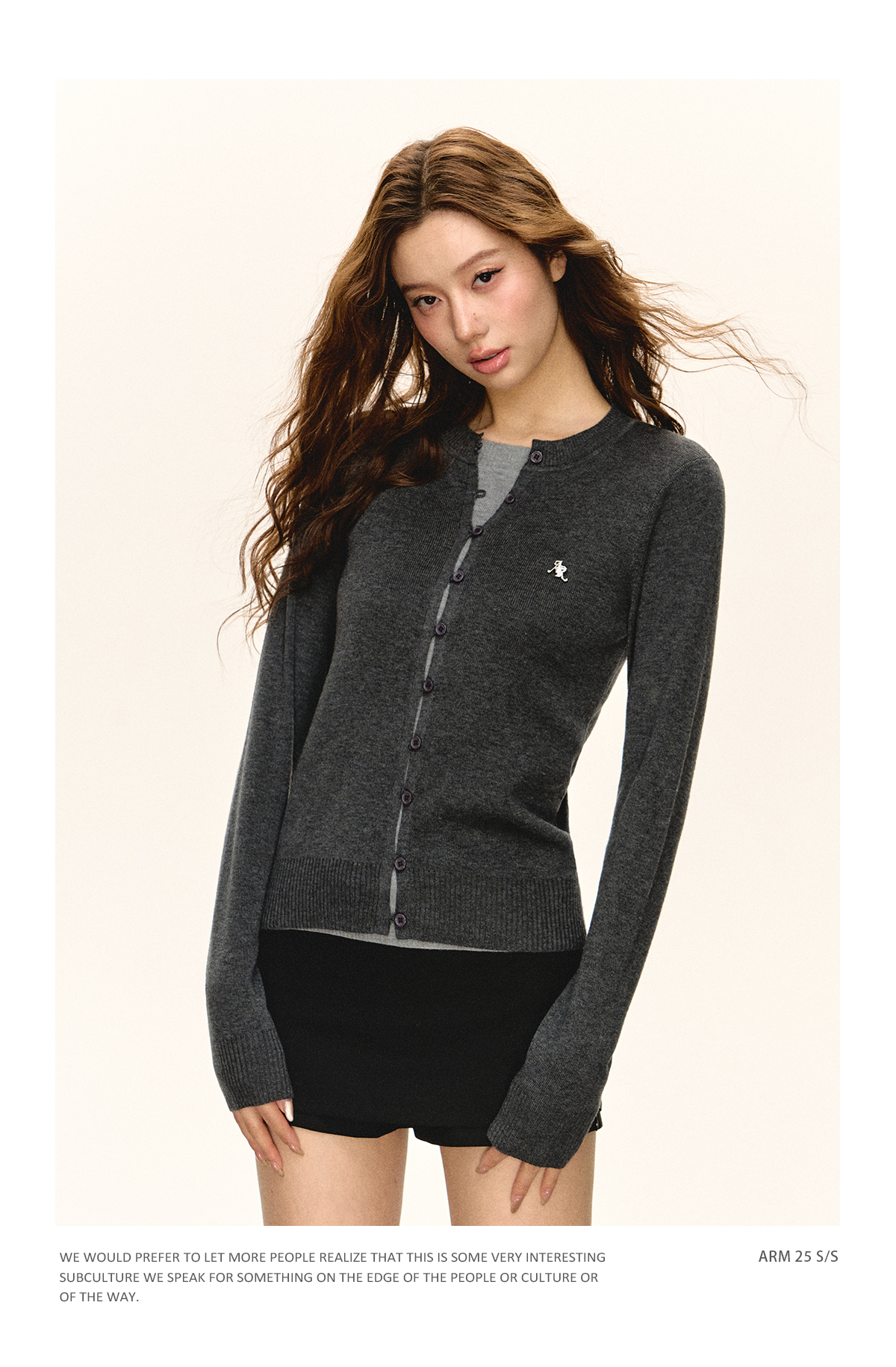 Ariseism 美式复古设计感3色假两件针织开衫女秋季新款外穿上衣