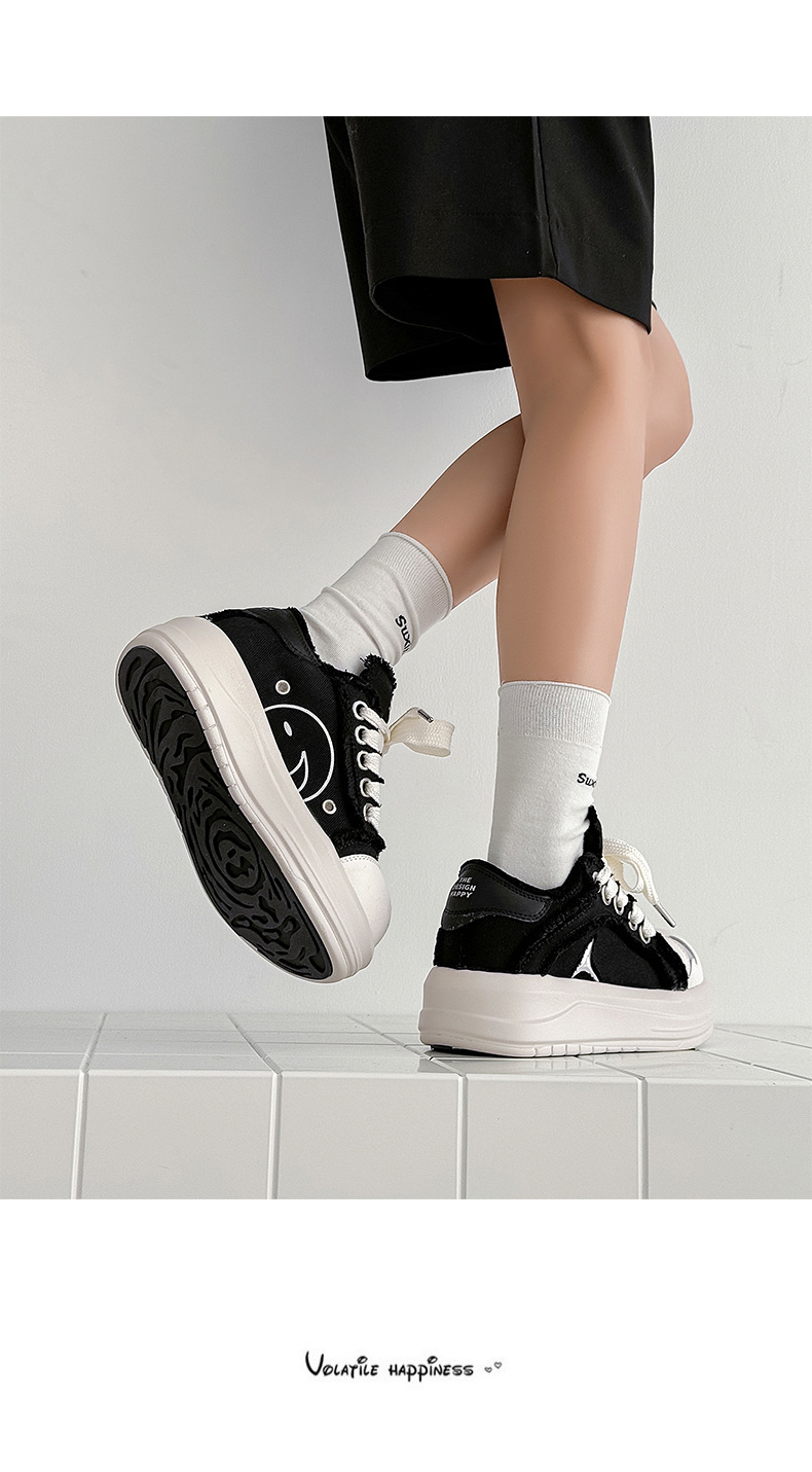 明星同款笑脸大头鞋男女同款秋厚底增高减震帆布鞋休闲情侣鞋