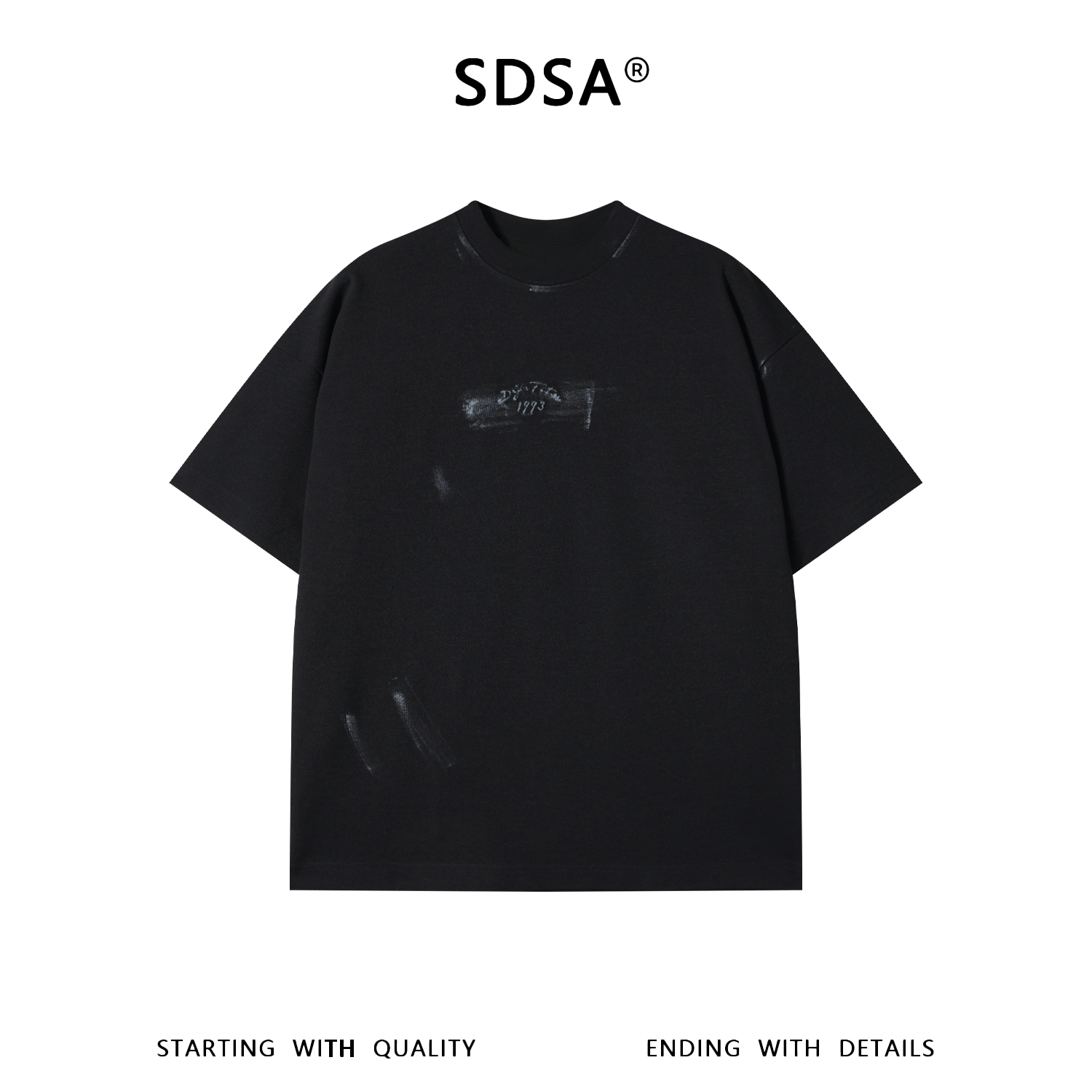 SDSA男装2026新款高贵轻奢美式复古刷漆印花字母圆领短袖T恤百搭