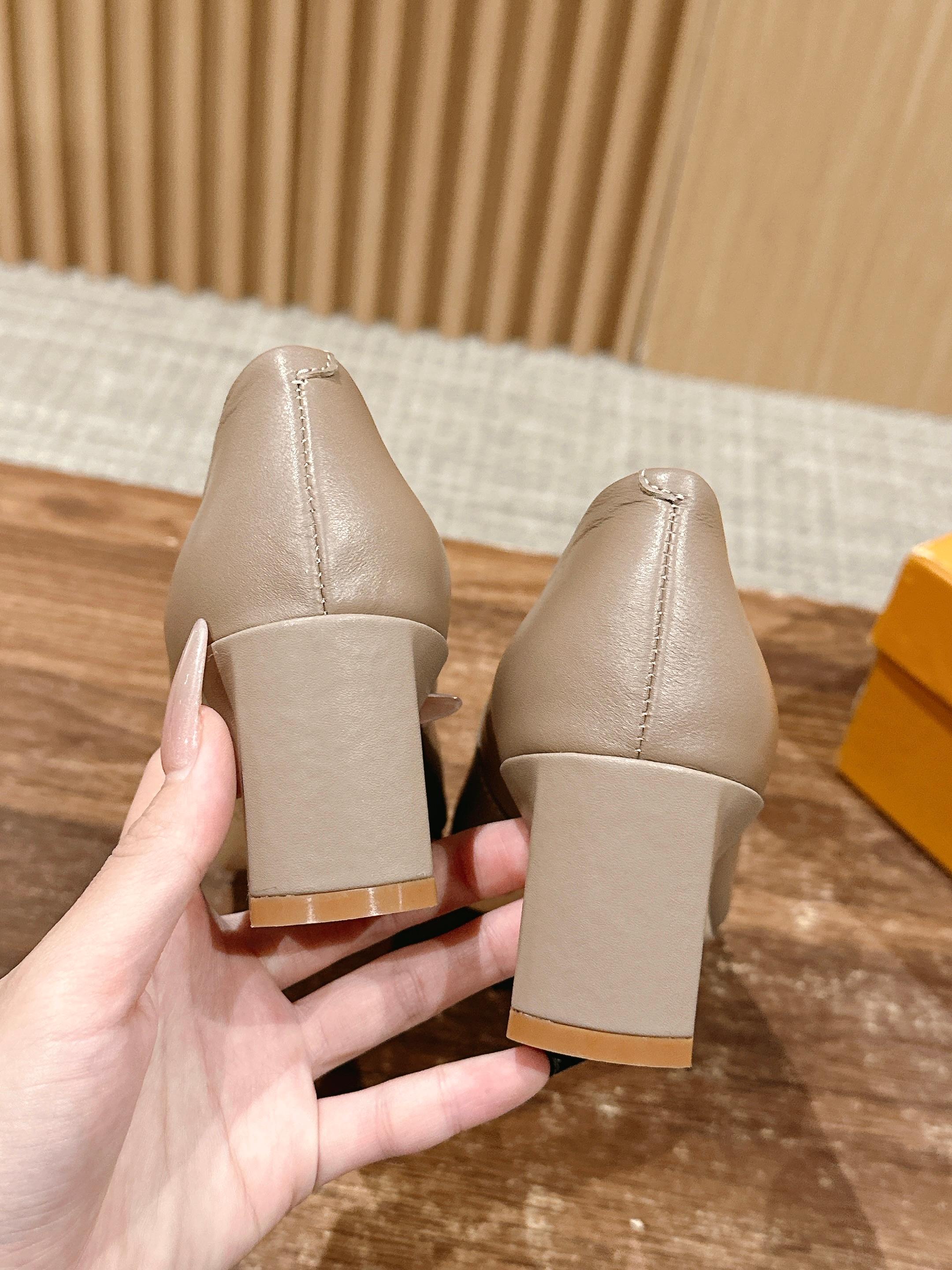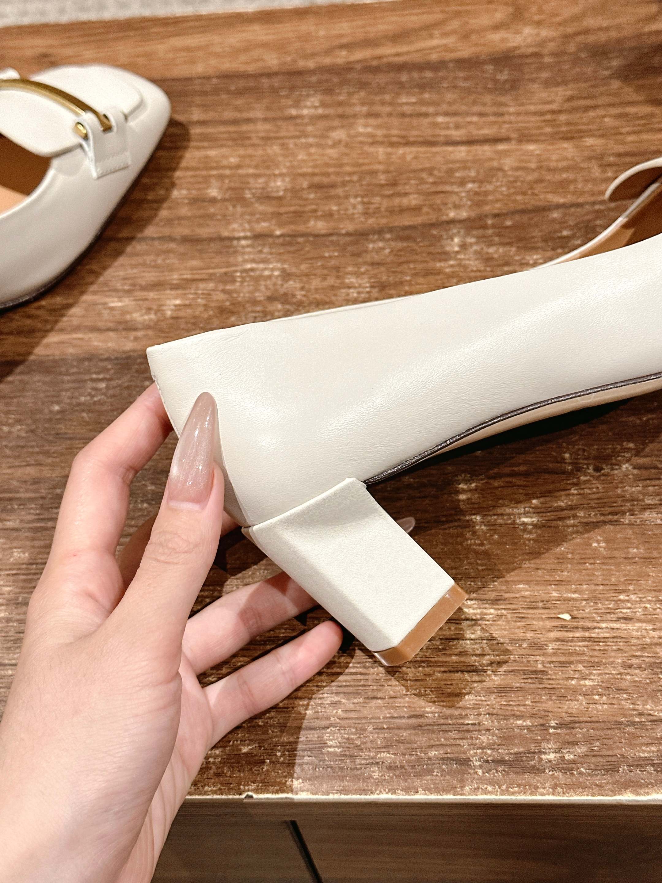 侧边点缀带品牌标识的金属横条,几何粗跟和皮革外底平稳舒适。款式斯文淑女,优雅又不失活泼 鞋面采用原版定制小牛皮 内里垫脚均为羊小皮 意大利进口牛皮大底