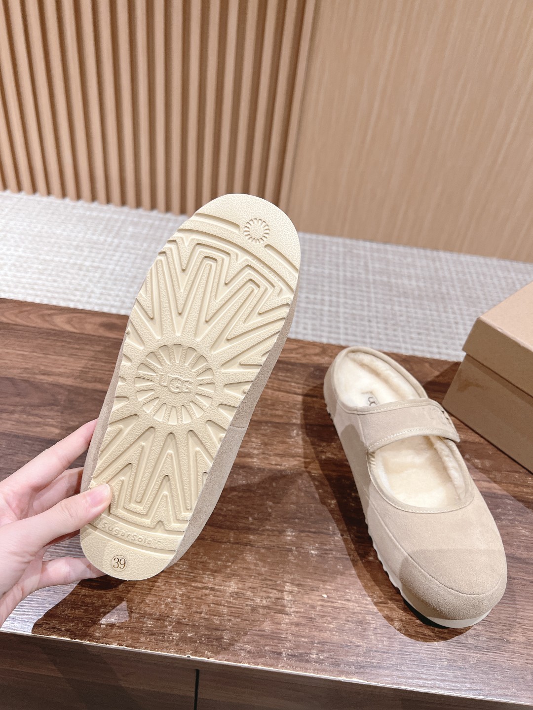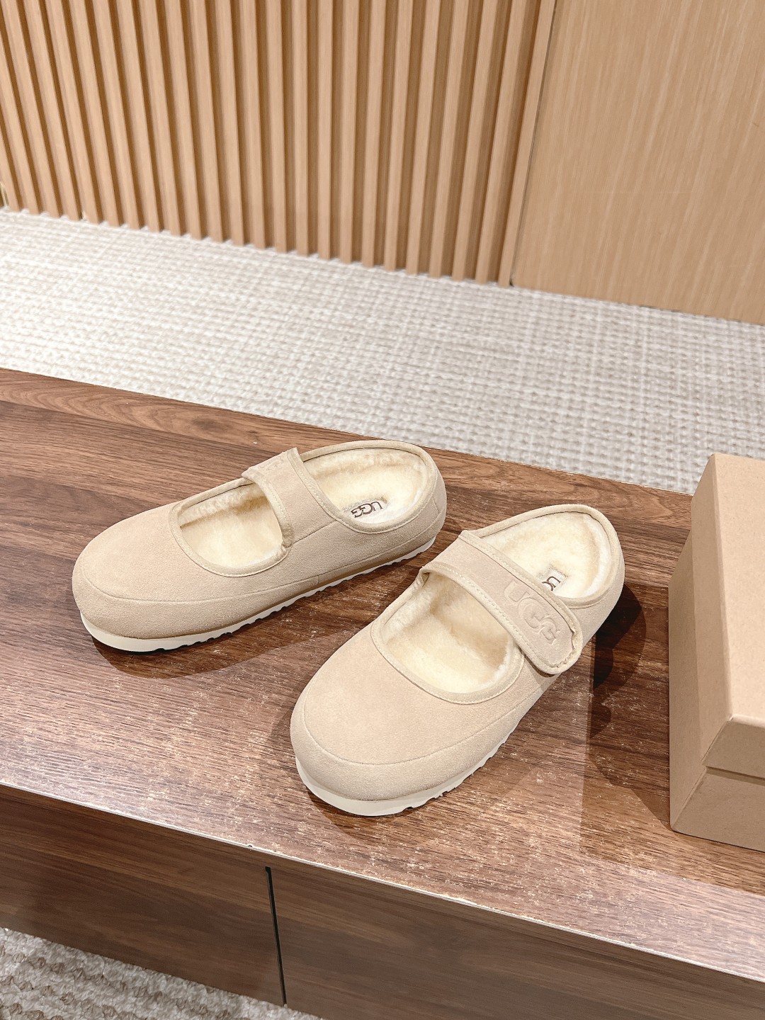 𝐔𝐆𝐆#油叽叽秋冬新款羊毛玛丽珍娃娃鞋、可可爱爱、萌妹子心头爱! 款式新颖别致,懒人、平底半包款,魔术贴设计,松弛感拿捏,牛反绒搭配澳洲美利奴羊毛,质感超棒,穿脱很随意! 线条圆润的圆头设计尽显女性可爱俏皮的一面,十分讨喜! 材质介绍: 鞋面:定制牛反绒、 内里垫脚:澳洲美利奴羊毛、 大底:EVA发泡耐磨防滑大底 尺码:35 36 37 38 39 40。