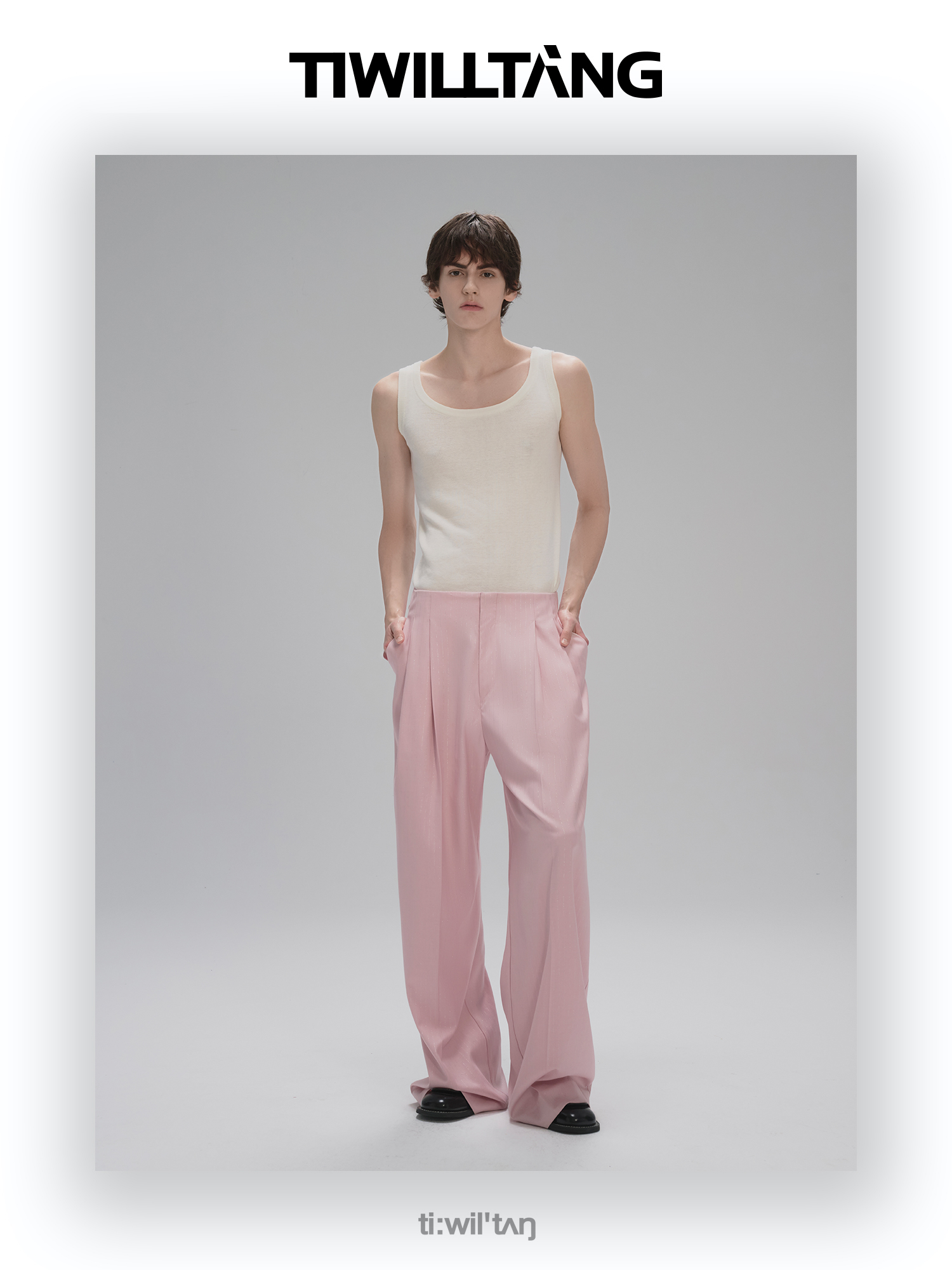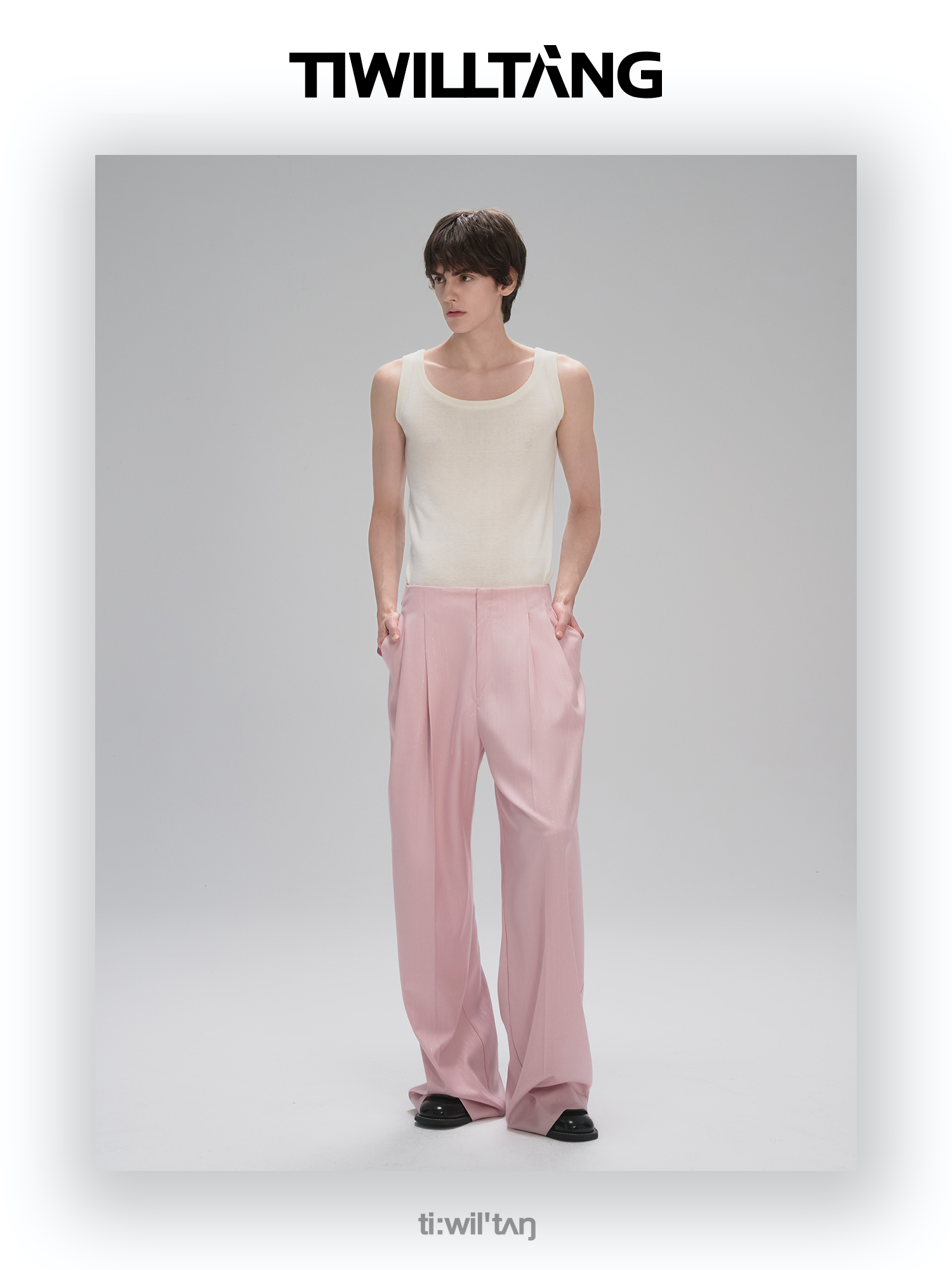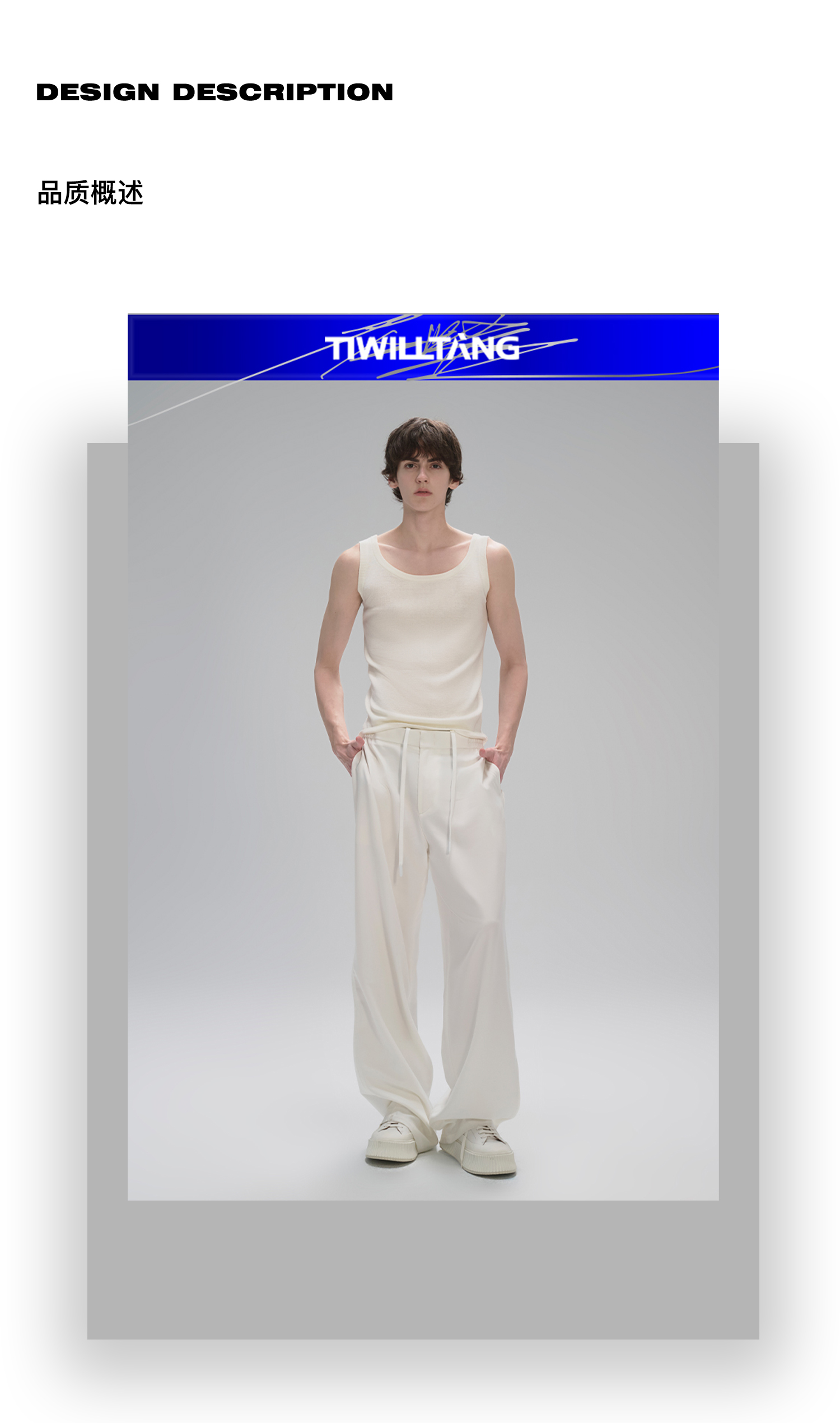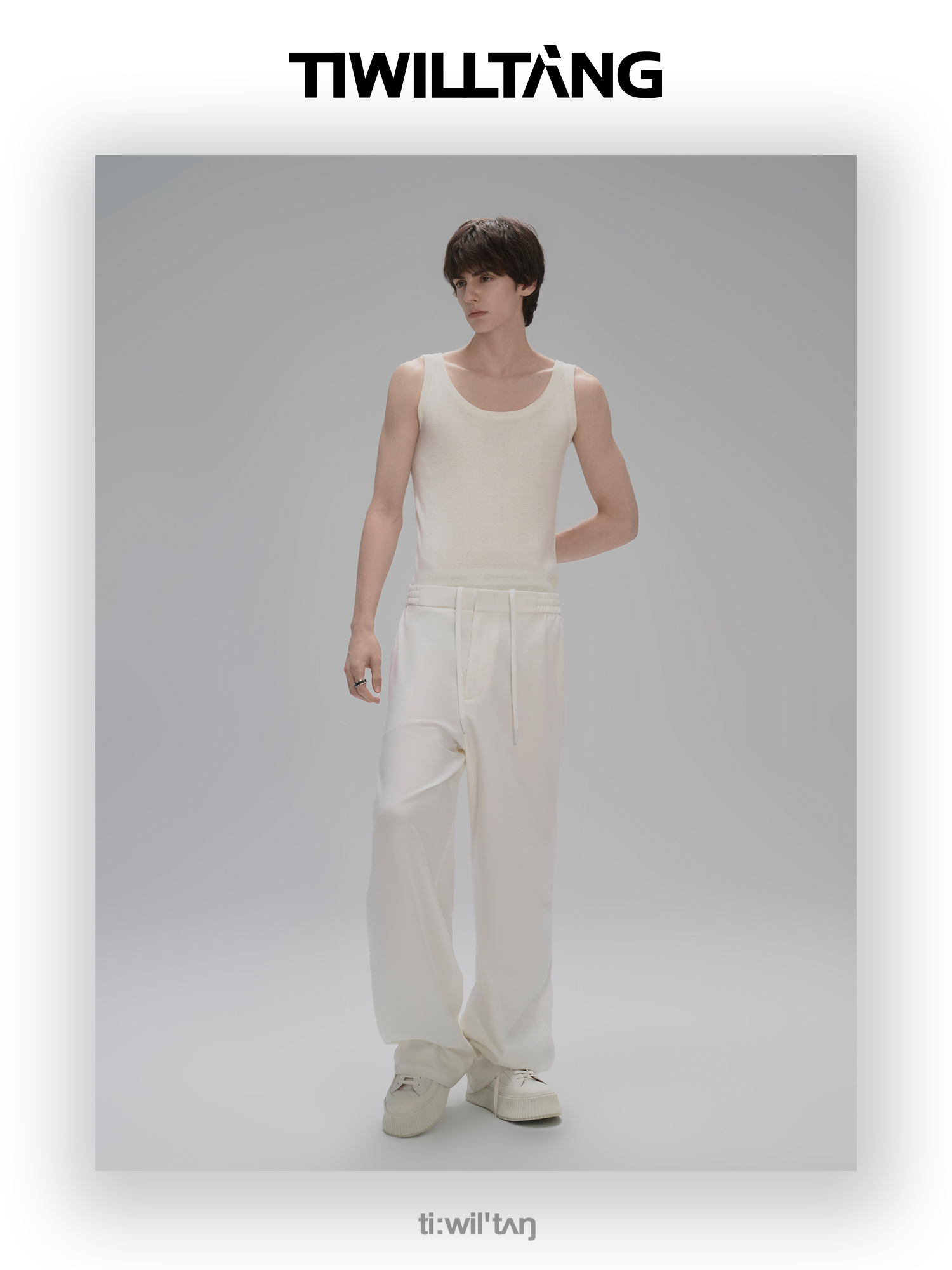 启世录TIWILLTANG“虚室生白”现代简约撞色拼接直筒西裤