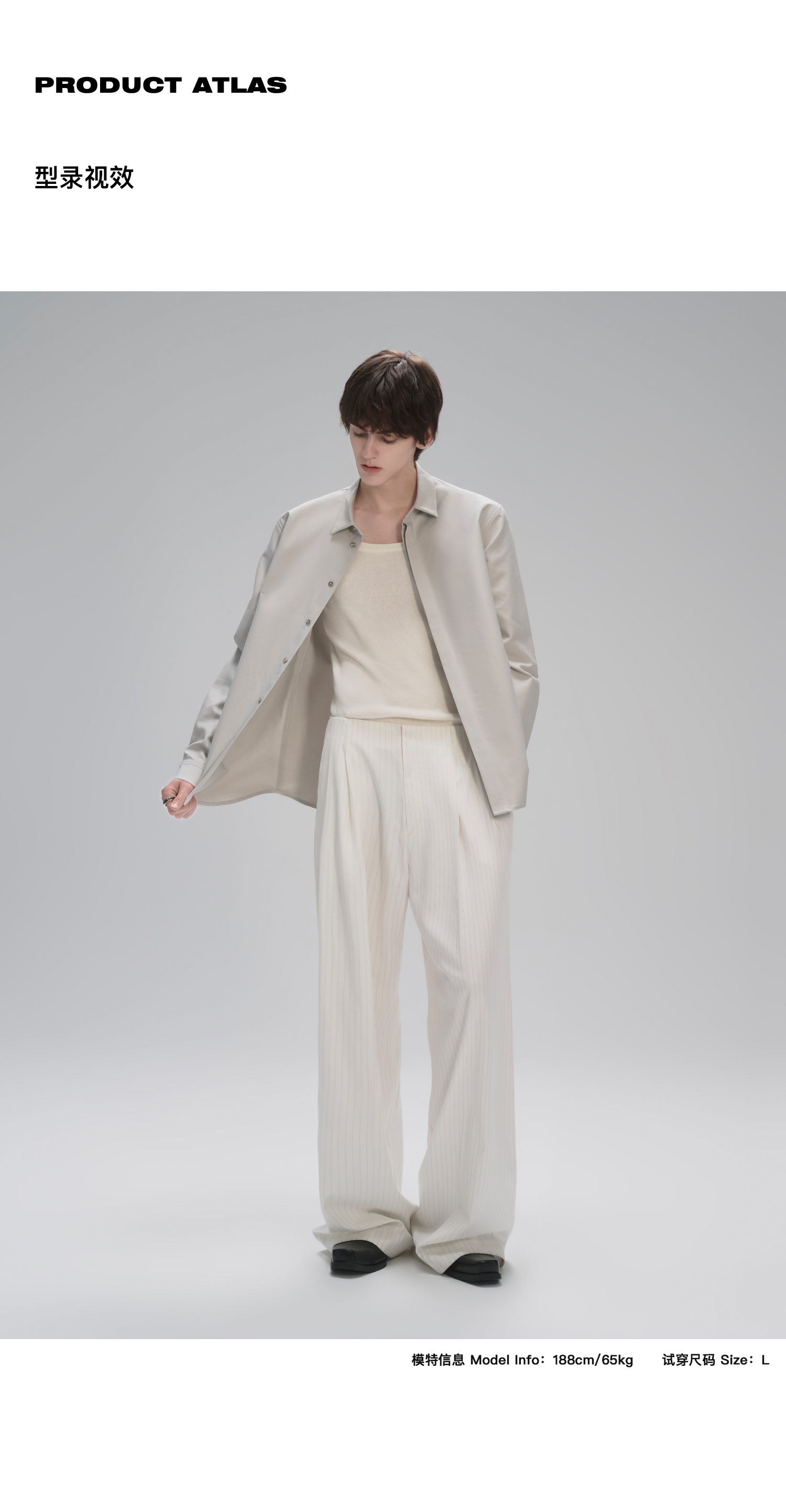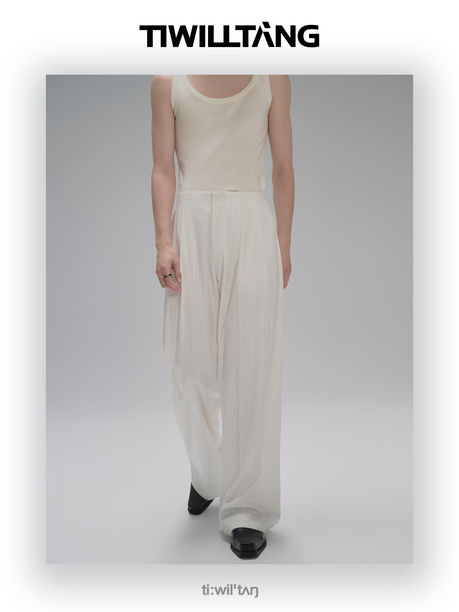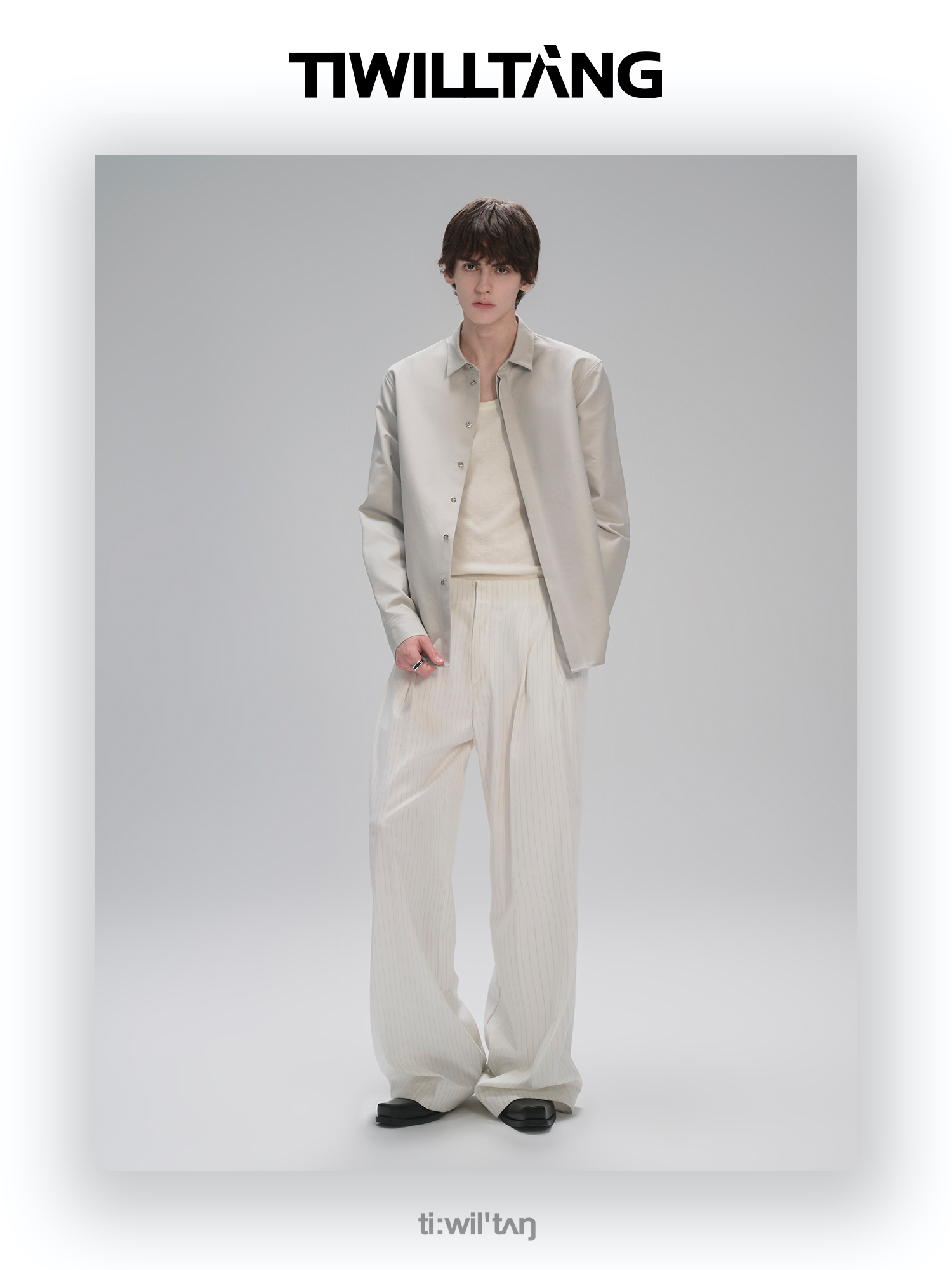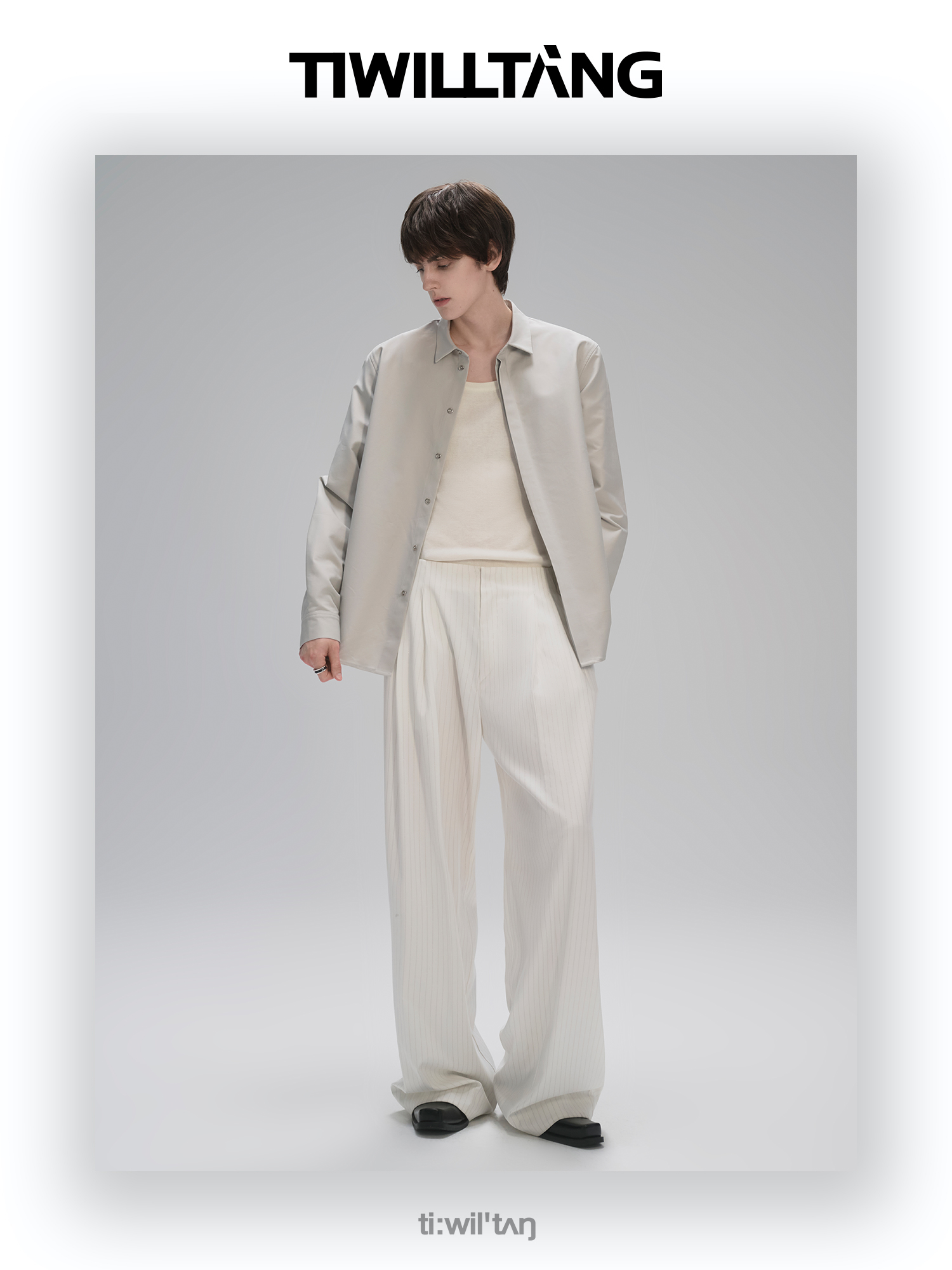 启世录TIWILLTANG“虚室生白”现代简约撞色拼接直筒西裤