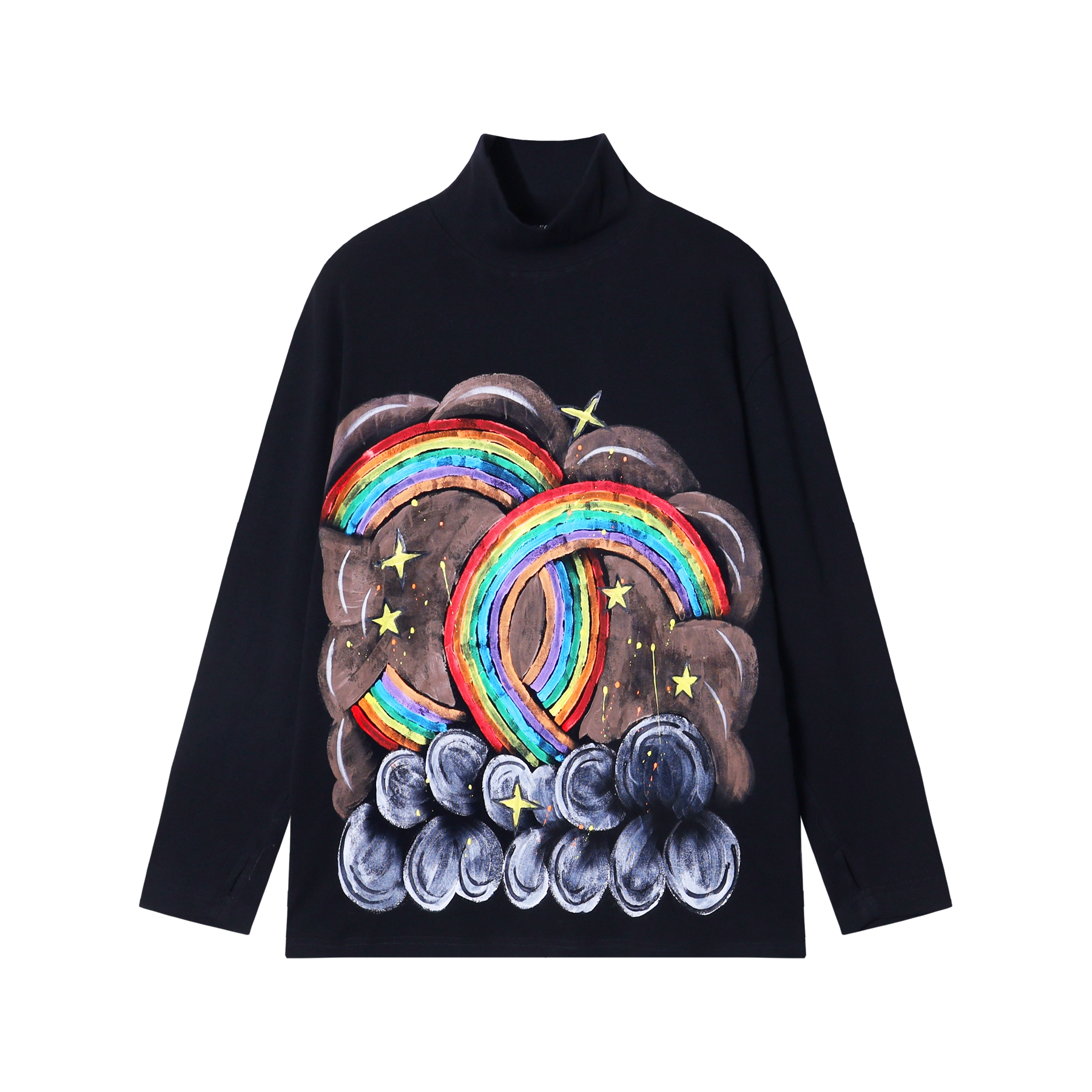 T1674秋冬季新款休闲百搭休闲小众手绘印花图案长袖T恤打底上衣