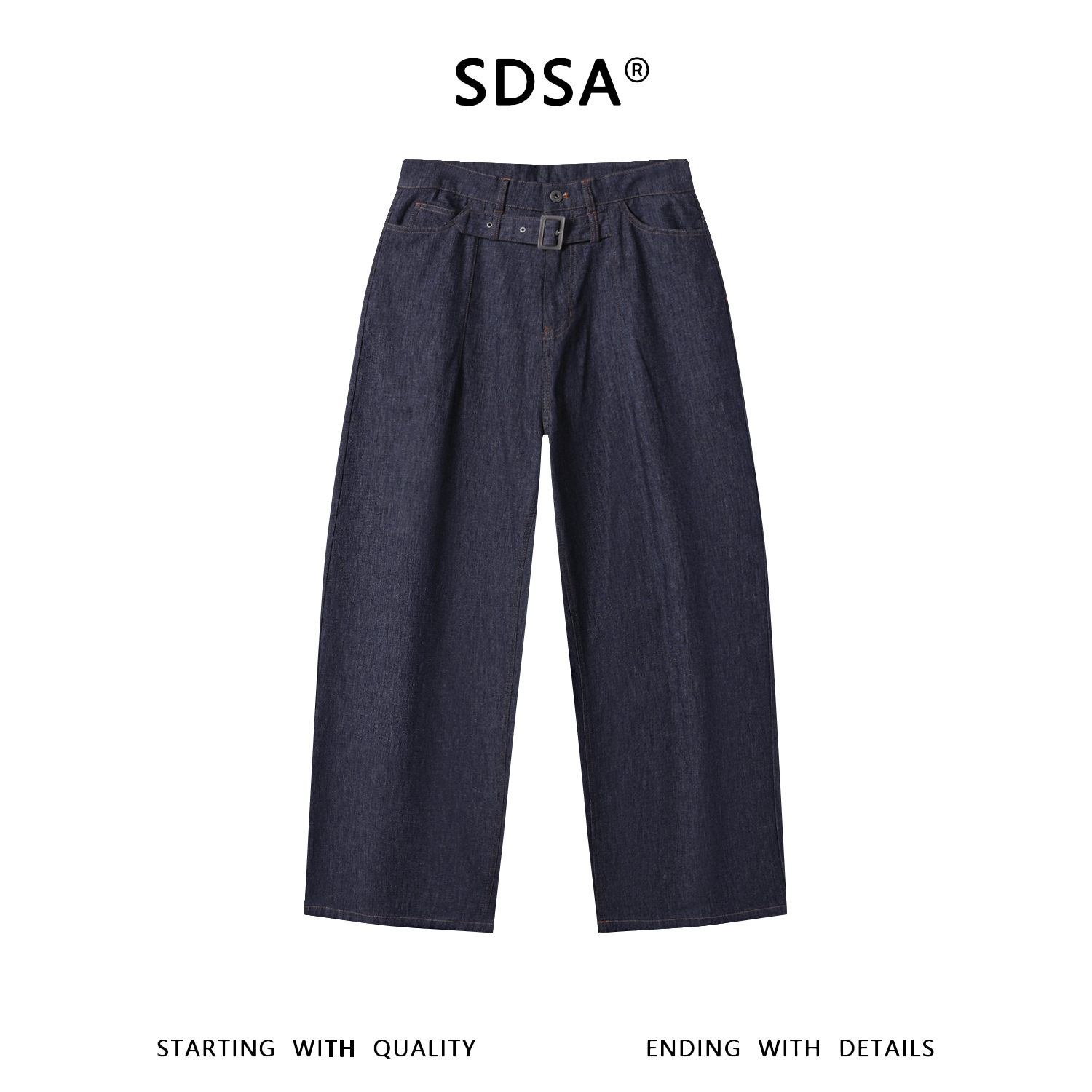 SDSA男装2026新款高贵轻奢美式复古腰带款褶皱牛仔裤百搭时尚裤子