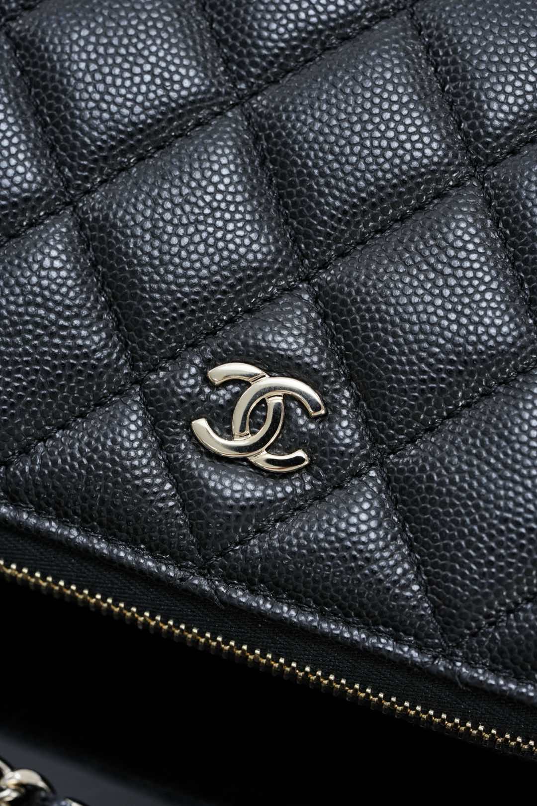 铜镜面香槟金五金 经过精细打磨倒角的链条、双C、鸡眼配件;光滑镜面感强 丝滑流畅的拉链、极致完美~