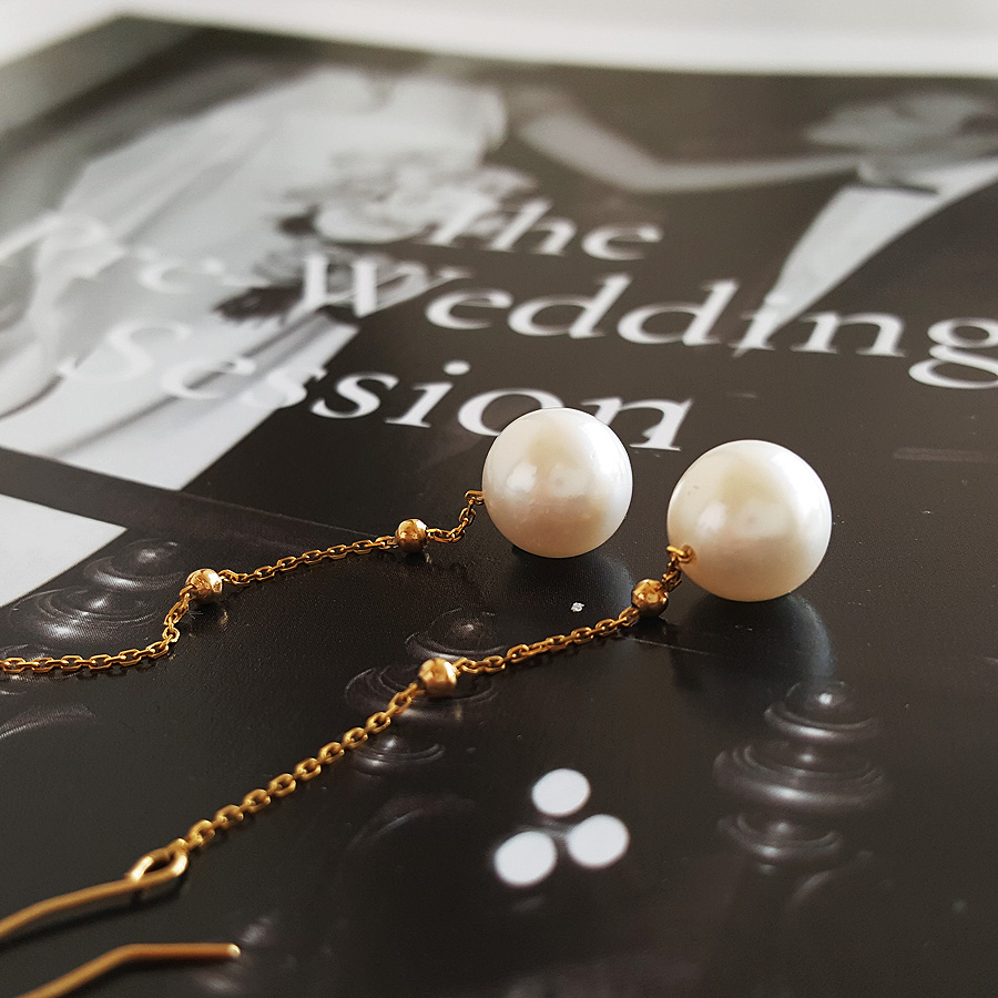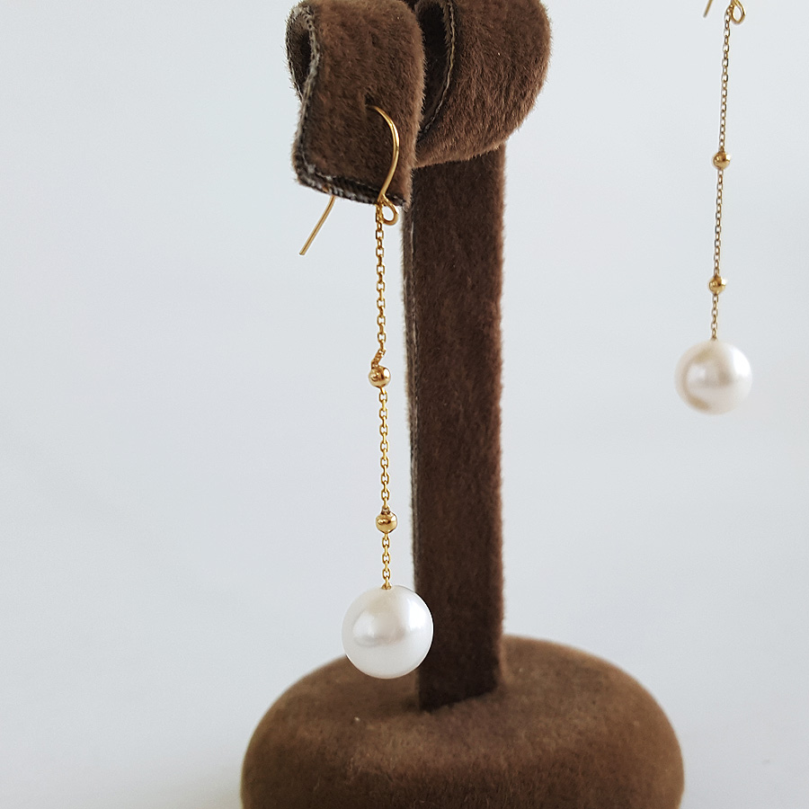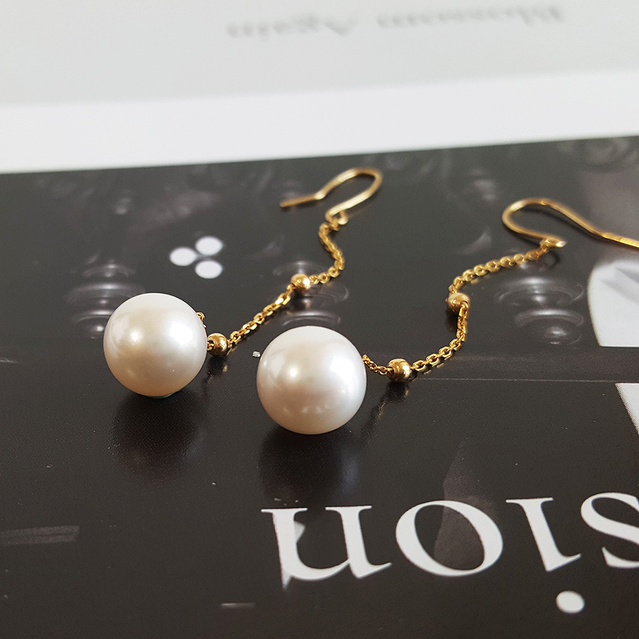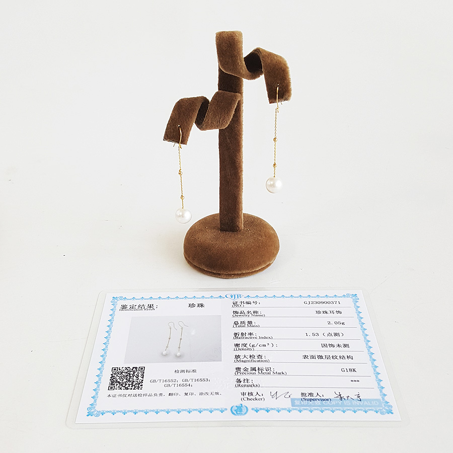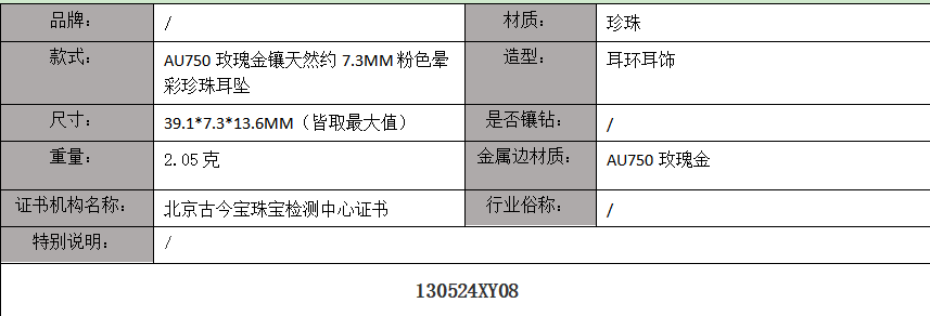 【天然正品】AU750玫瑰金镶天然约7.3MM粉色晕彩珍珠耳坠130524XY08