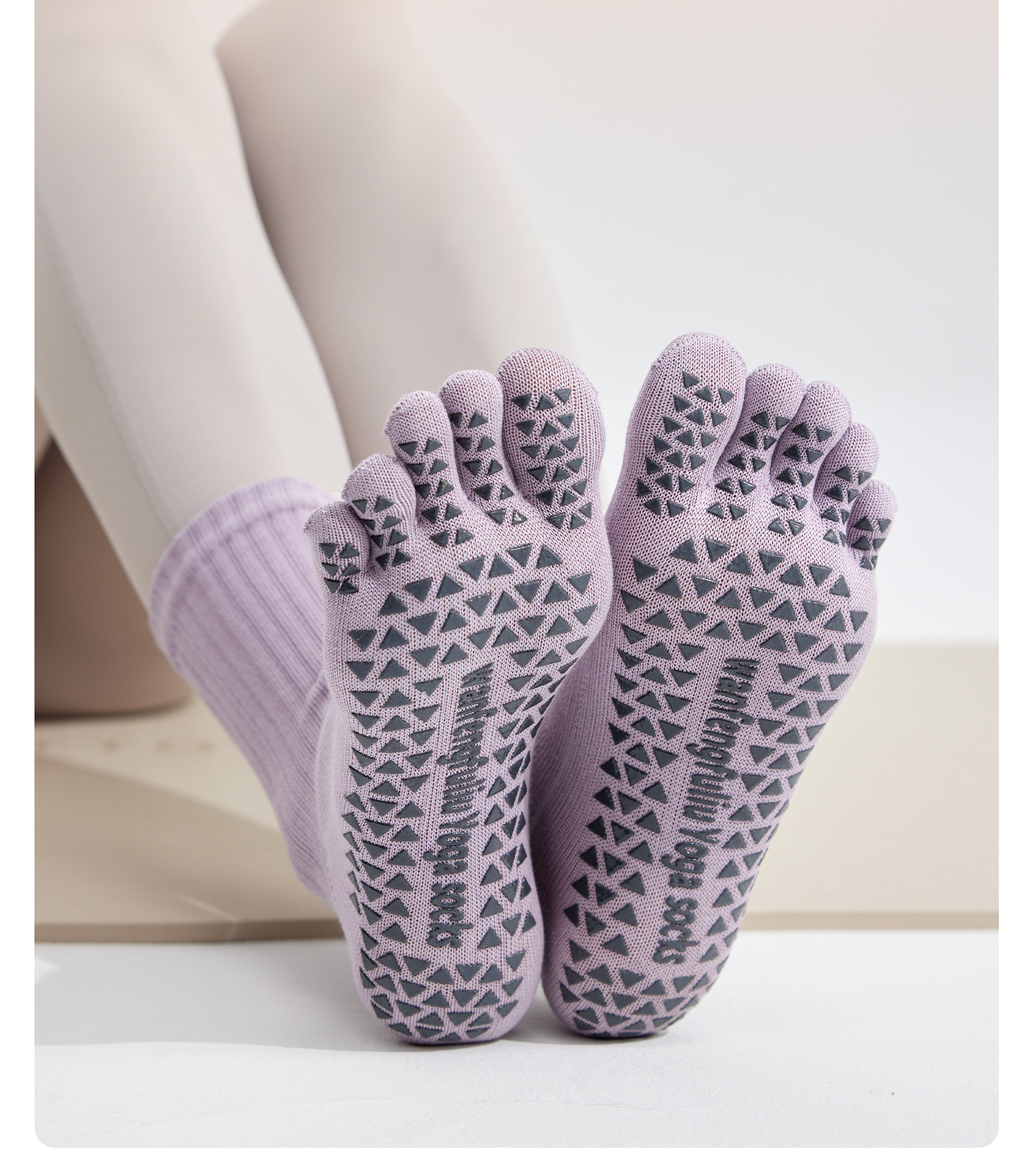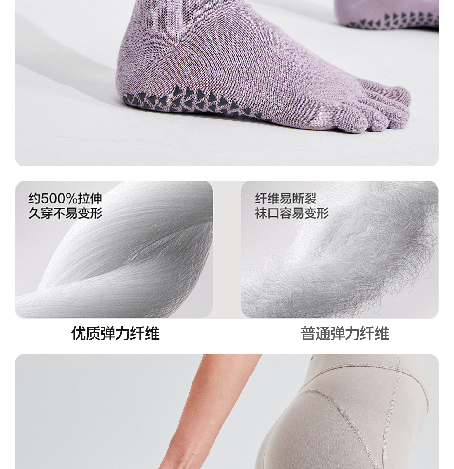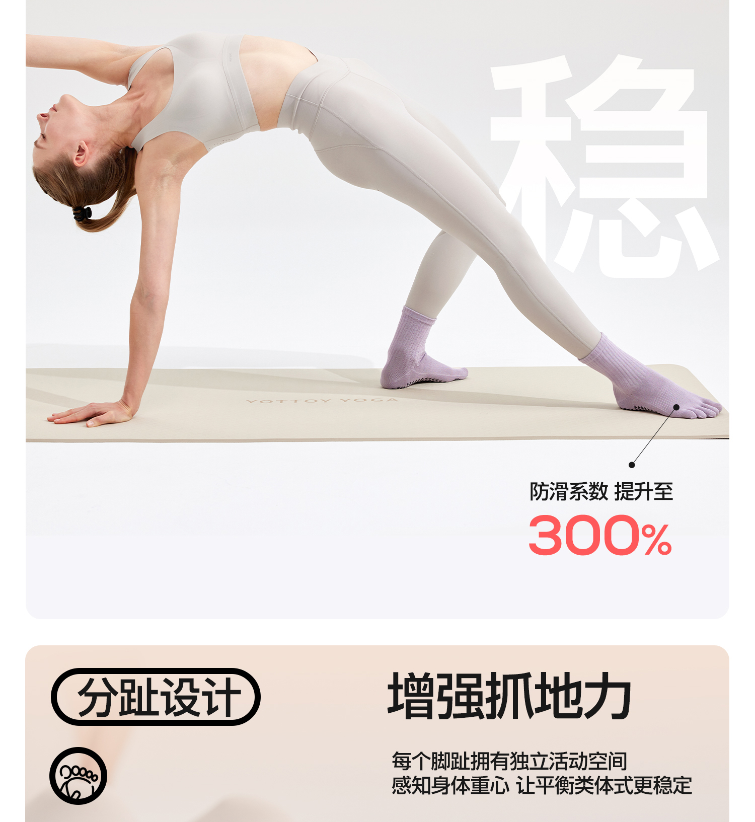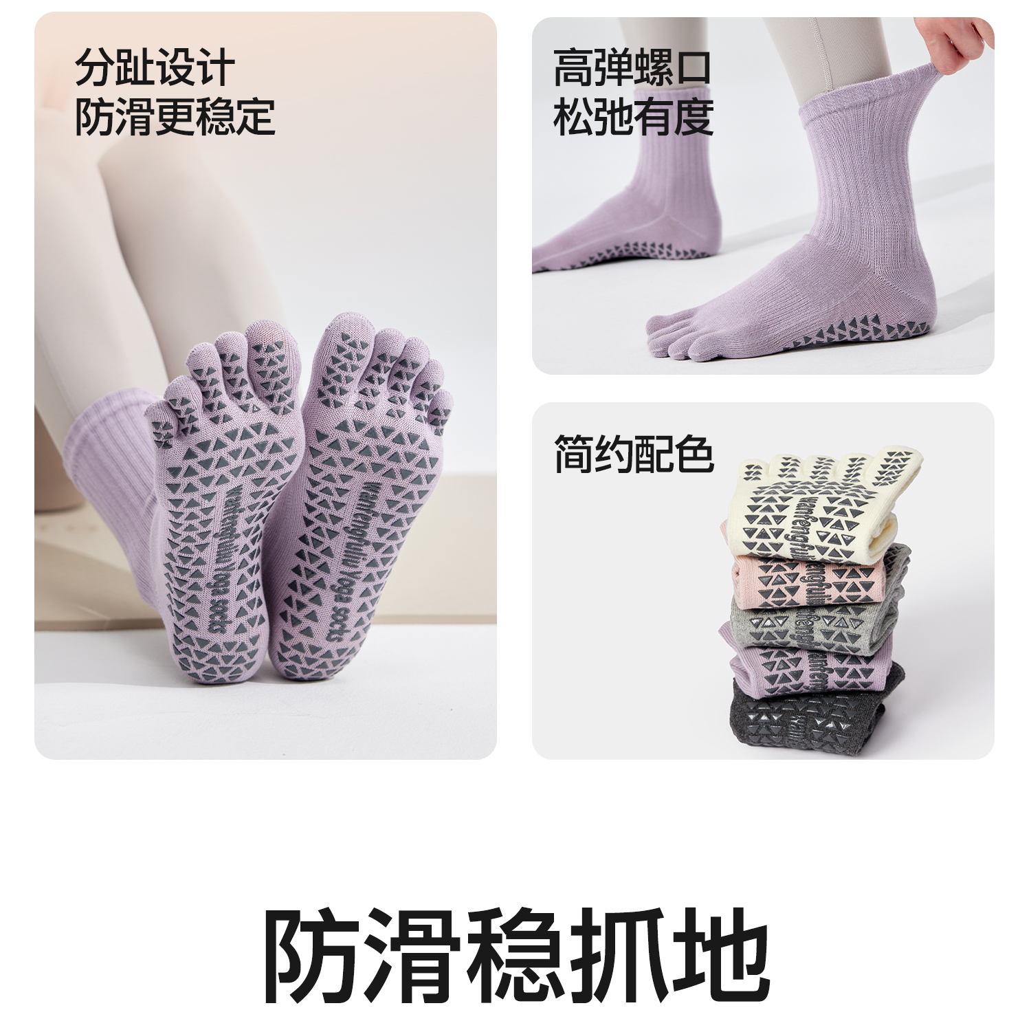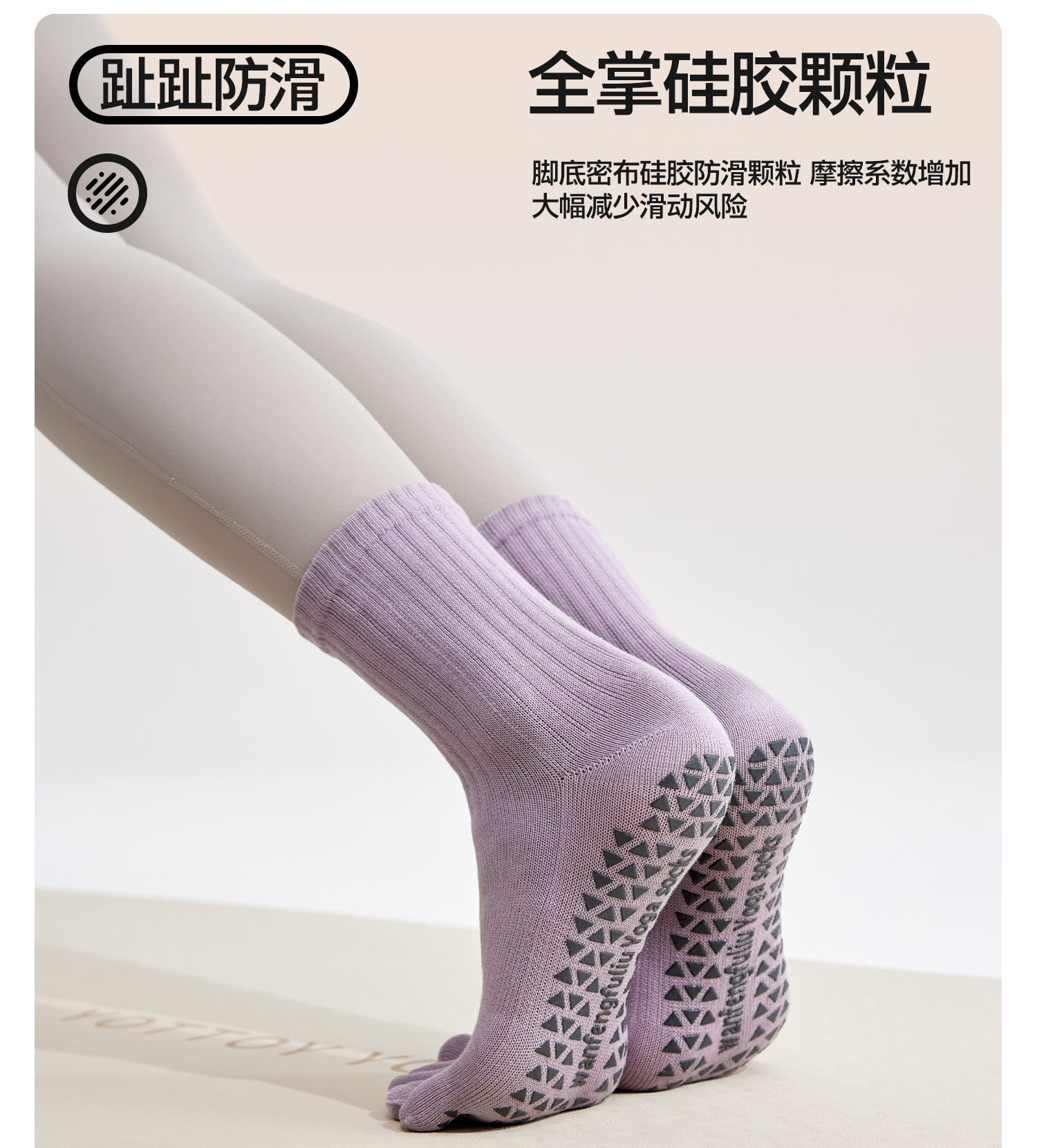 YOTTOY瑜伽袜普拉提袜子防滑专业女室内中筒袜五指袜运动健身女冬