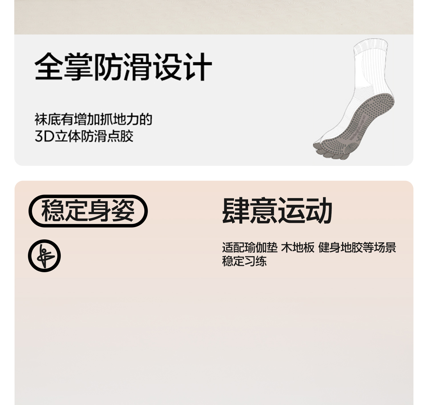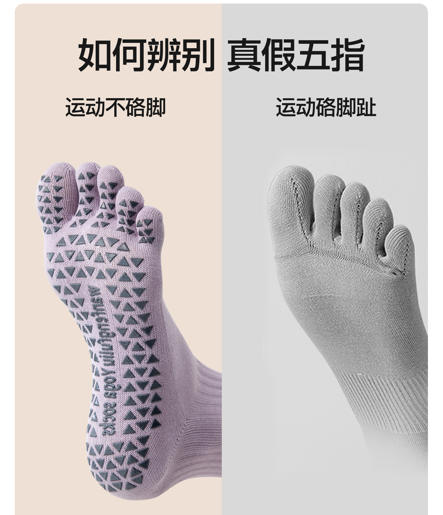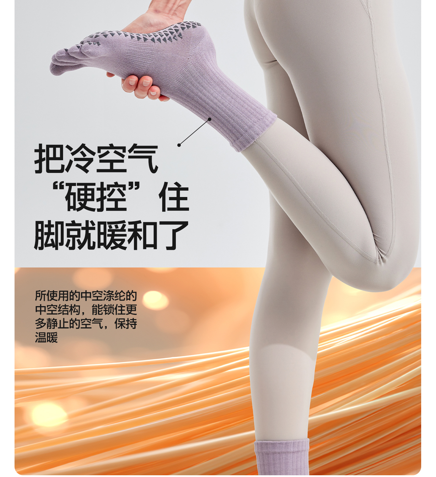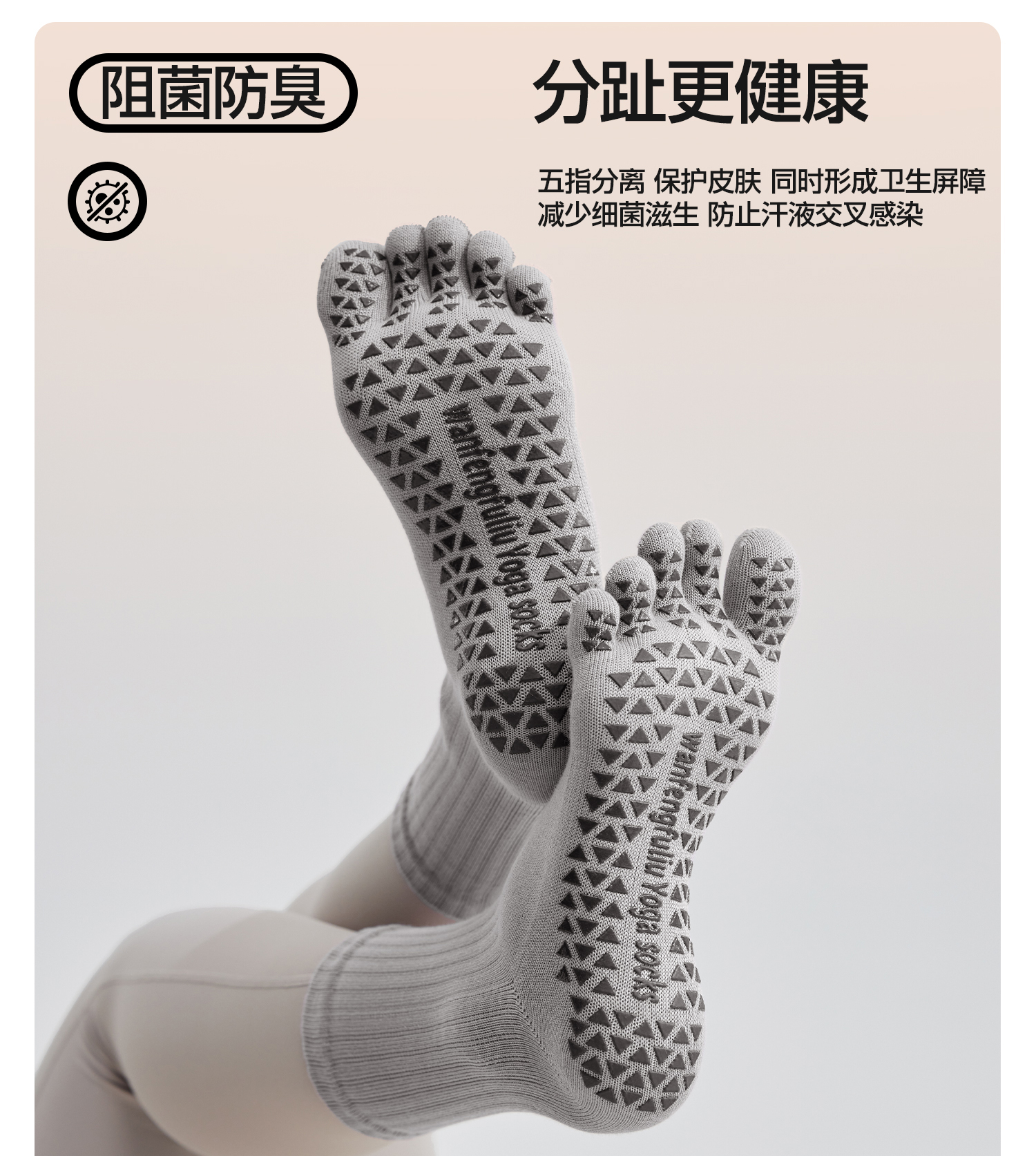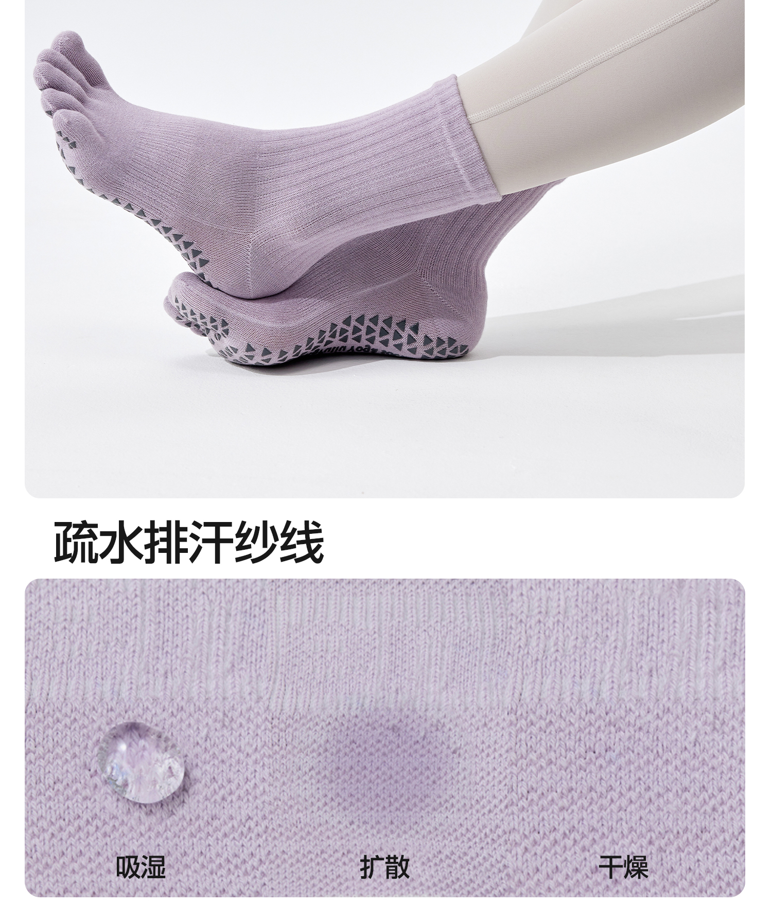 YOTTOY瑜伽袜普拉提袜子防滑专业女室内中筒袜五指袜运动健身女冬