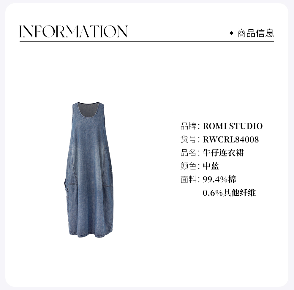 ROMI STUDIO 环保水洗宽松剪裁 棉质无袖牛仔连衣裙 RWCRL84008