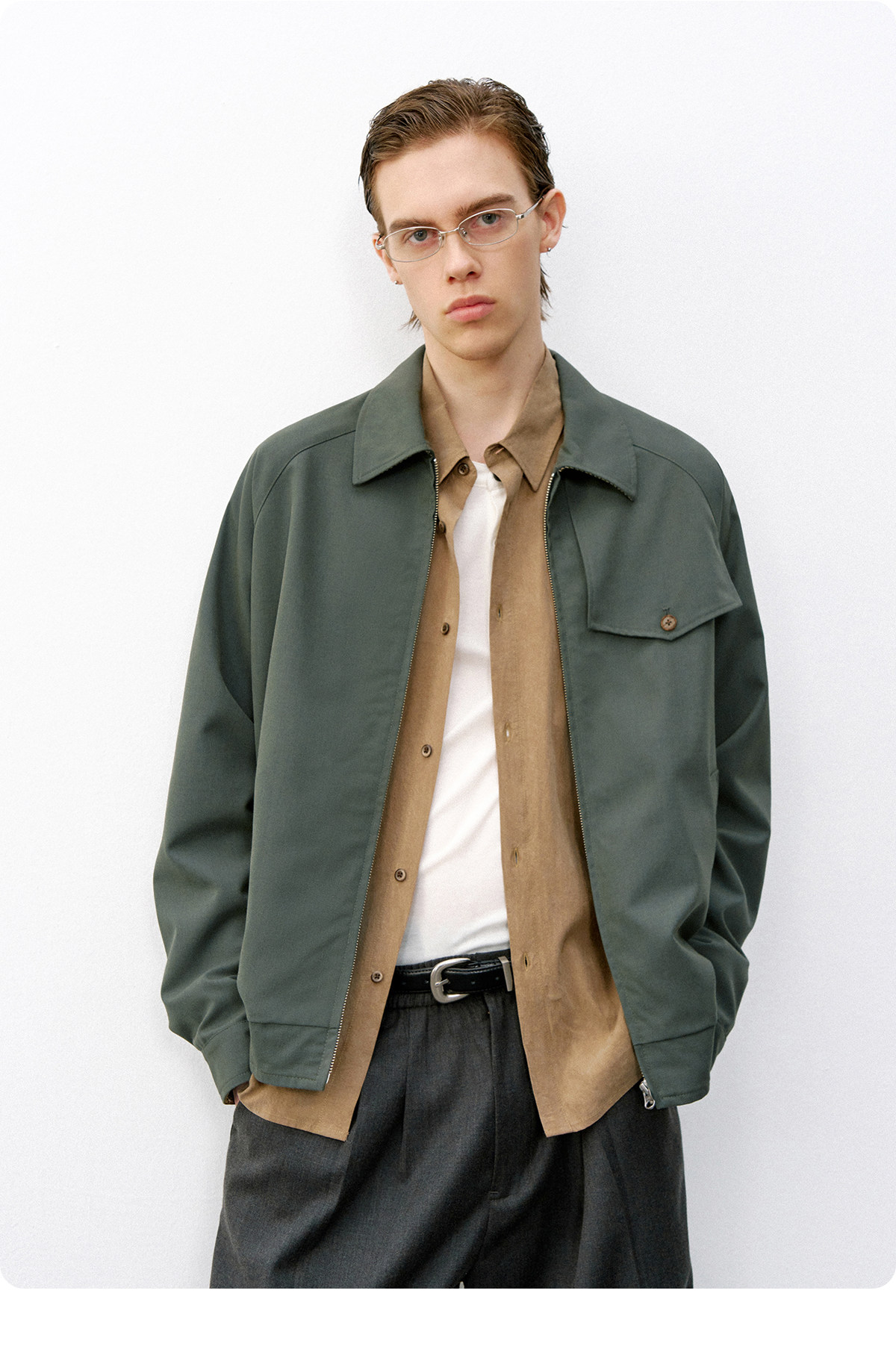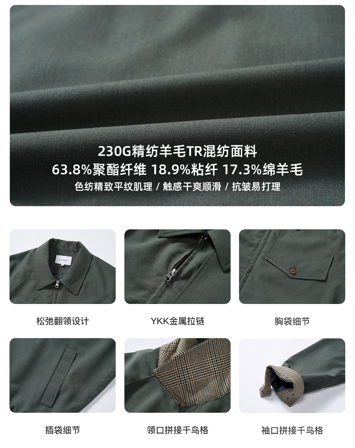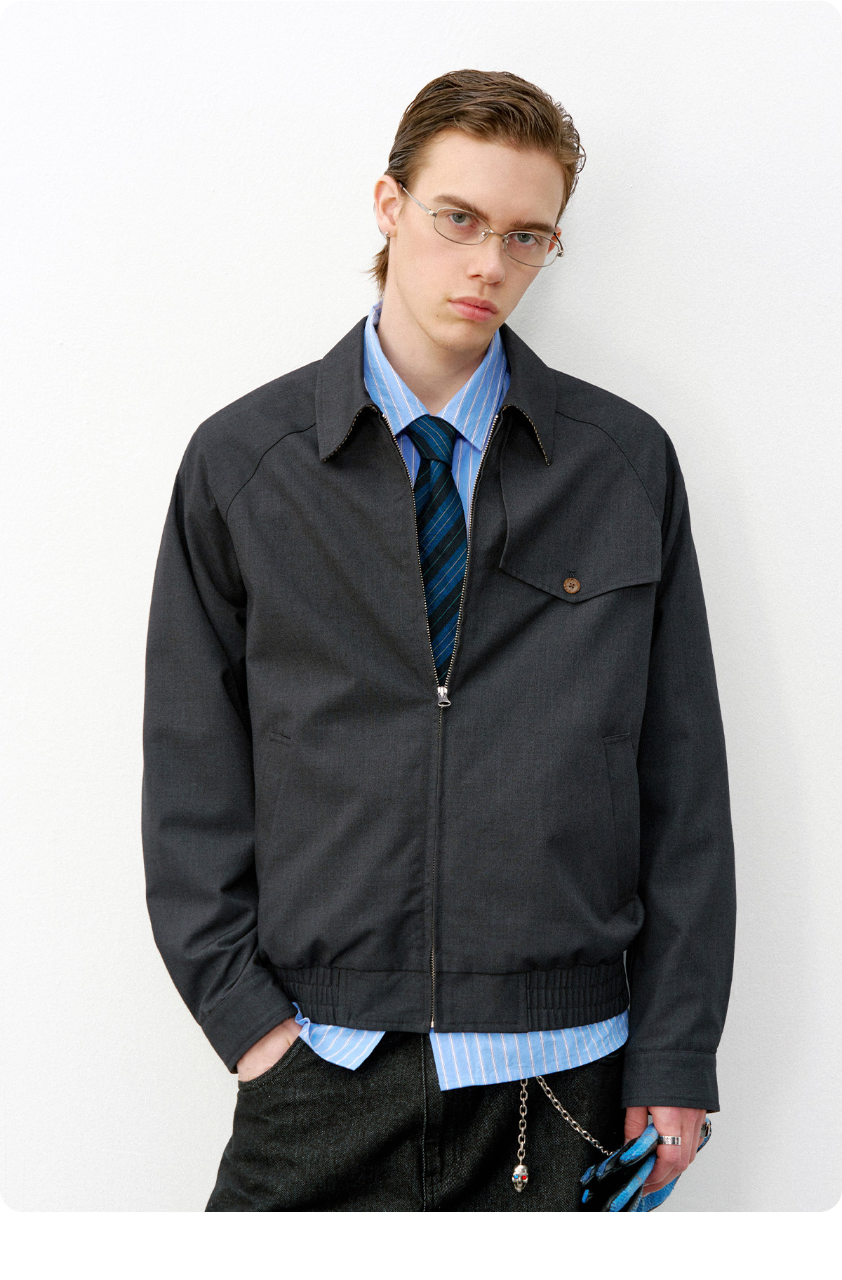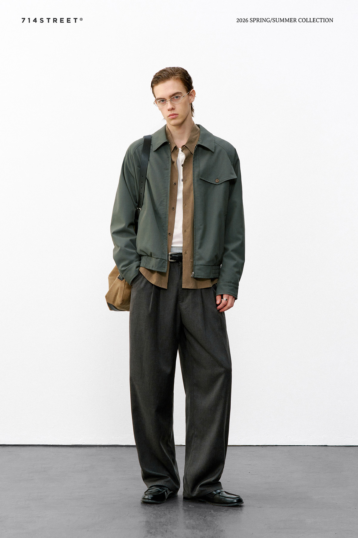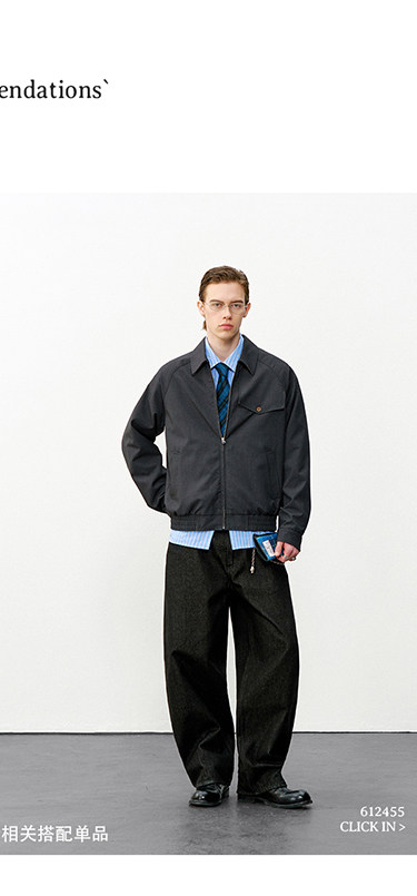 714street羊毛混纺哈灵顿夹克2026春季新款翻领宽松外套男款