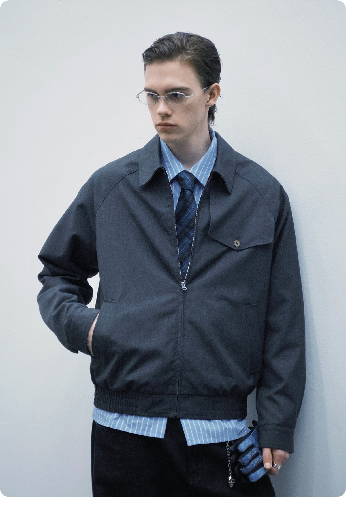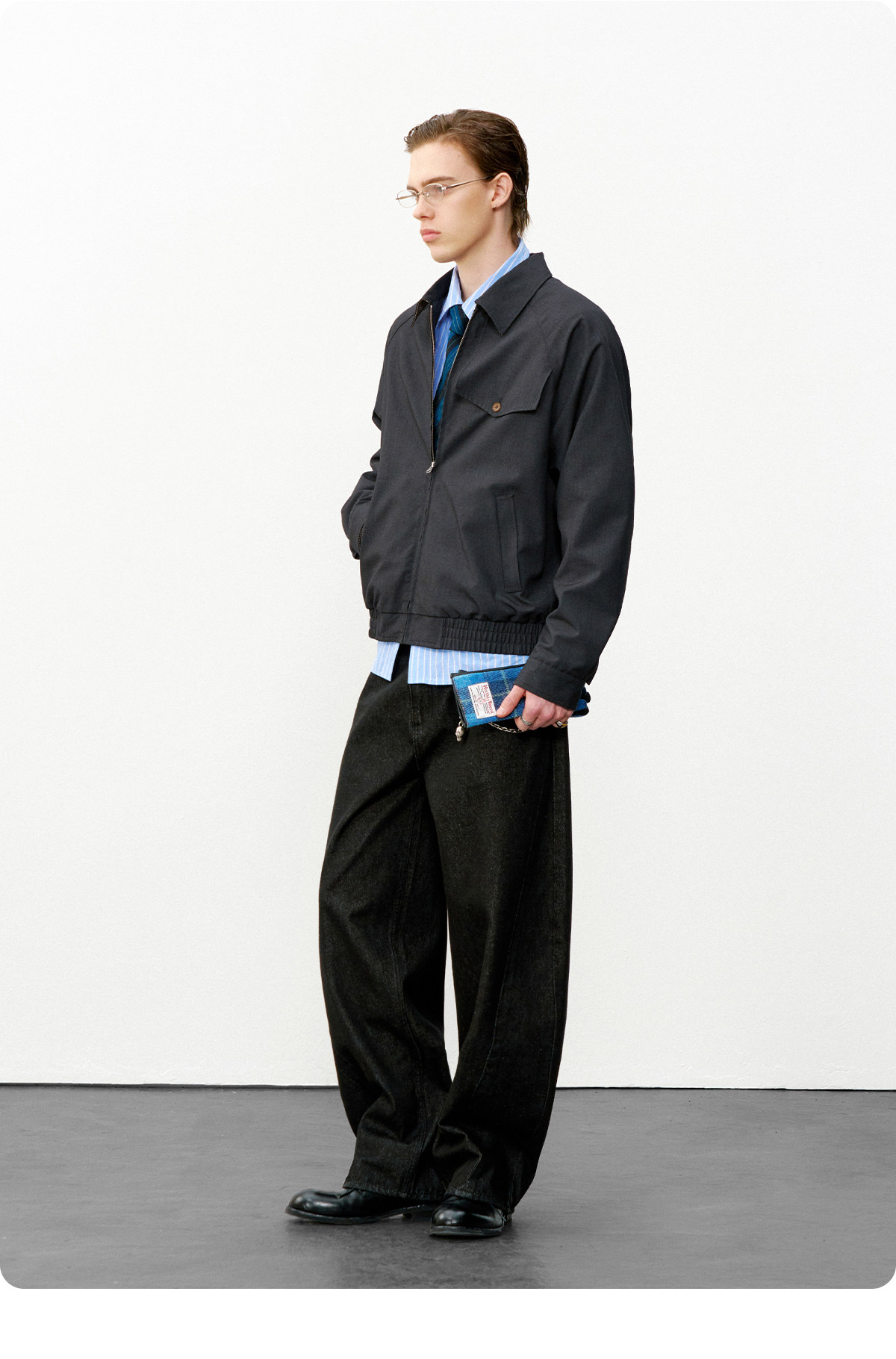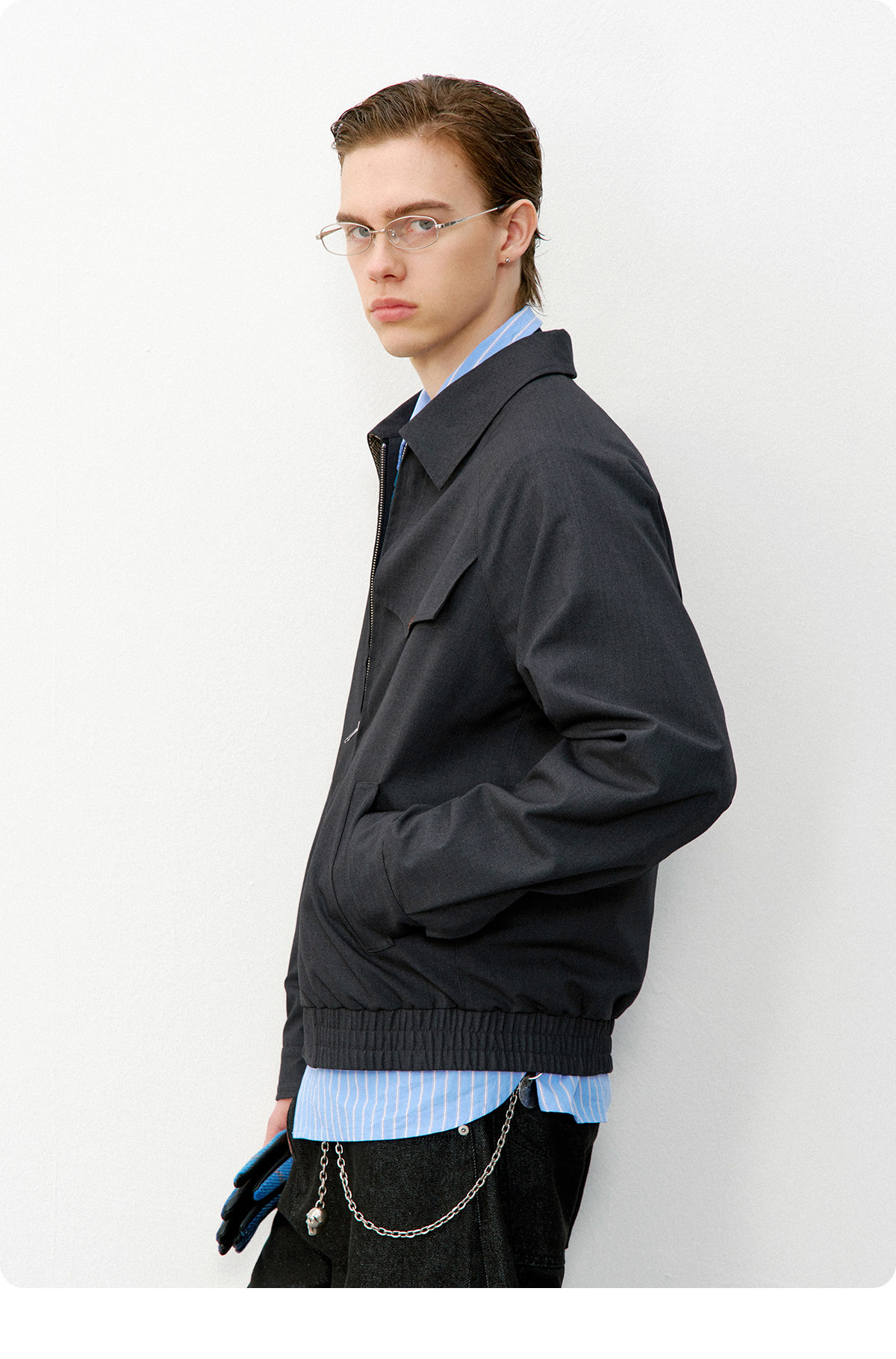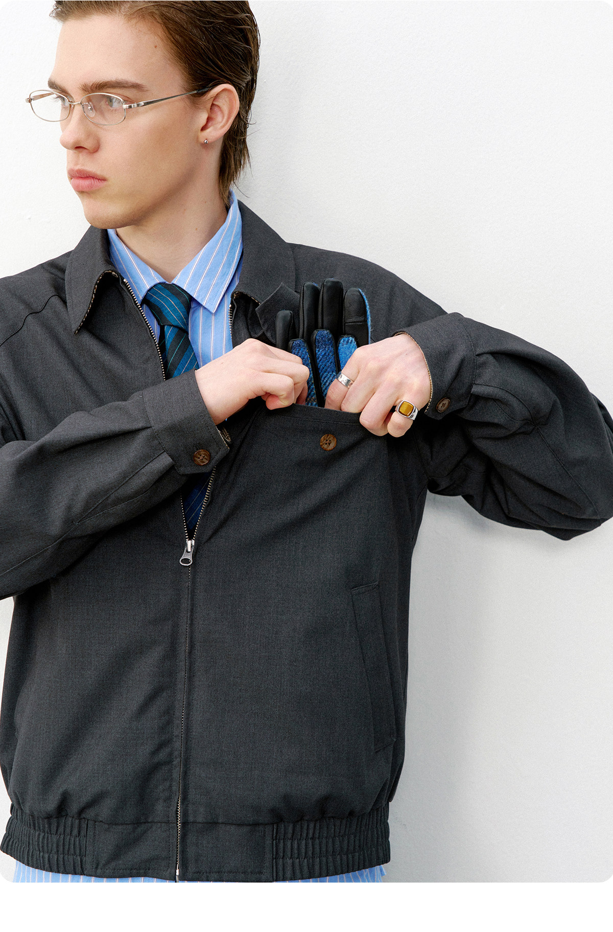 714street羊毛混纺哈灵顿夹克2026春季新款翻领宽松外套男款