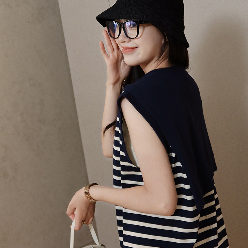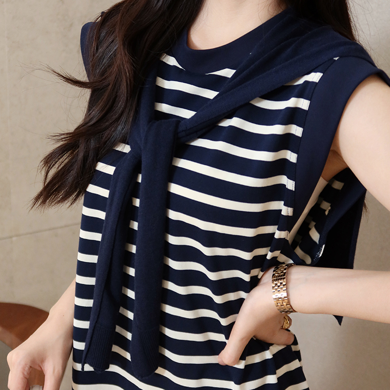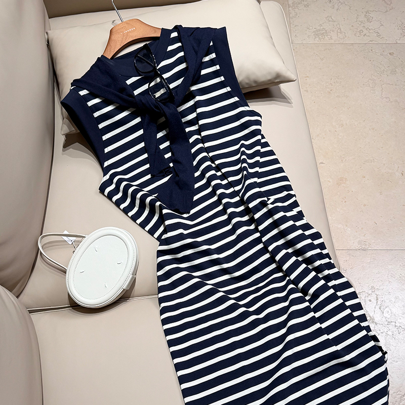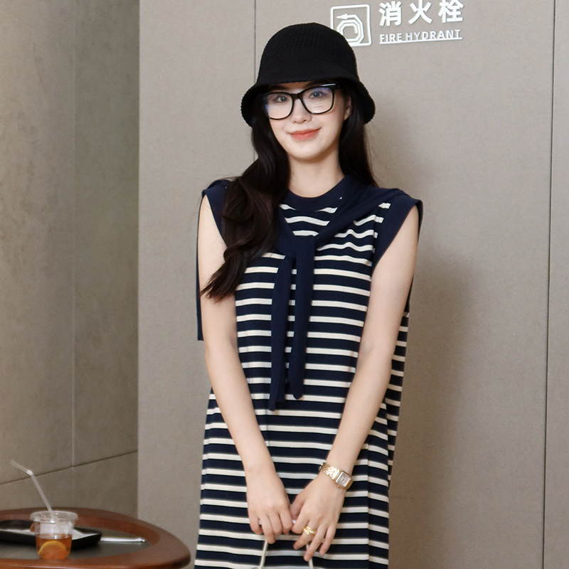 【不退不换】良木礼条纹连衣裙(披肩)(X7362)
