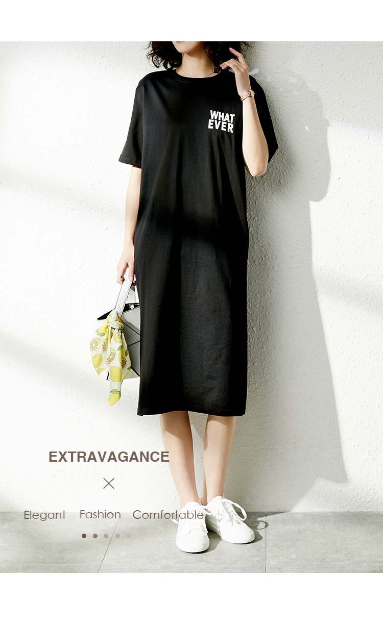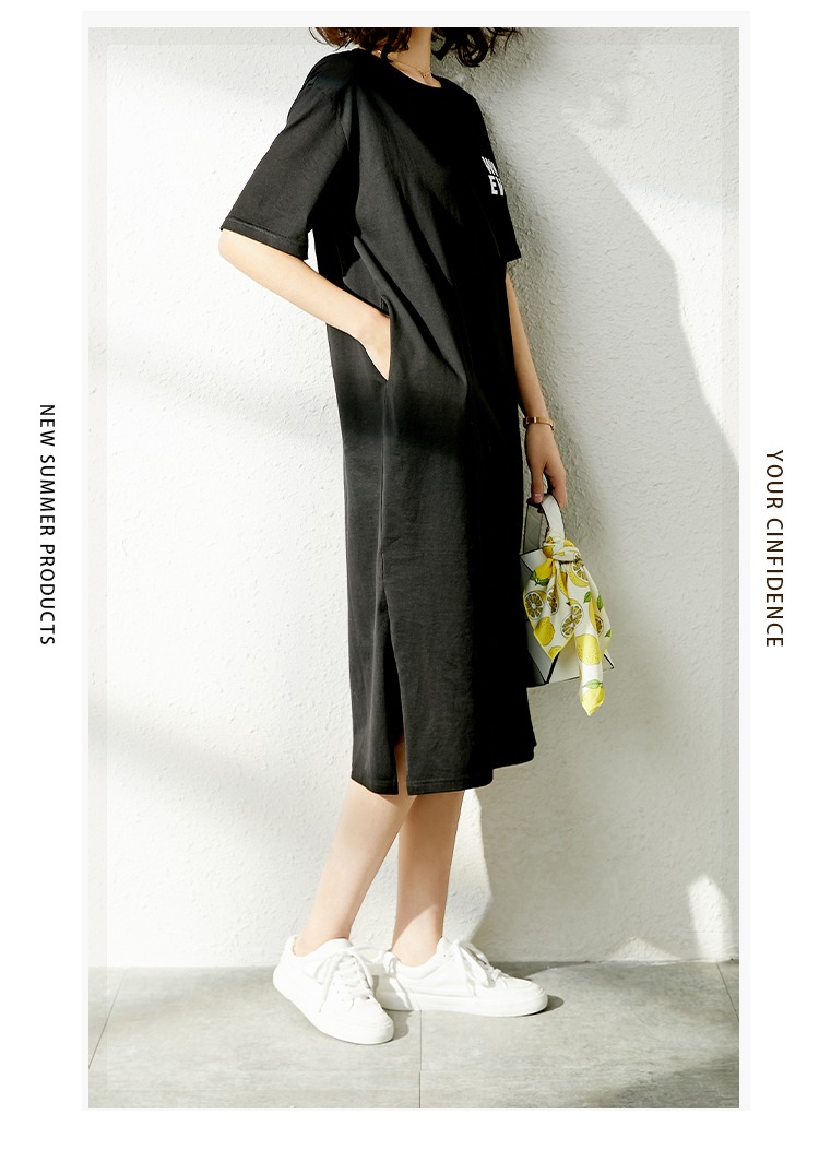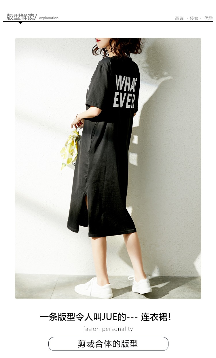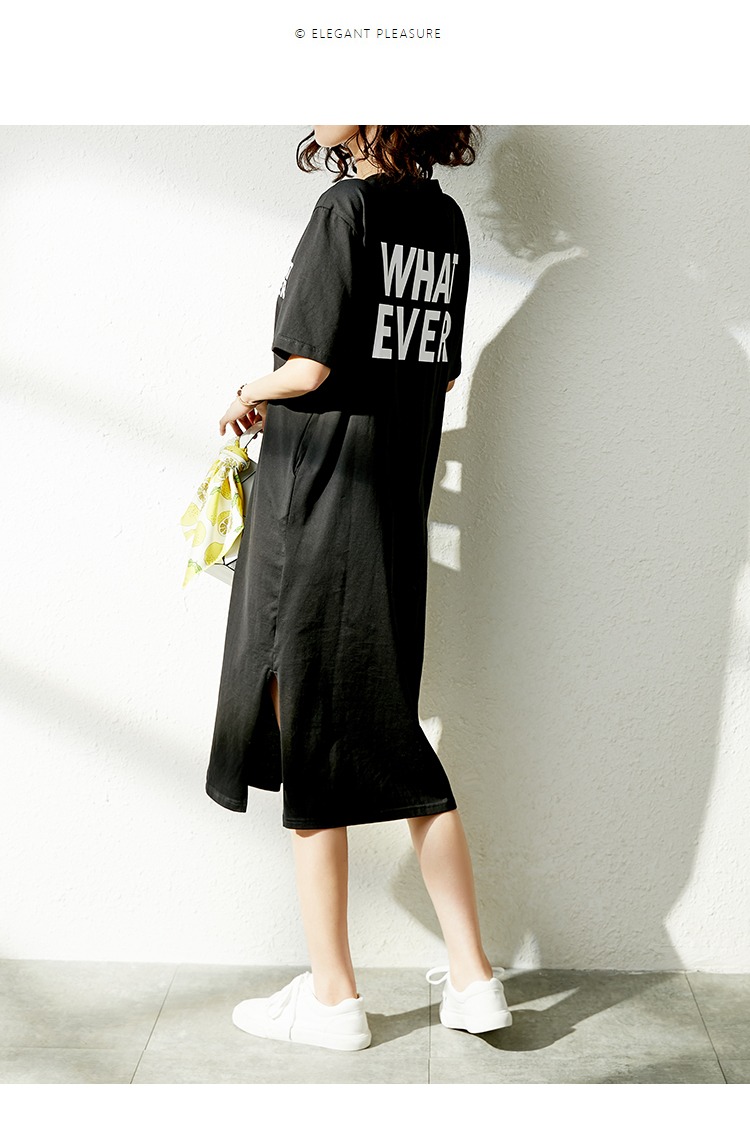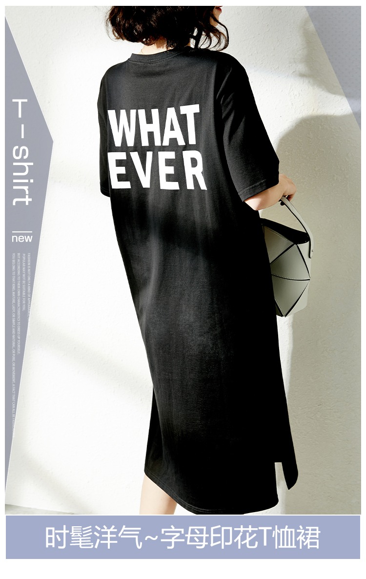 64825【现货款】字母休闲短袖连衣裙女中长款2023夏季新款宽松洋气过膝T恤裙