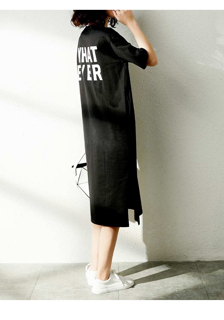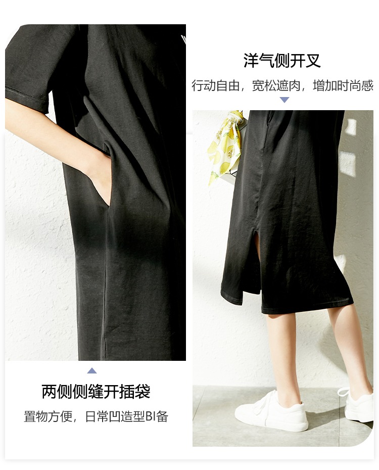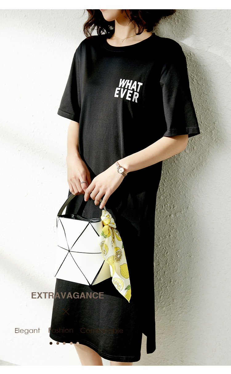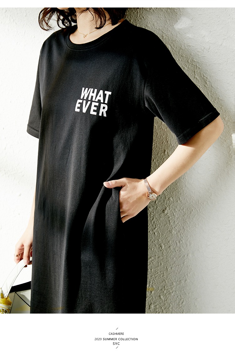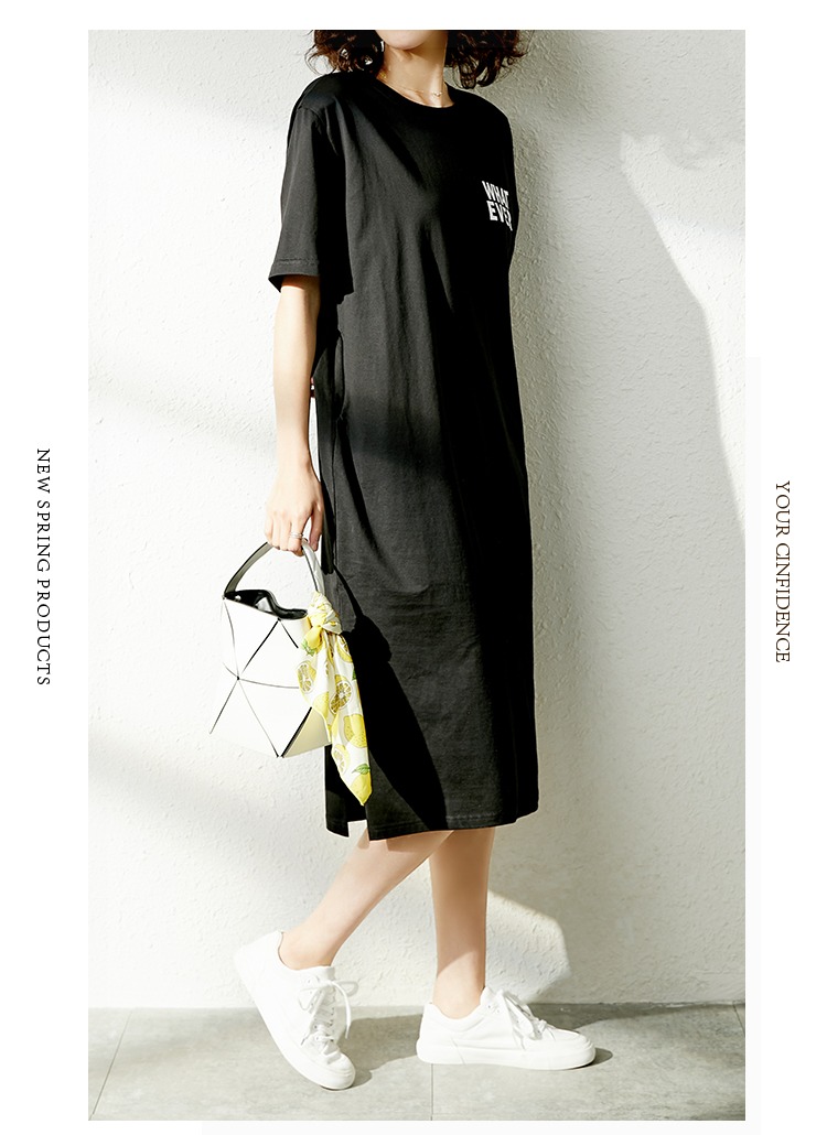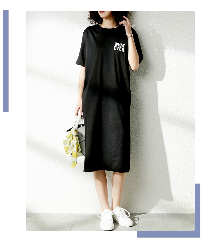 64825【现货款】字母休闲短袖连衣裙女中长款2023夏季新款宽松洋气过膝T恤裙