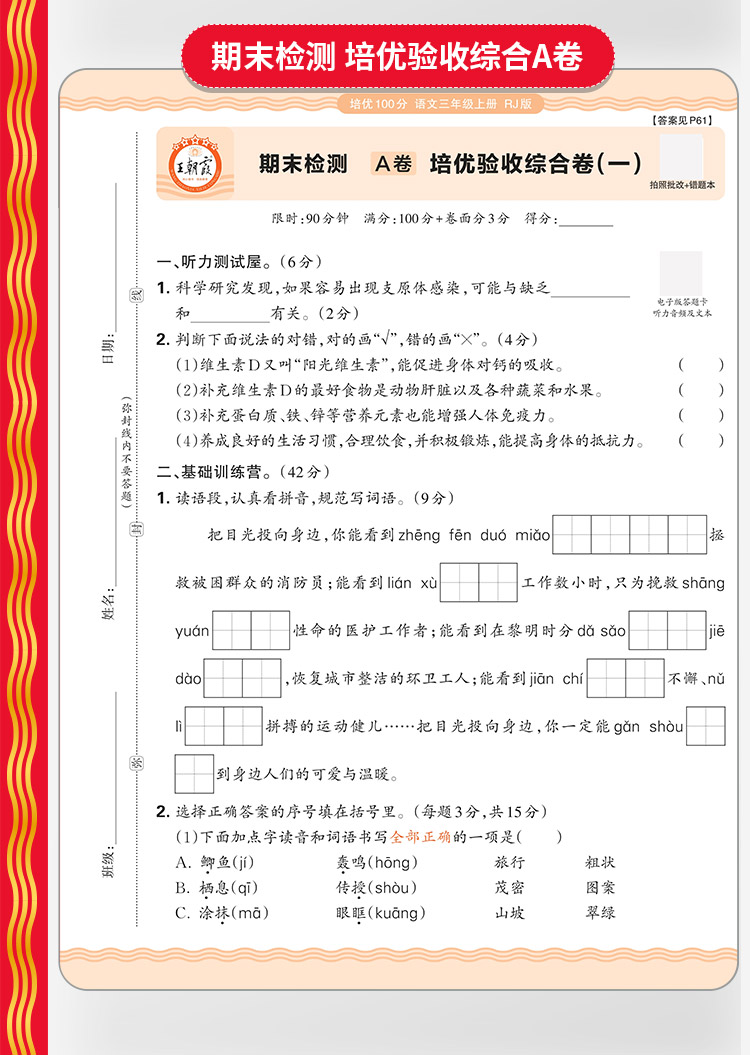 2025秋上册小学王朝霞培优100分1-6年级语数英同步单元培优卷