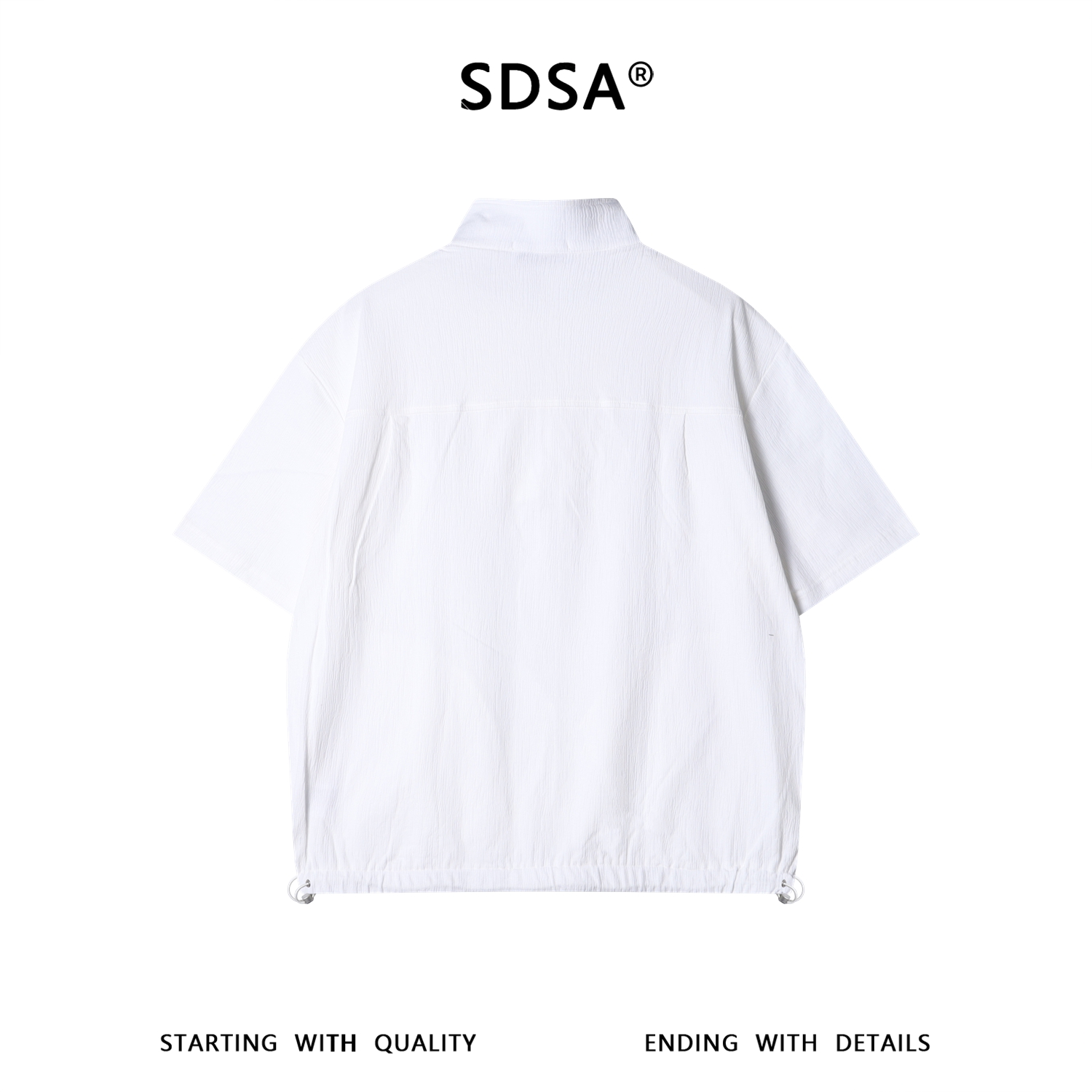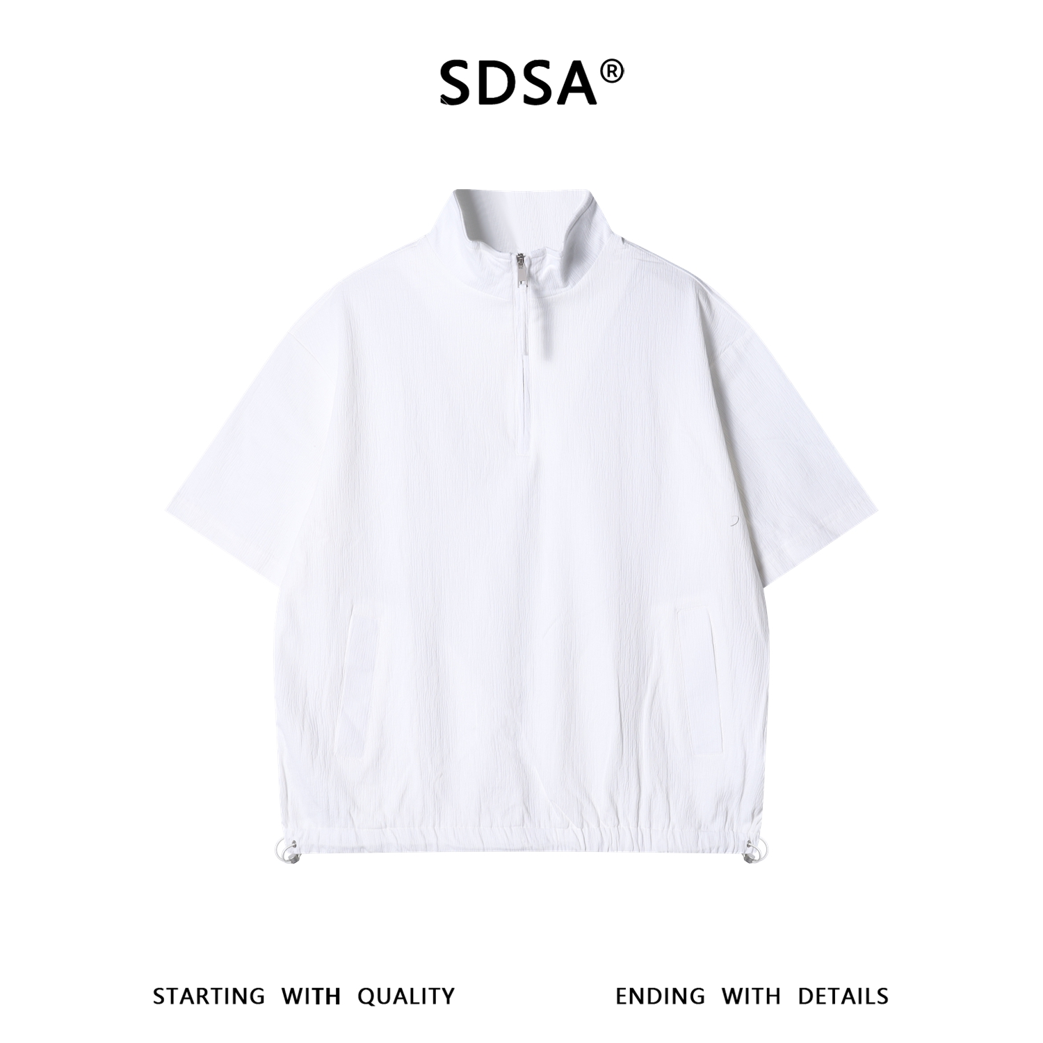 SDSA男装2026新款轻奢韩版半拉链立领短袖T恤百搭下摆松紧设计