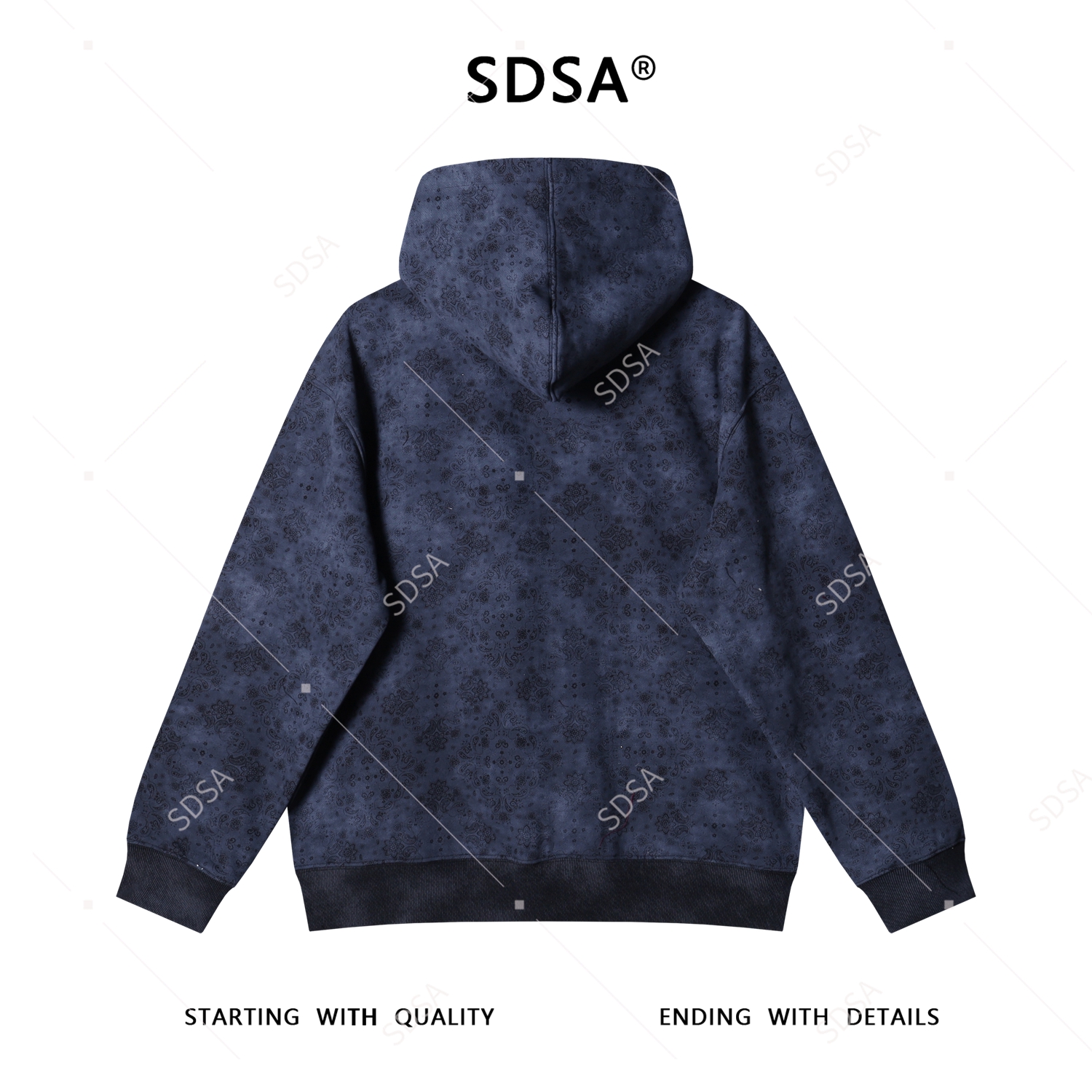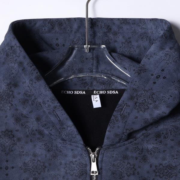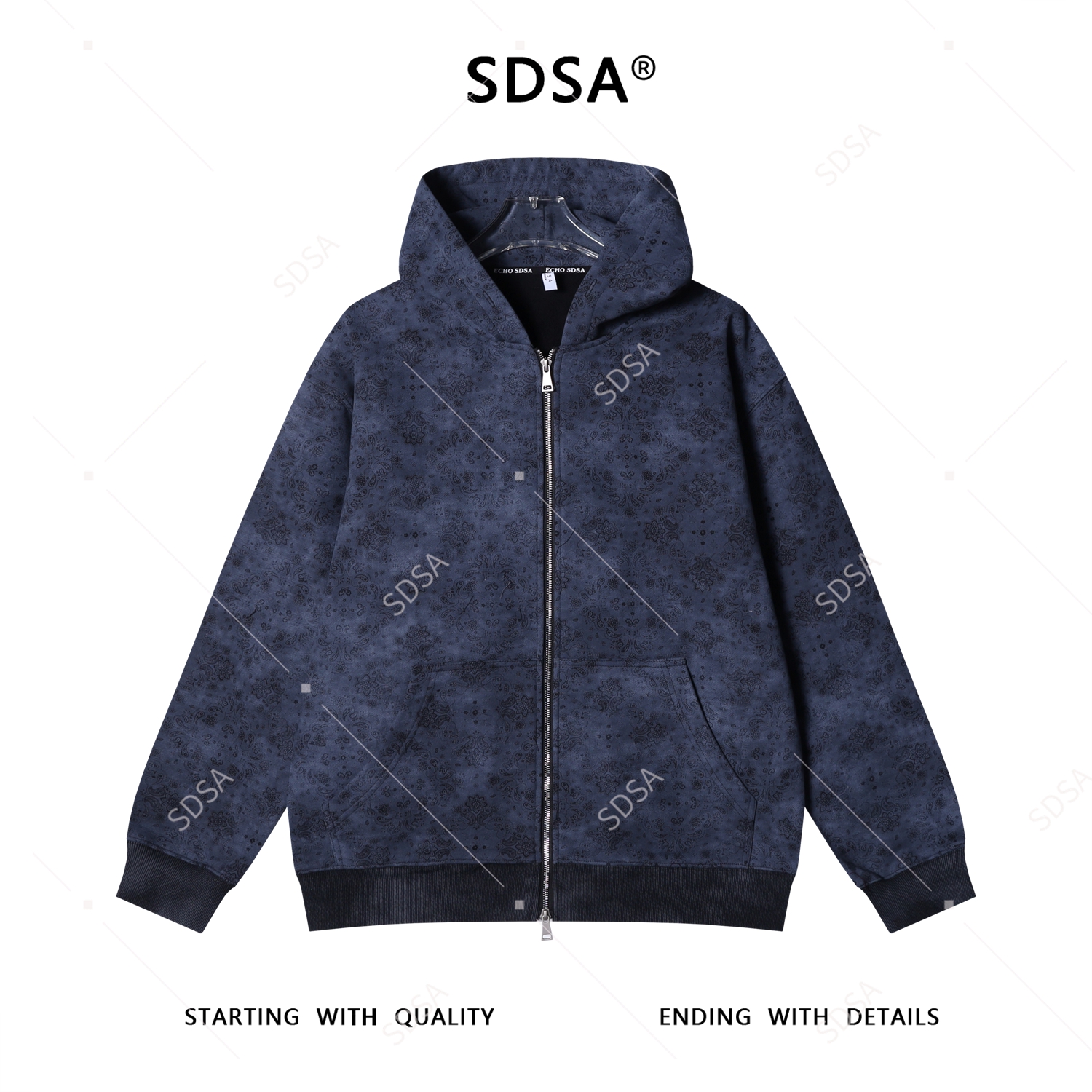 SDSA男士秋冬新款痞帅男装潮牌植物花卉印花拉链连帽卫衣时尚上衣