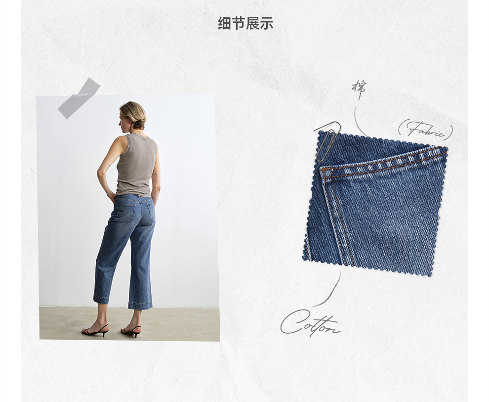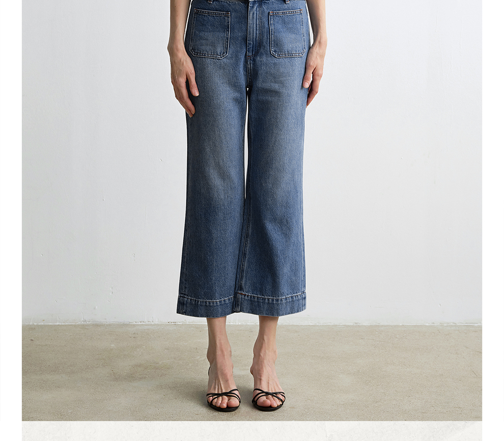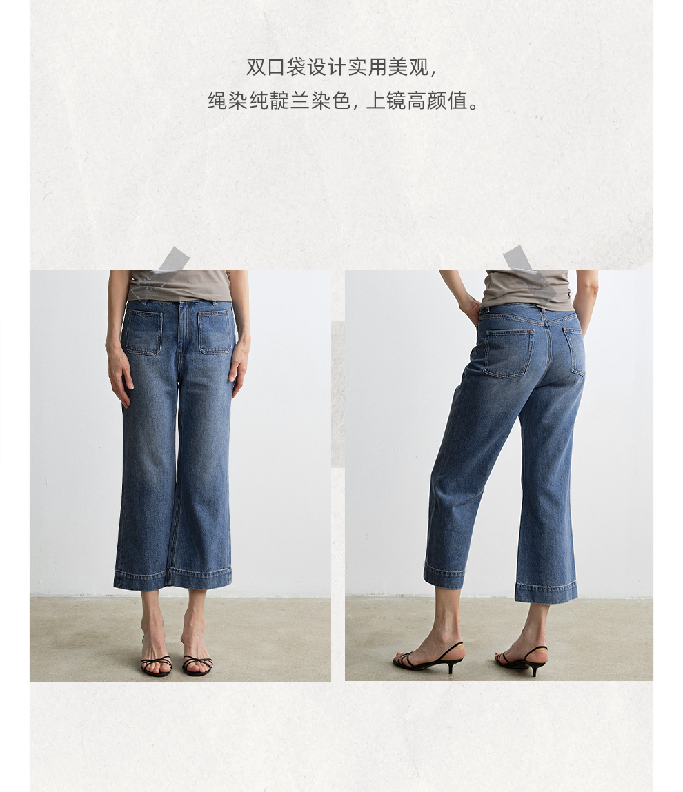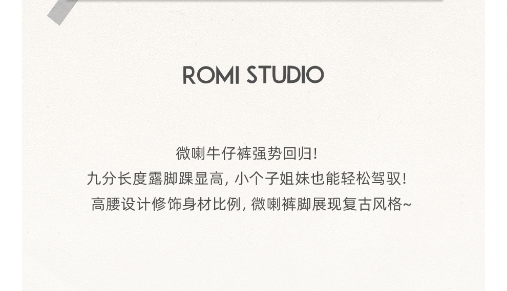 ROMI STUDIO“法式复古”棉质高腰双口袋九分微喇牛仔裤 RWCSXD3470