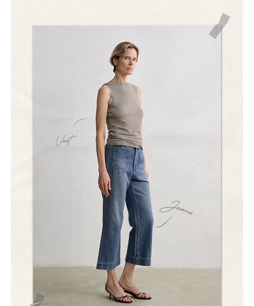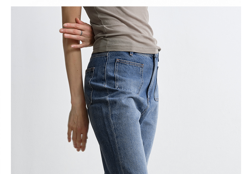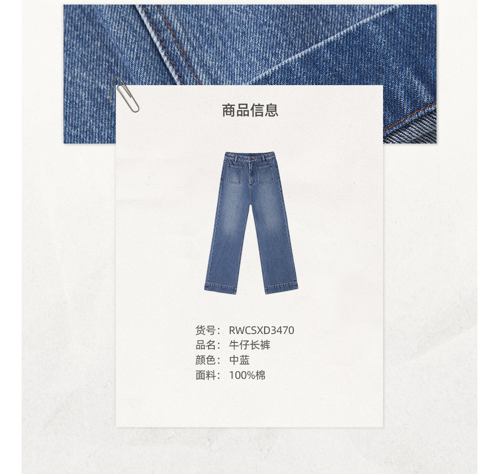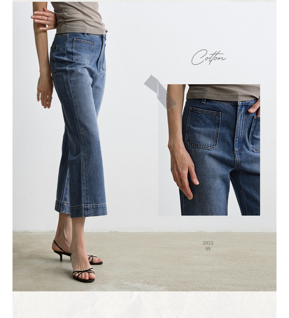 ROMI STUDIO“法式复古”棉质高腰双口袋九分微喇牛仔裤 RWCSXD3470