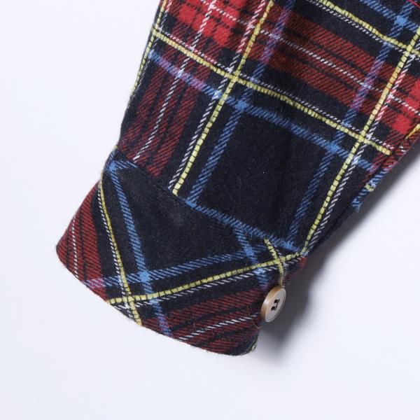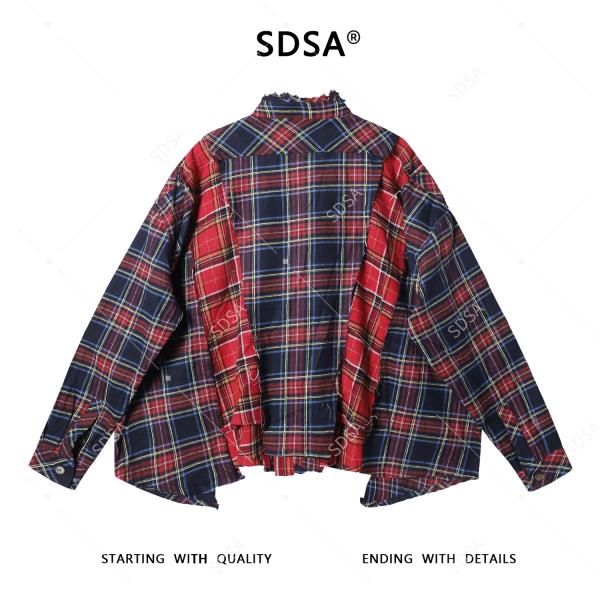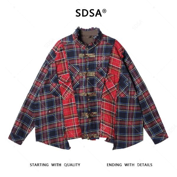 SDSA秋冬新款痞帅男装时尚撞色拼接格纹长袖衬衫一字扣设计百搭潮