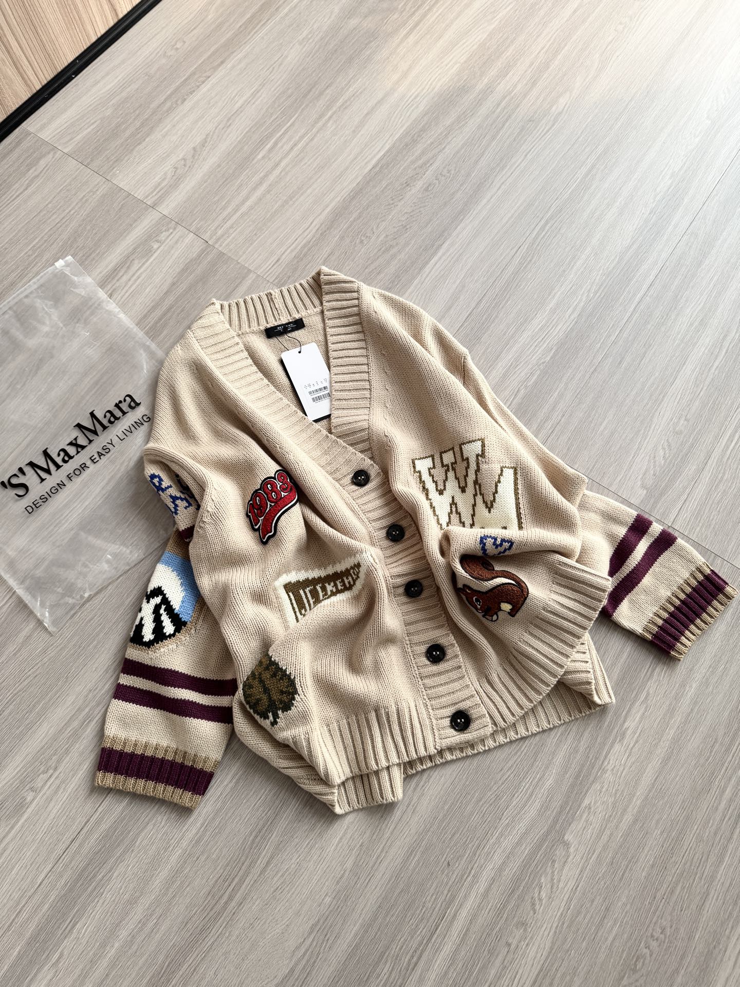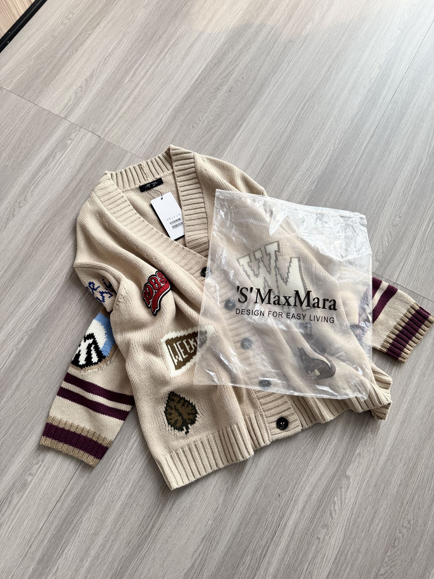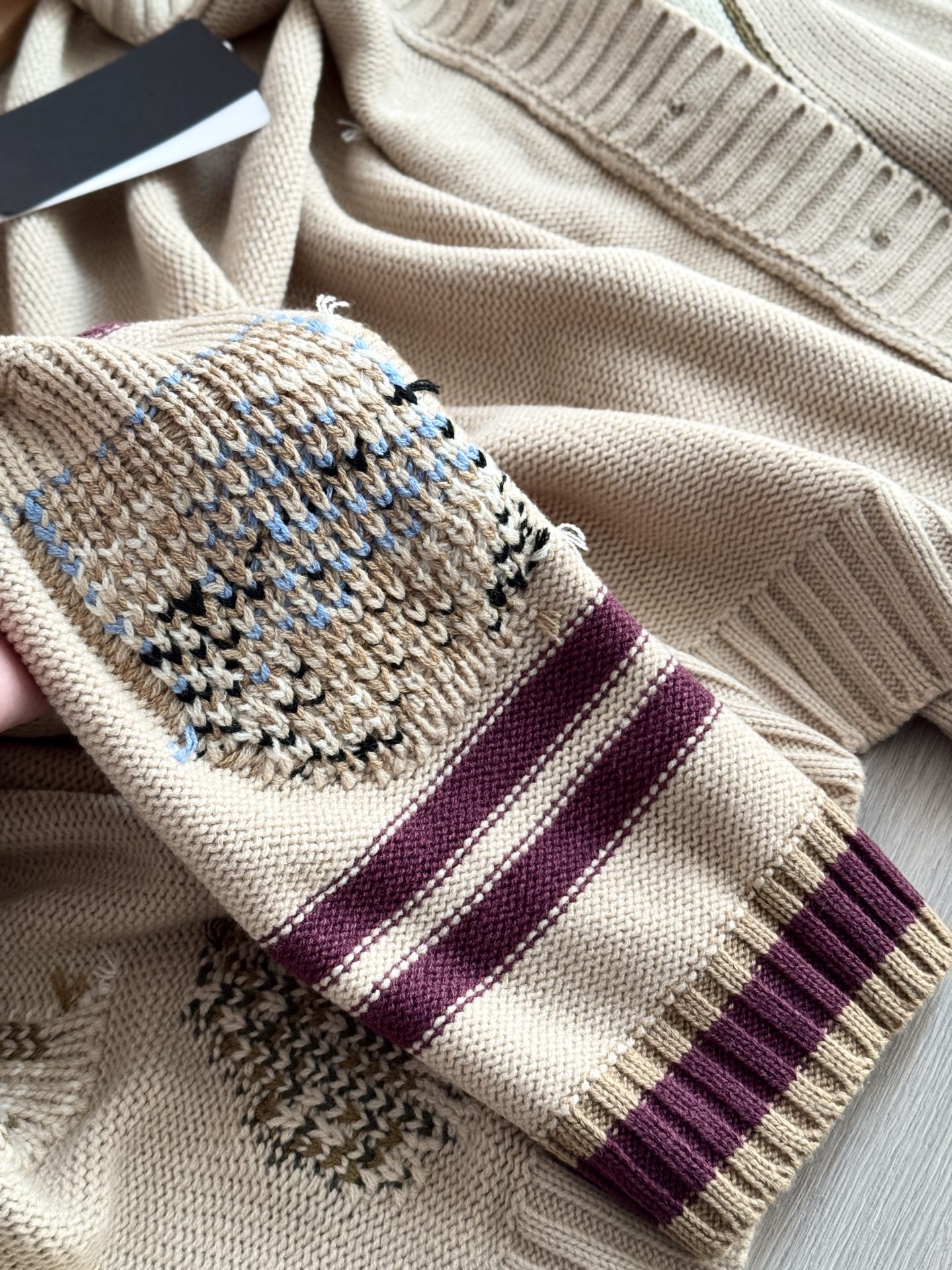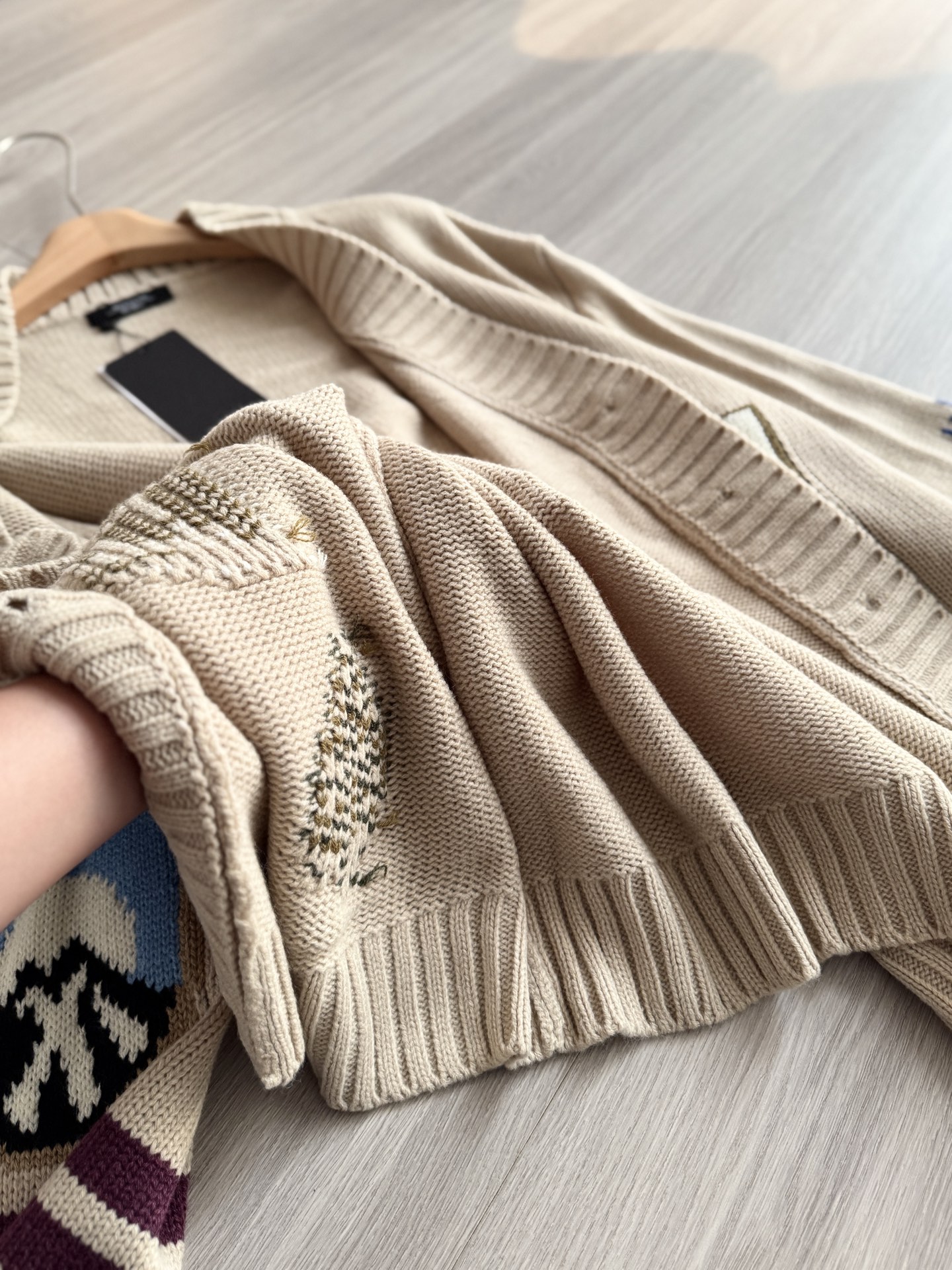 MaxMara WEEKEND 花纹V领针织毛衫 优雅内敛的驼色主调!! 点缀着明快的彩色图案! 形成撞色效果!! 丰富的色彩!但是不会浮夸的那种!!!! 甚至是而且是很内敛的学院风! 这件真心绝美配色!闭眼入! 穿去哪里都是c位!!!