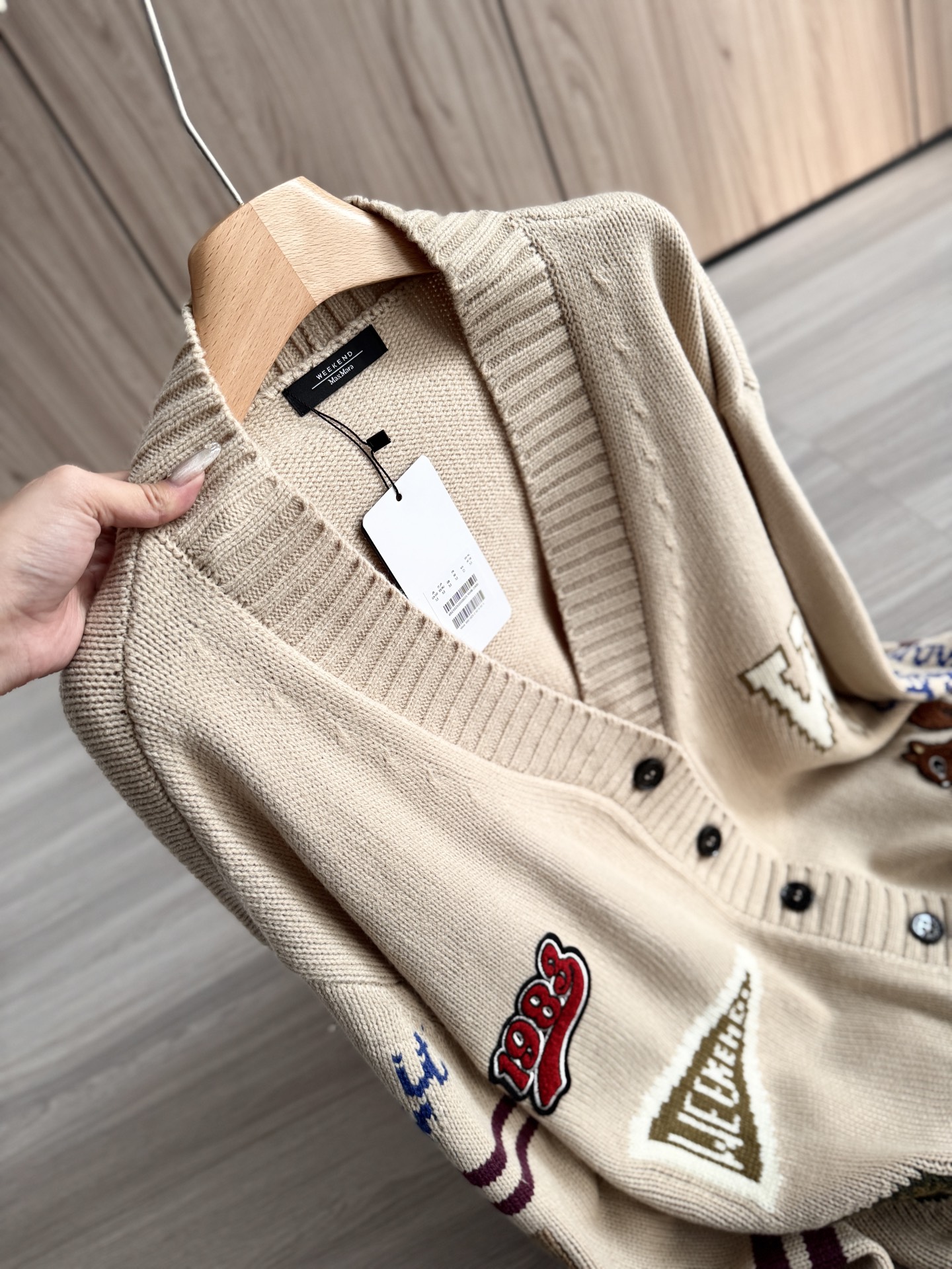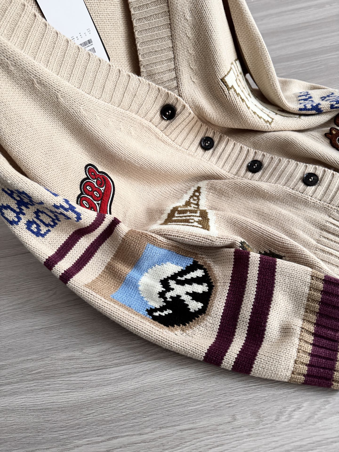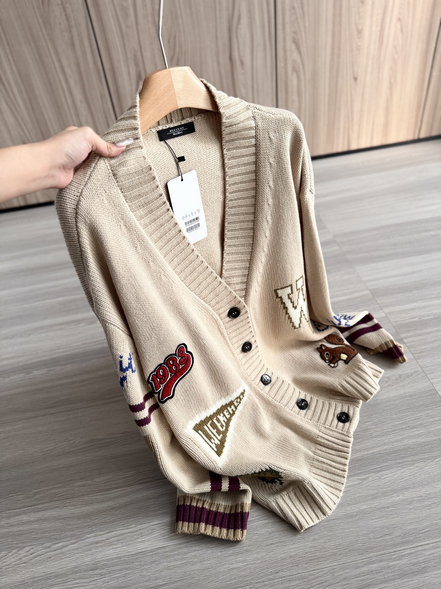 MaxMara WEEKEND 花纹V领针织毛衫 优雅内敛的驼色主调!! 点缀着明快的彩色图案! 形成撞色效果!! 丰富的色彩!但是不会浮夸的那种!!!! 甚至是而且是很内敛的学院风! 这件真心绝美配色!闭眼入! 穿去哪里都是c位!!!