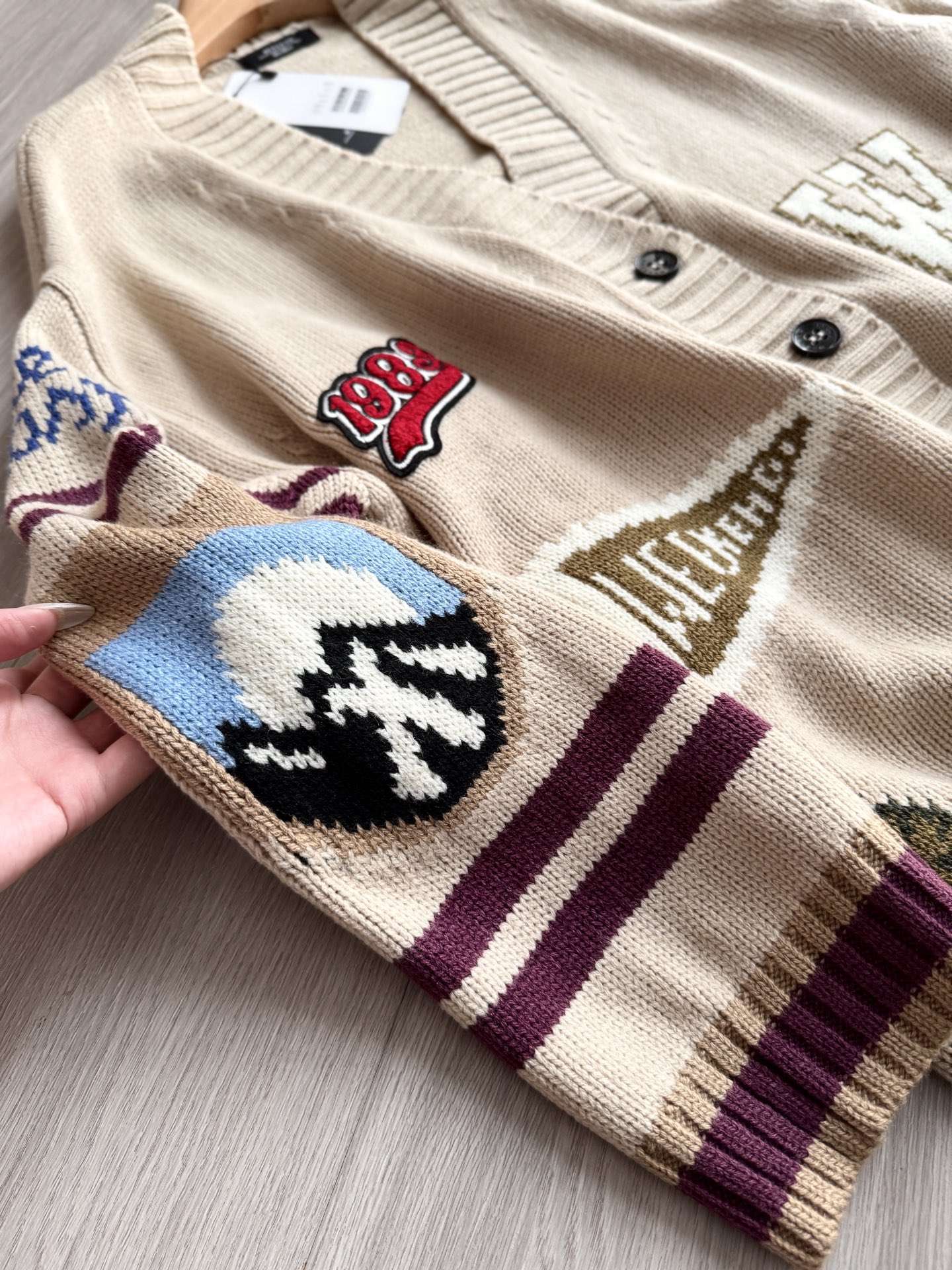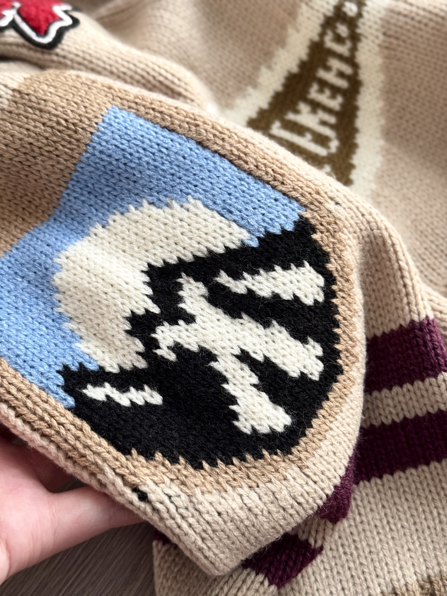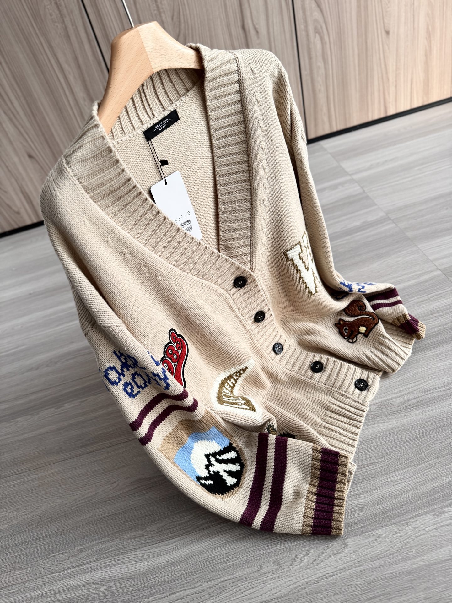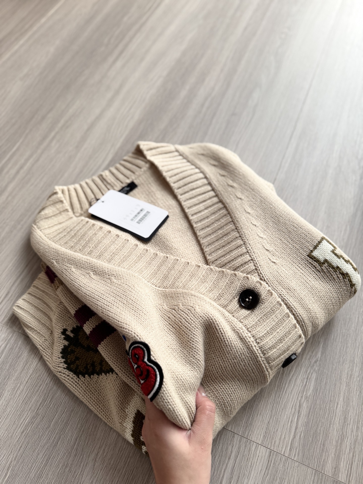 MaxMara WEEKEND 花纹V领针织毛衫 优雅内敛的驼色主调!! 点缀着明快的彩色图案! 形成撞色效果!! 丰富的色彩!但是不会浮夸的那种!!!! 甚至是而且是很内敛的学院风! 这件真心绝美配色!闭眼入! 穿去哪里都是c位!!!