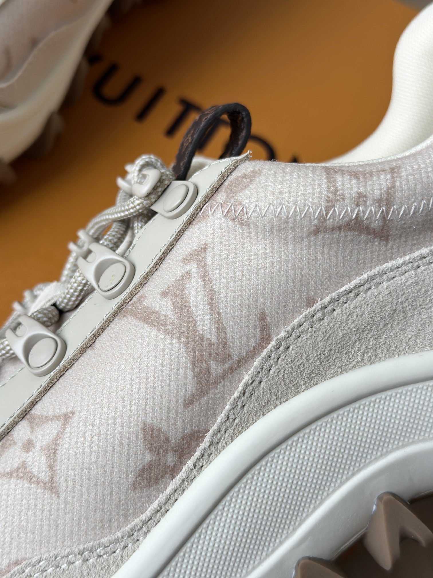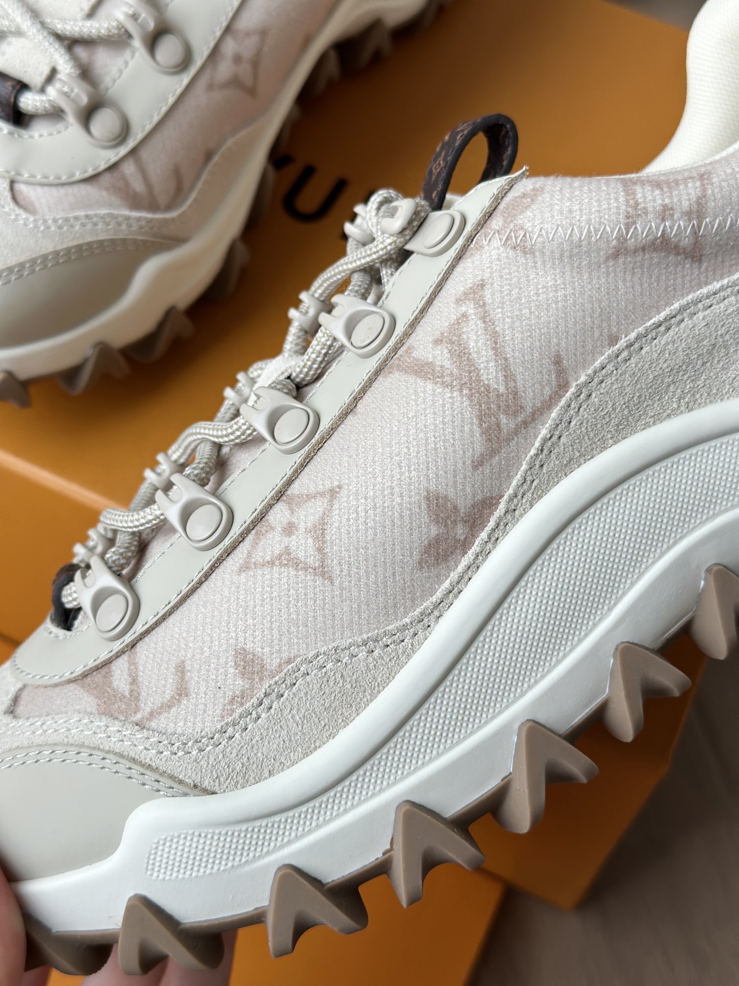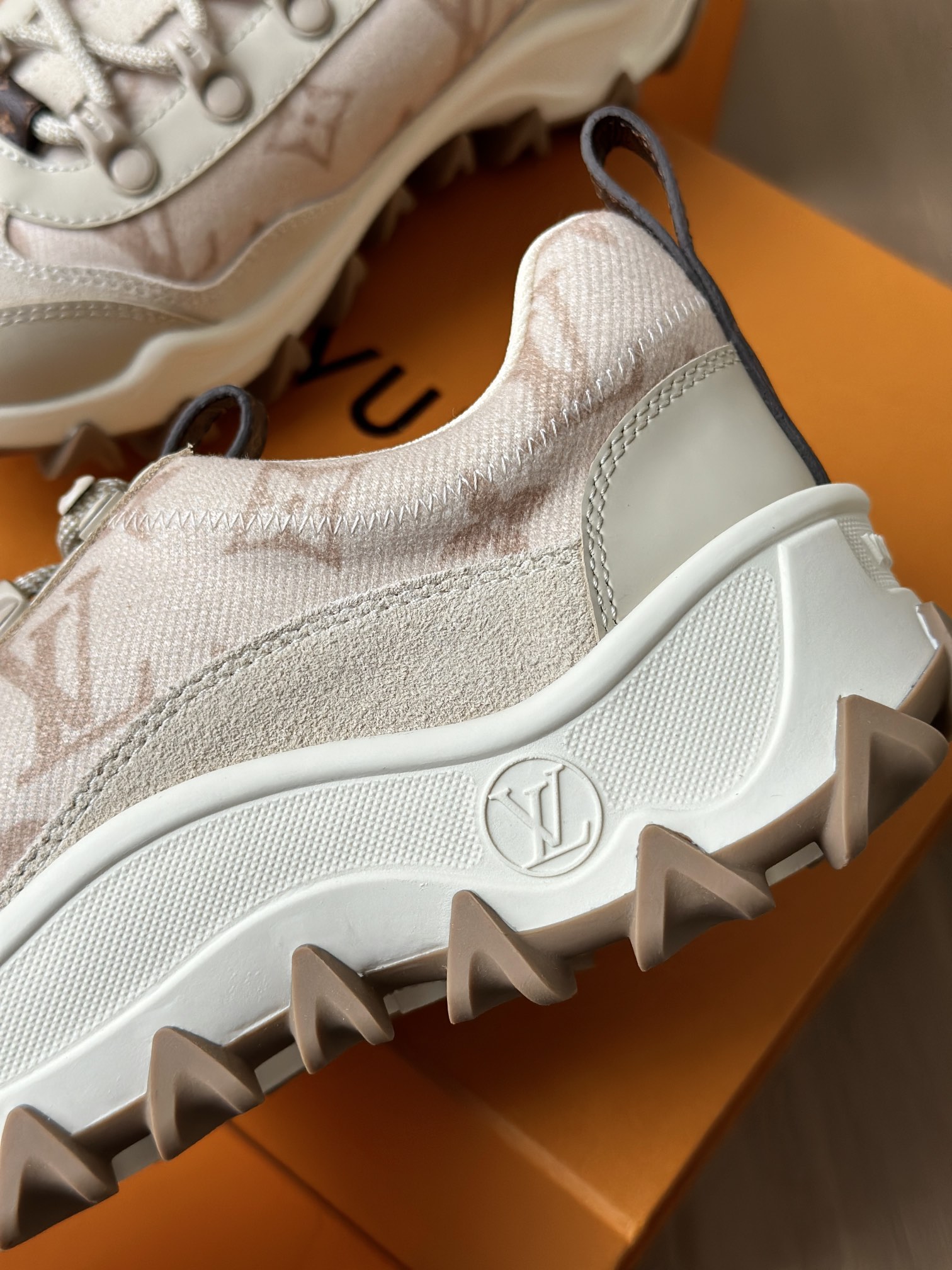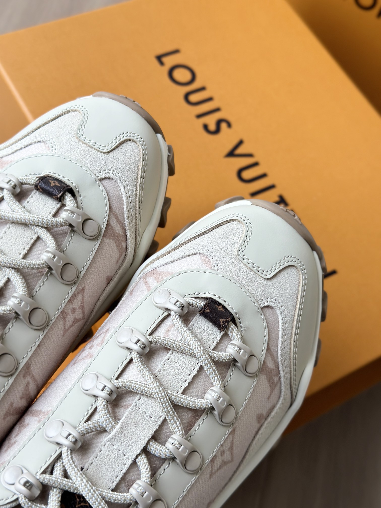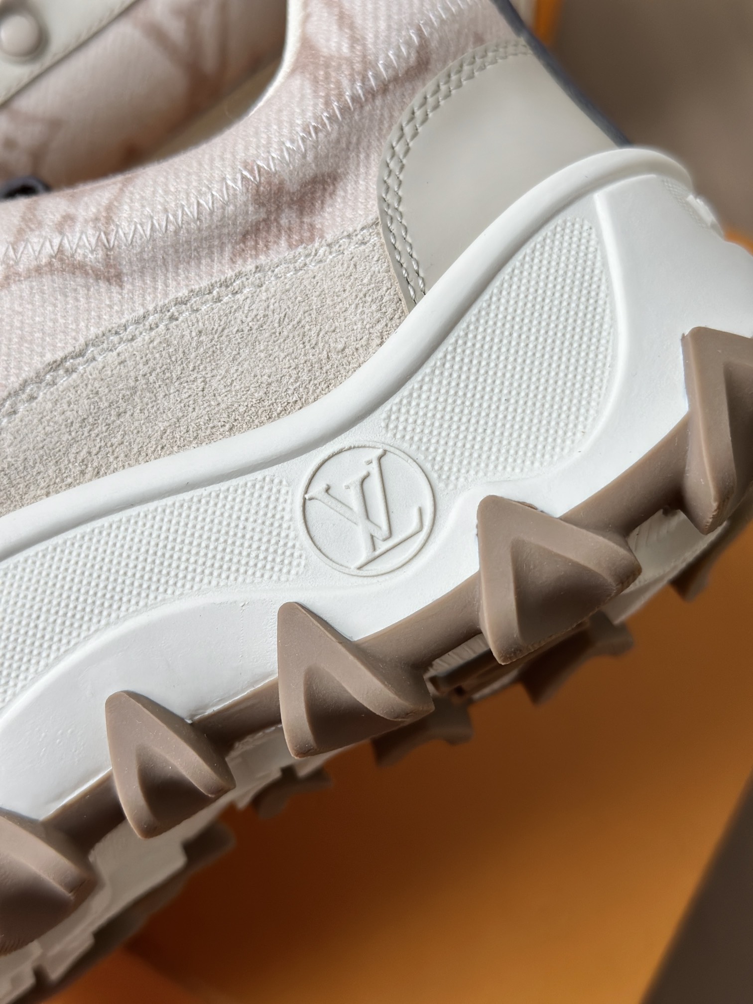 标志性 Monogram 帆布拼接透气网布,锯齿状厚底自带增高气场,既保留了品牌辨识度,又注入了户外机能感