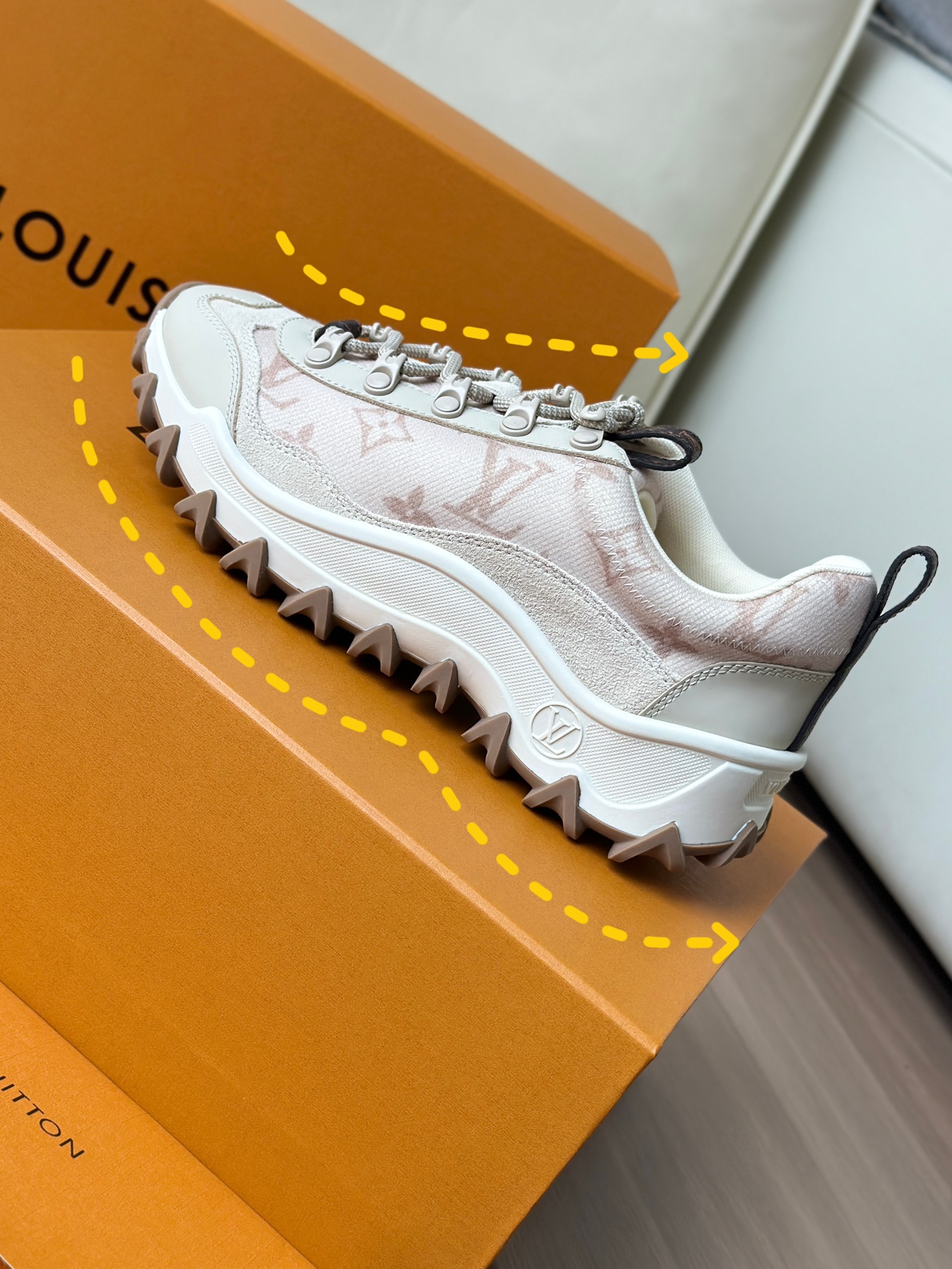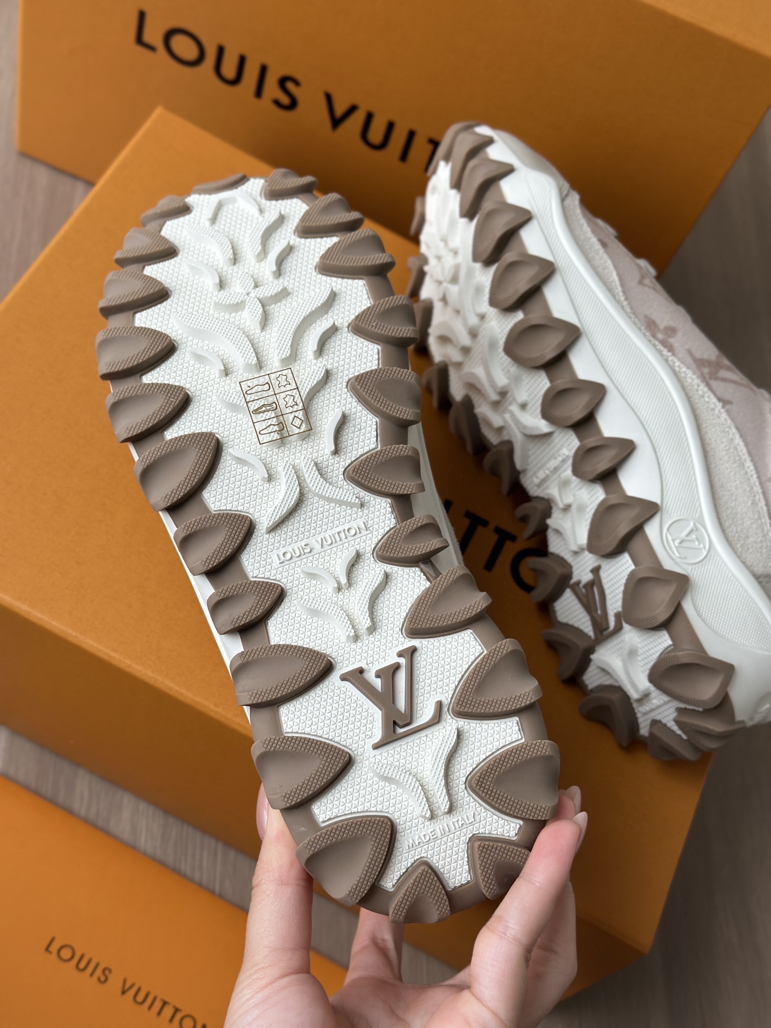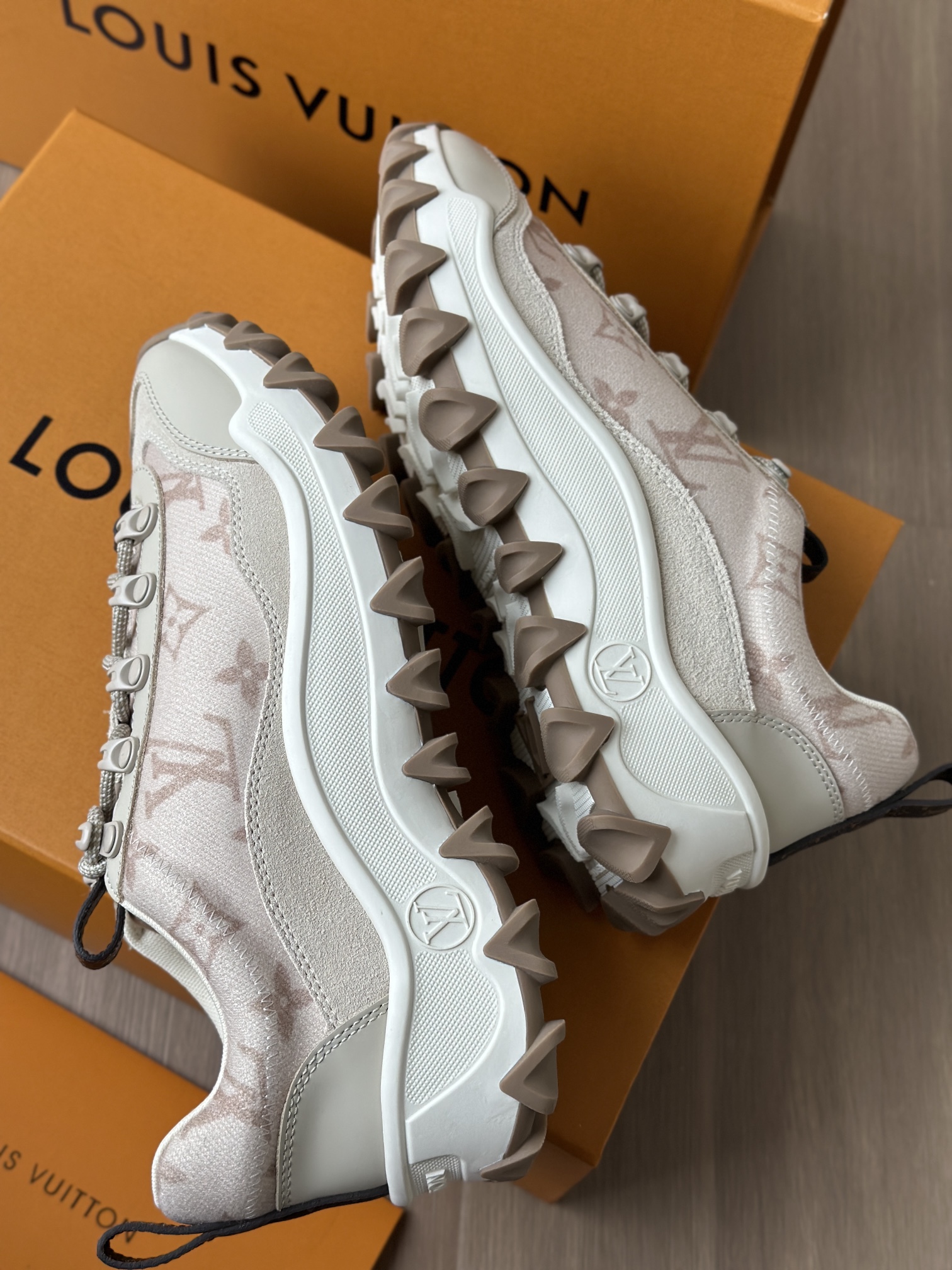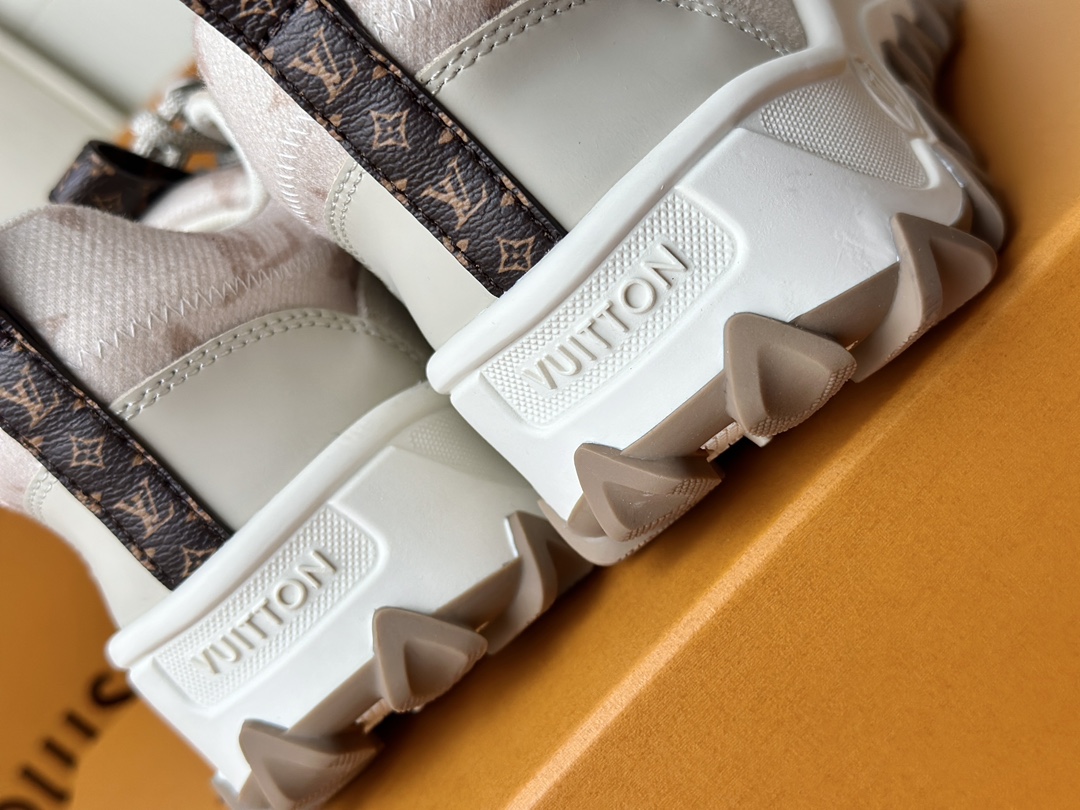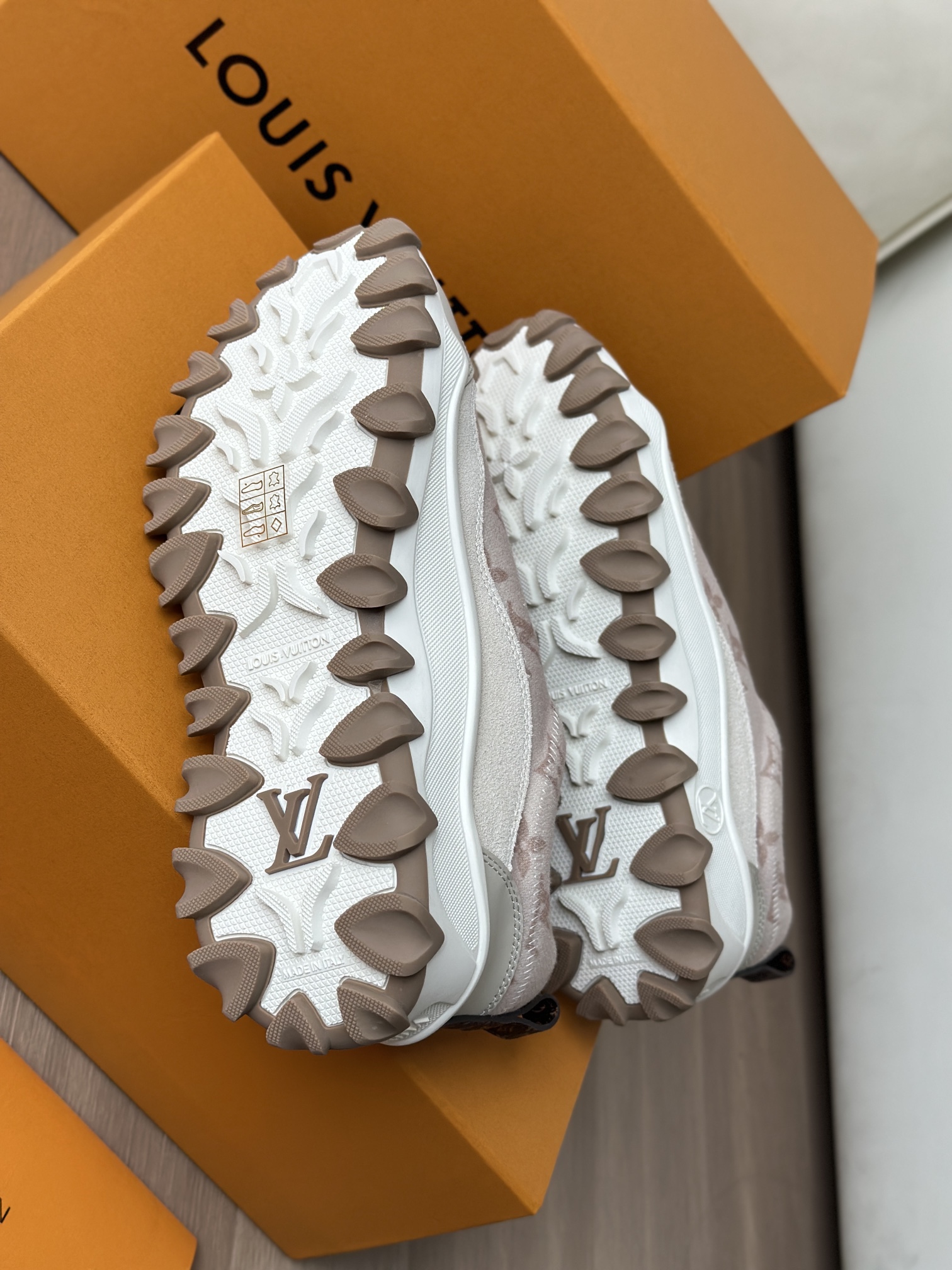 标志性 Monogram 帆布拼接透气网布,锯齿状厚底自带增高气场,既保留了品牌辨识度,又注入了户外机能感