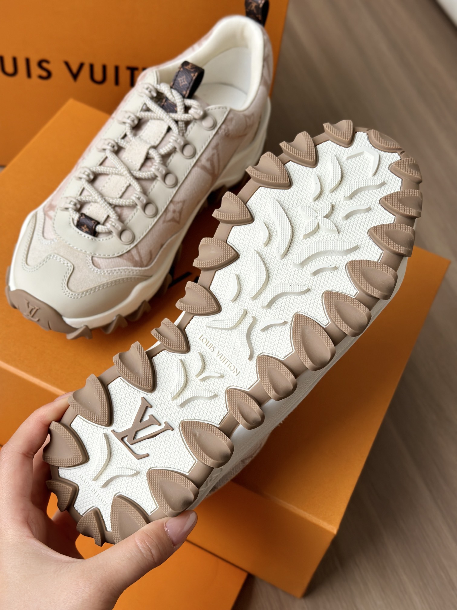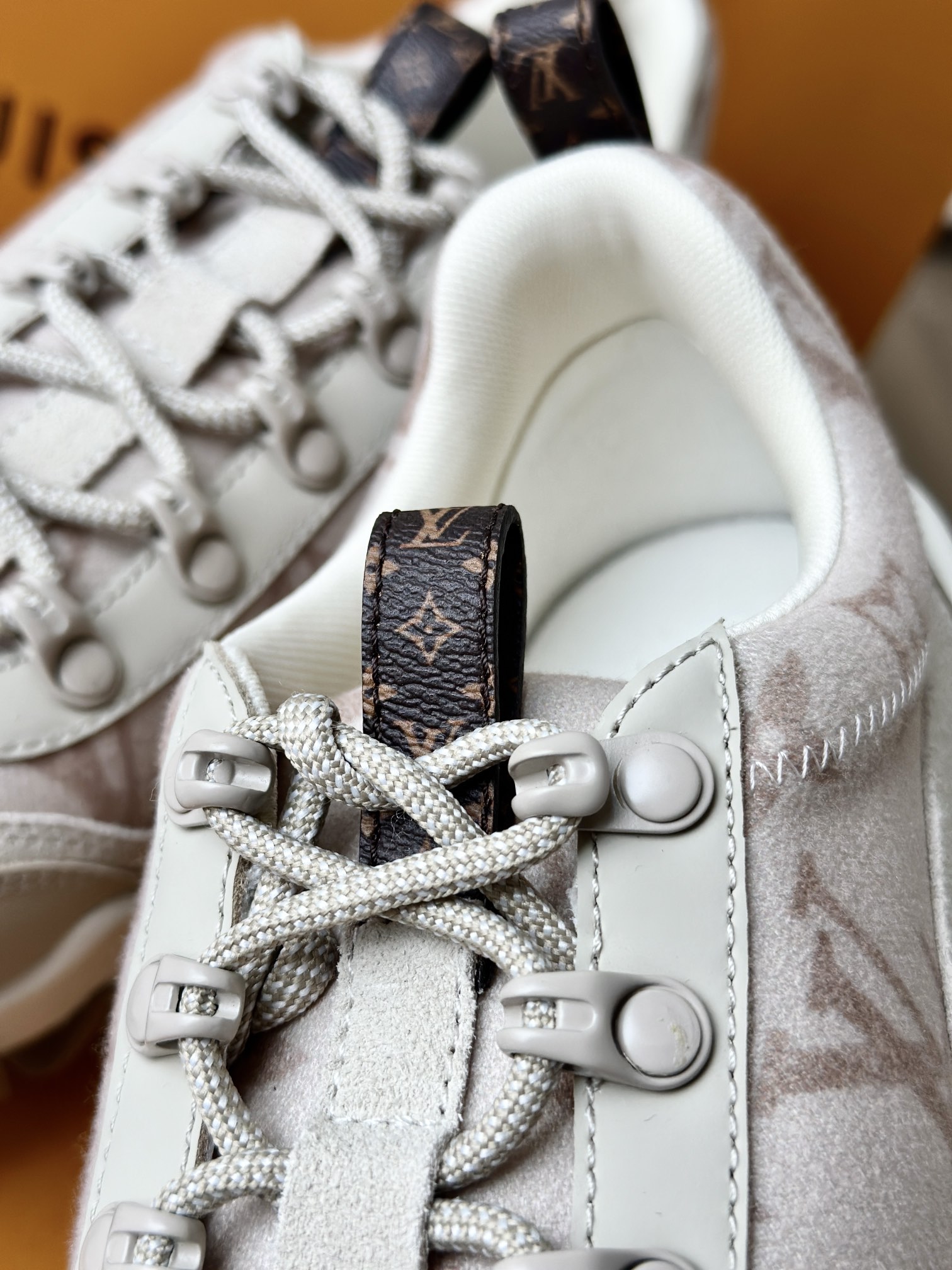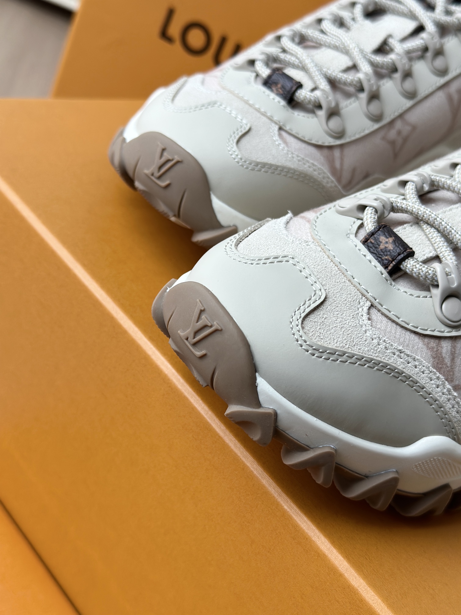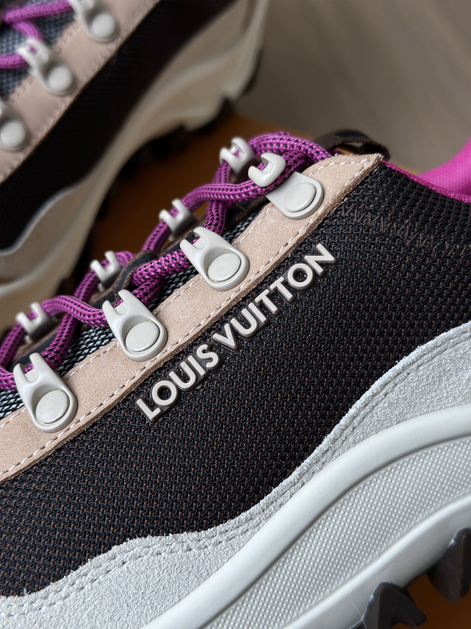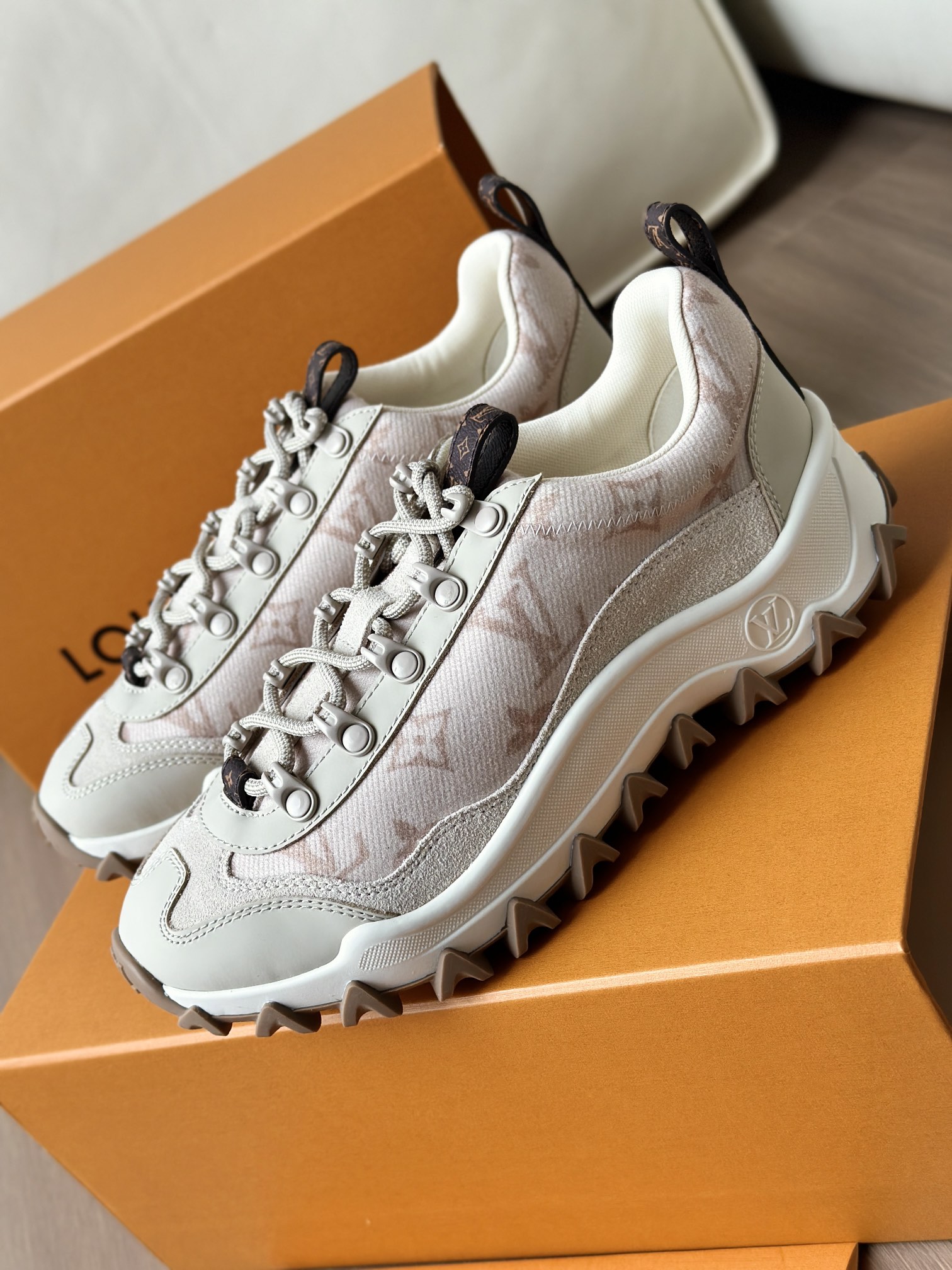 标志性 Monogram 帆布拼接透气网布,锯齿状厚底自带增高气场,既保留了品牌辨识度,又注入了户外机能感
