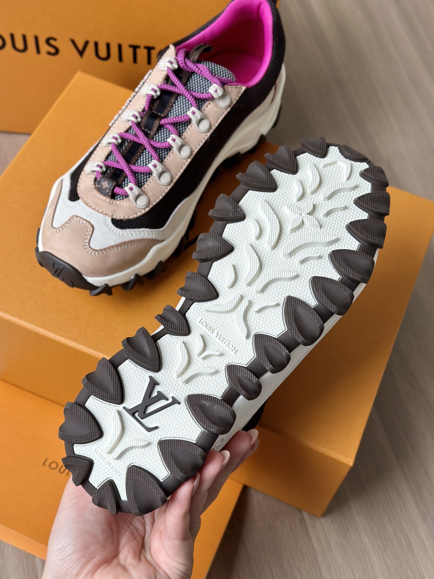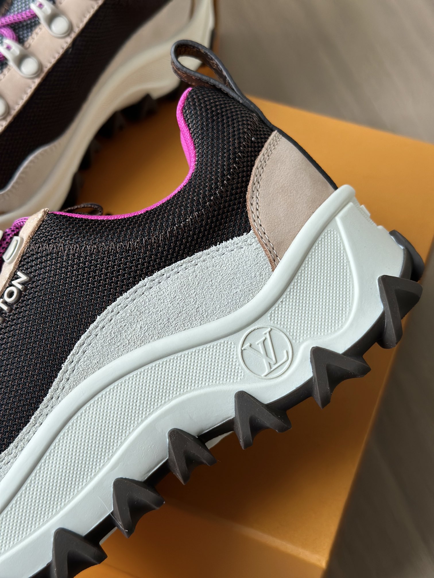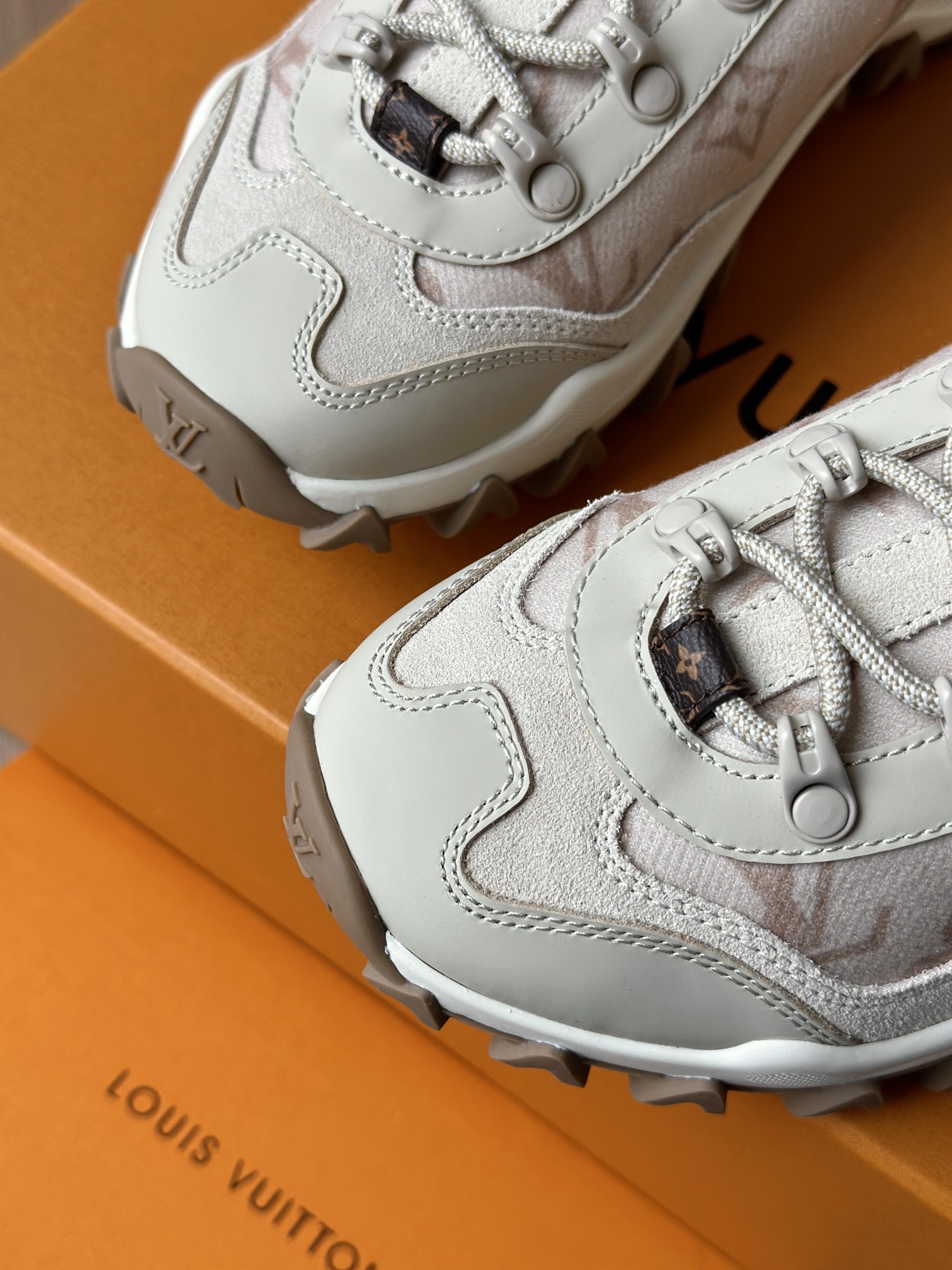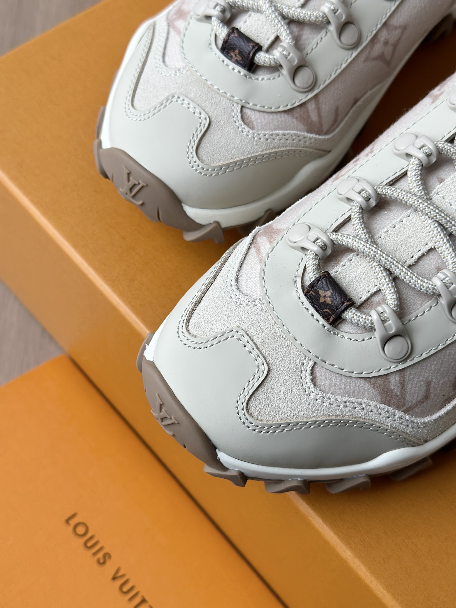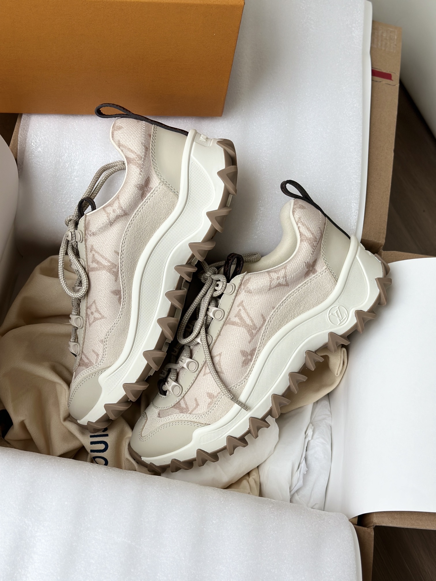标志性 Monogram 帆布拼接透气网布,锯齿状厚底自带增高气场,既保留了品牌辨识度,又注入了户外机能感