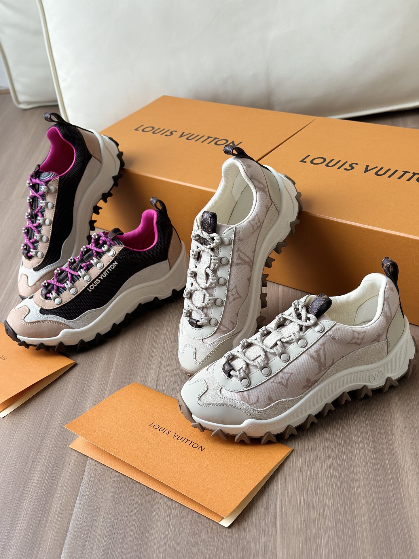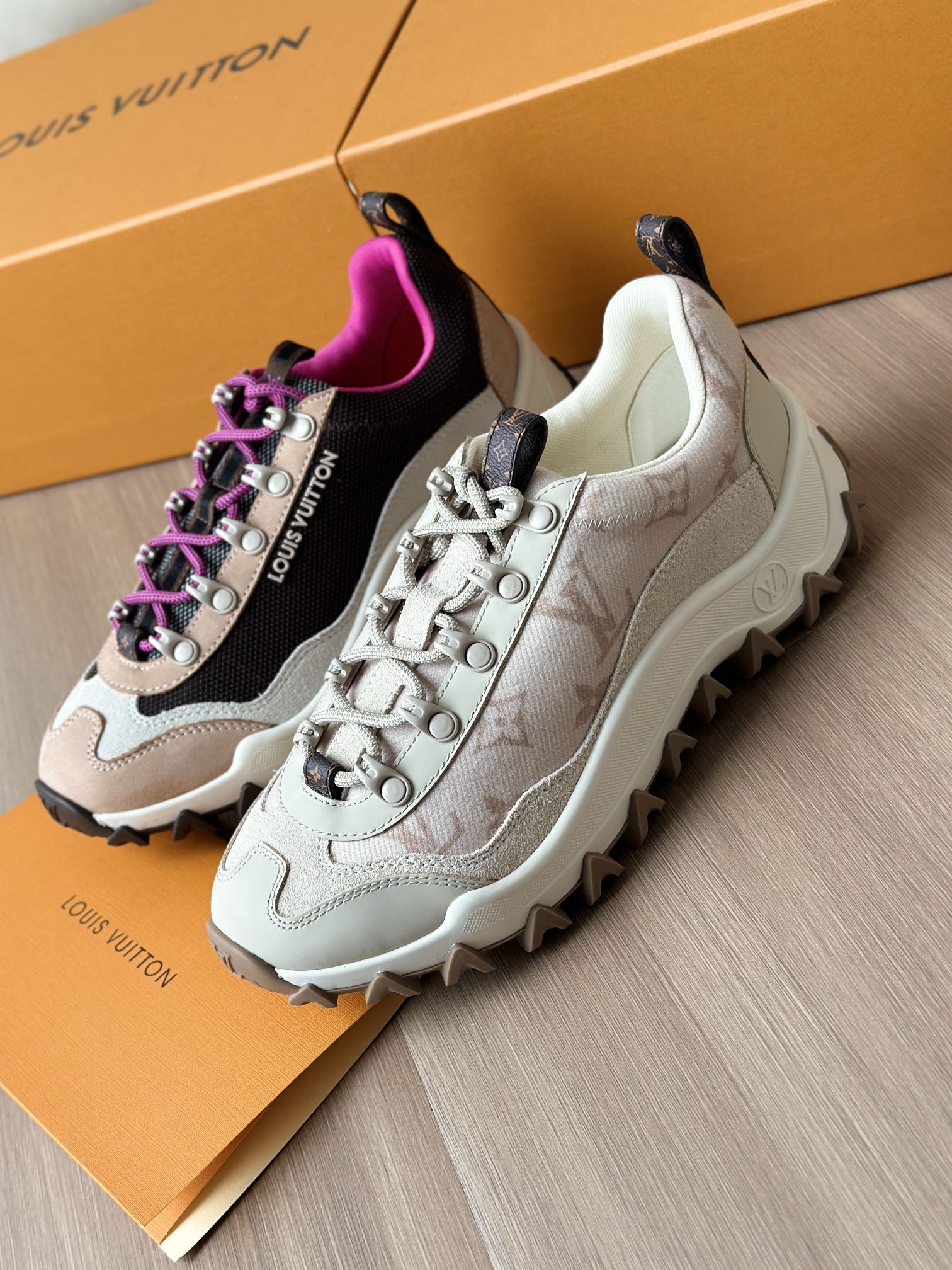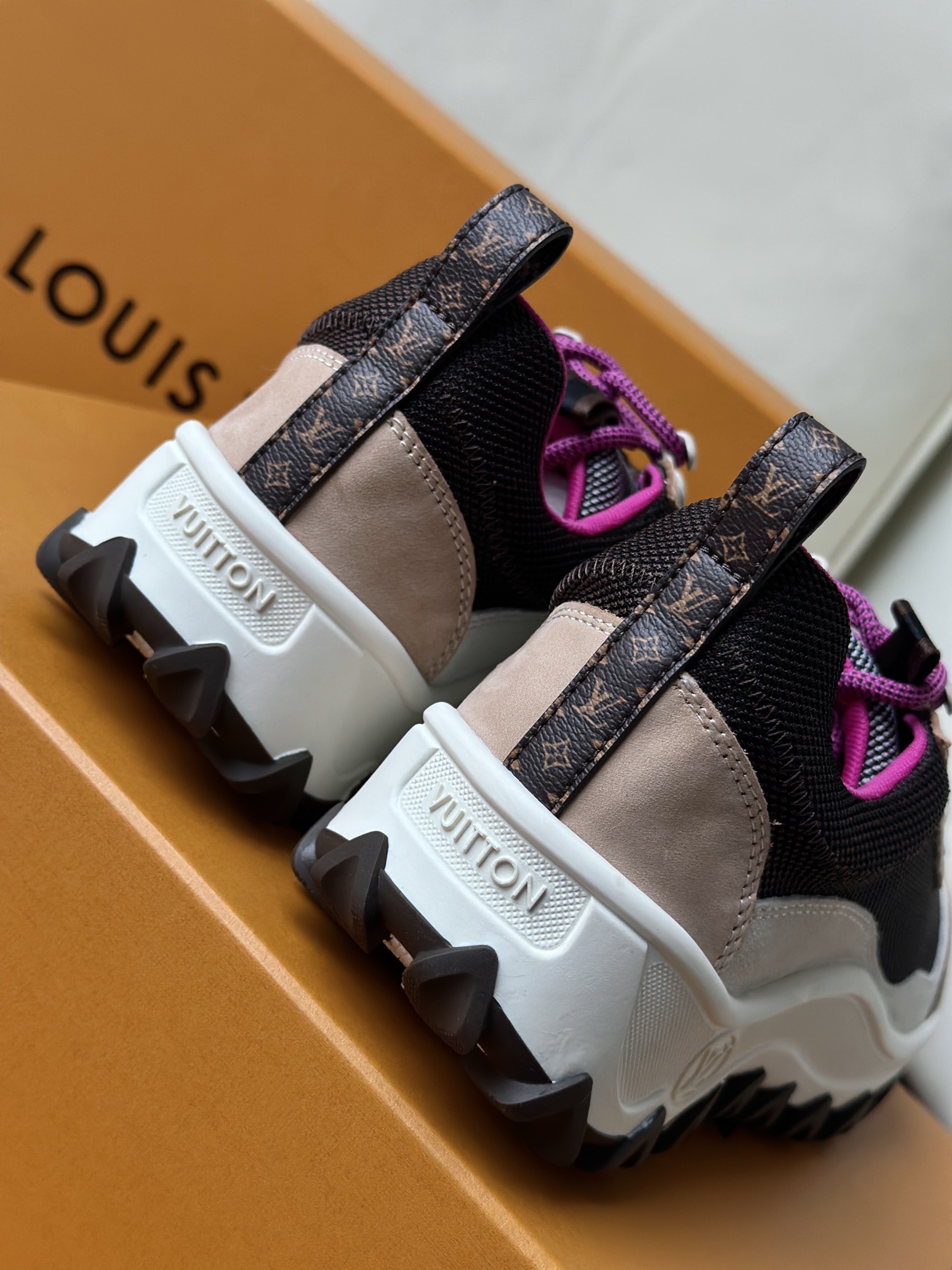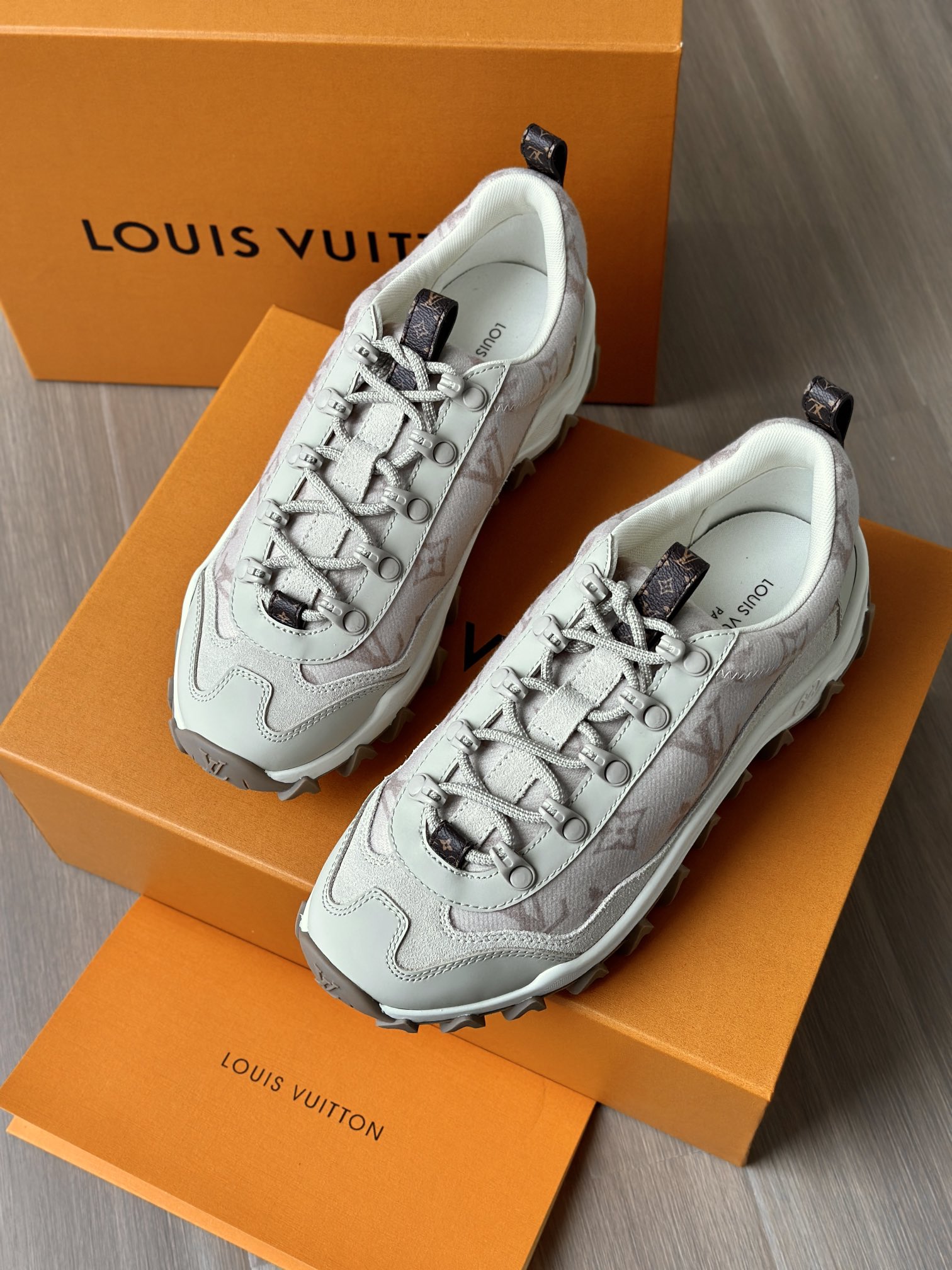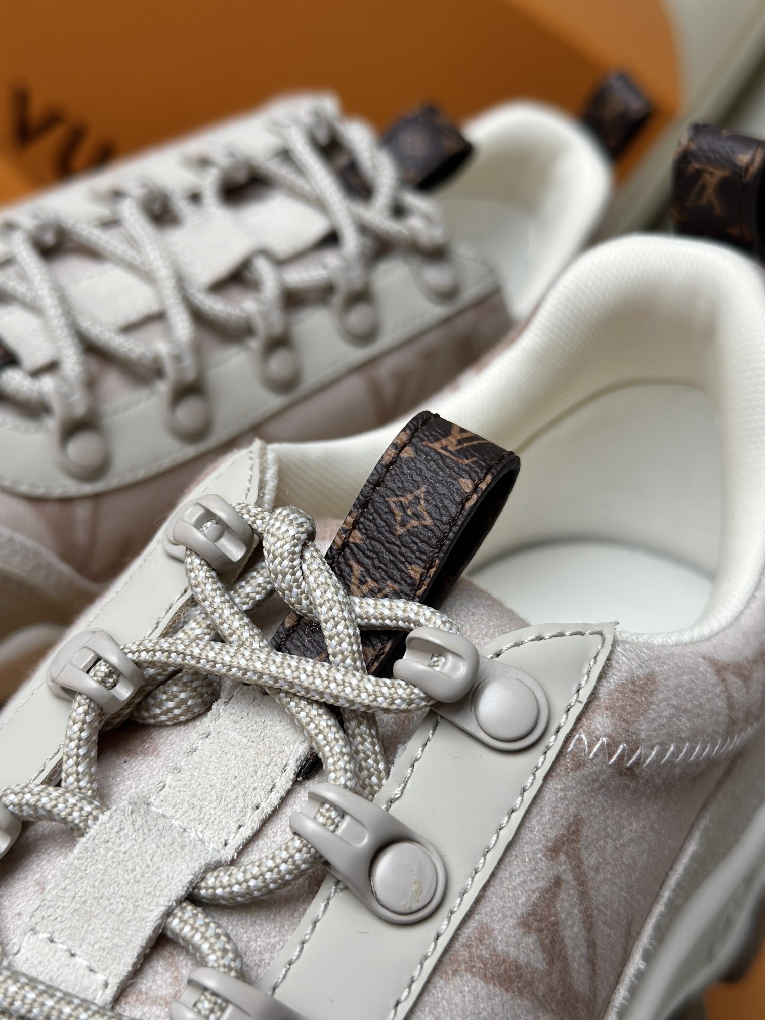 标志性 Monogram 帆布拼接透气网布,锯齿状厚底自带增高气场,既保留了品牌辨识度,又注入了户外机能感