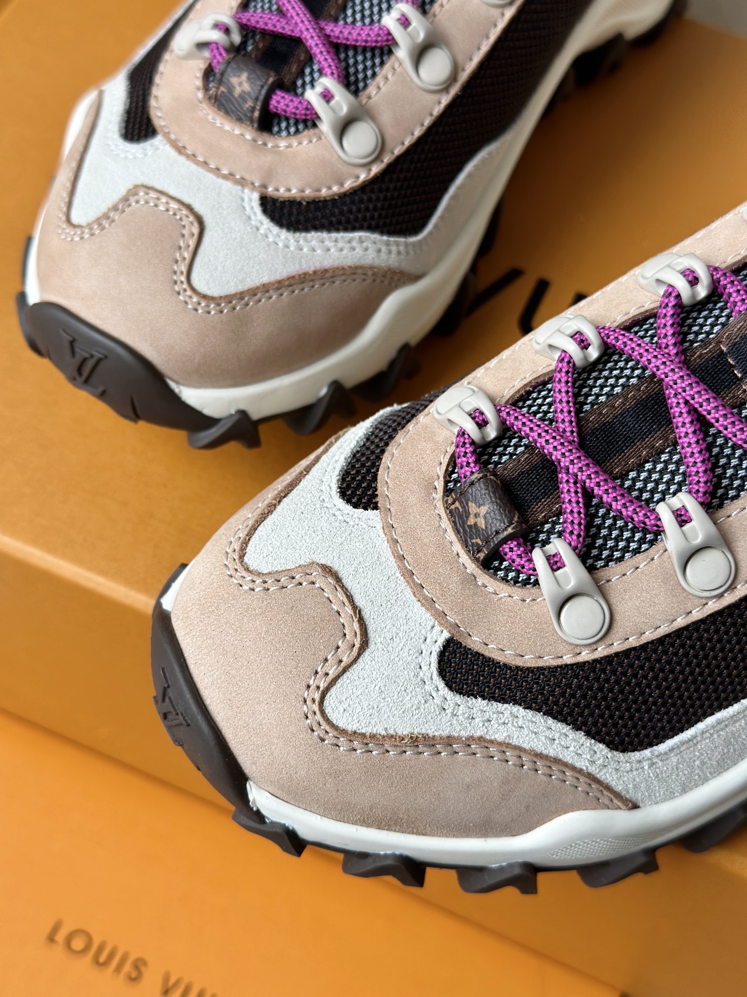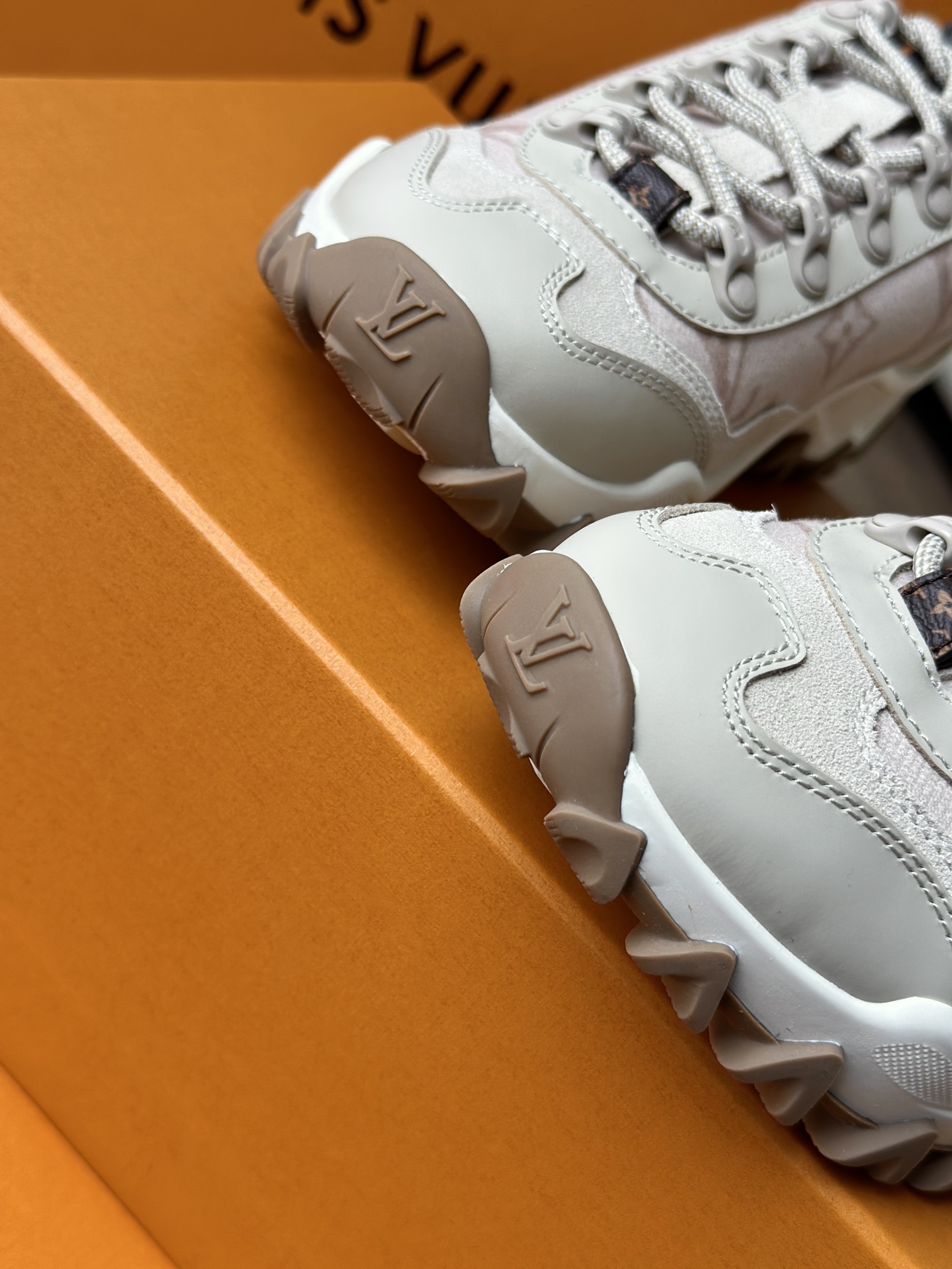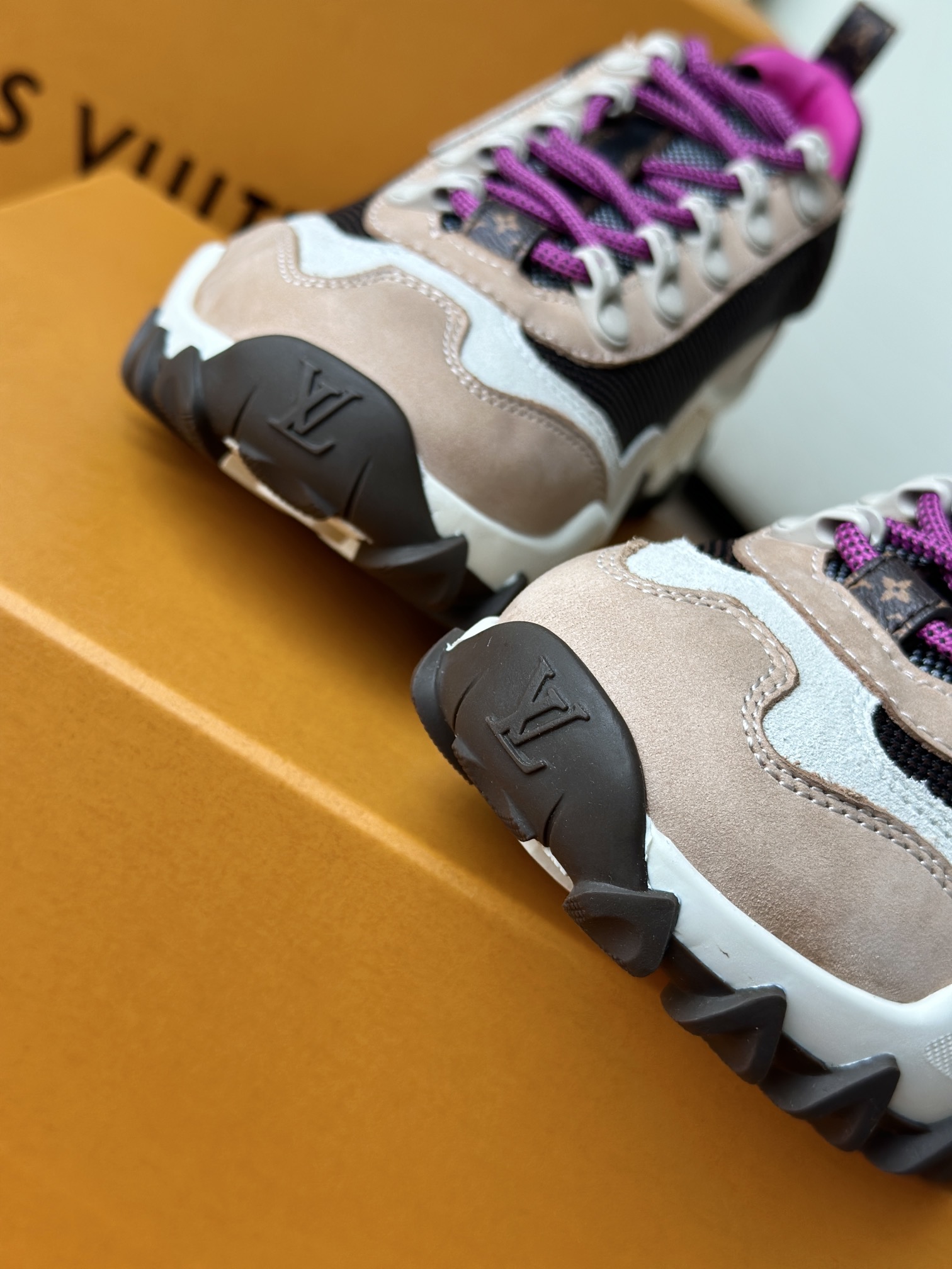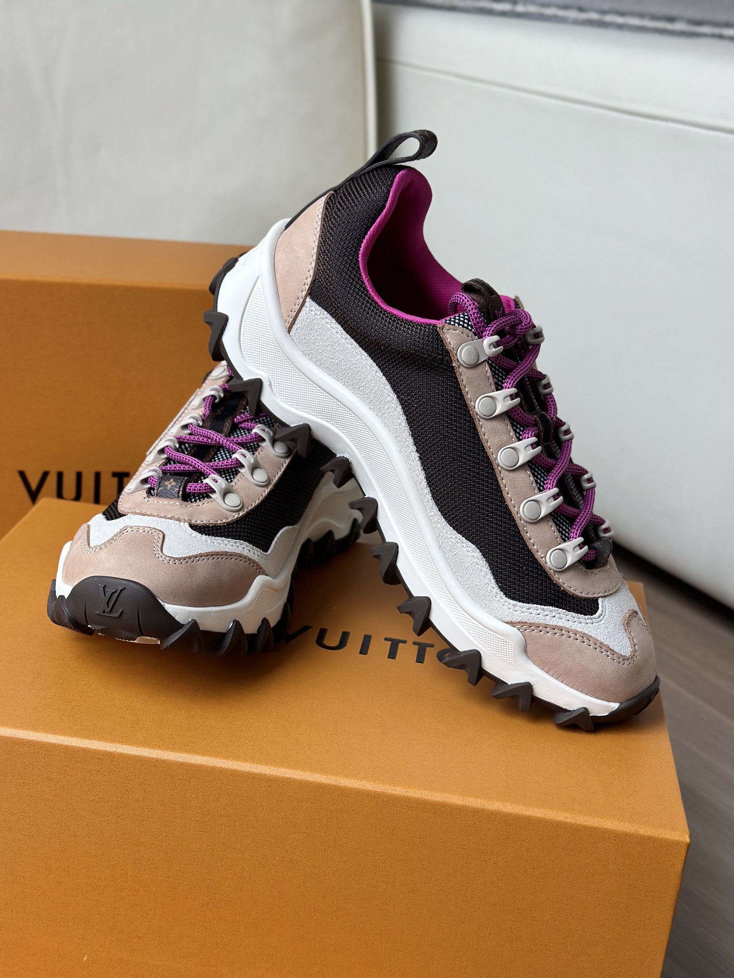 标志性 Monogram 帆布拼接透气网布,锯齿状厚底自带增高气场,既保留了品牌辨识度,又注入了户外机能感