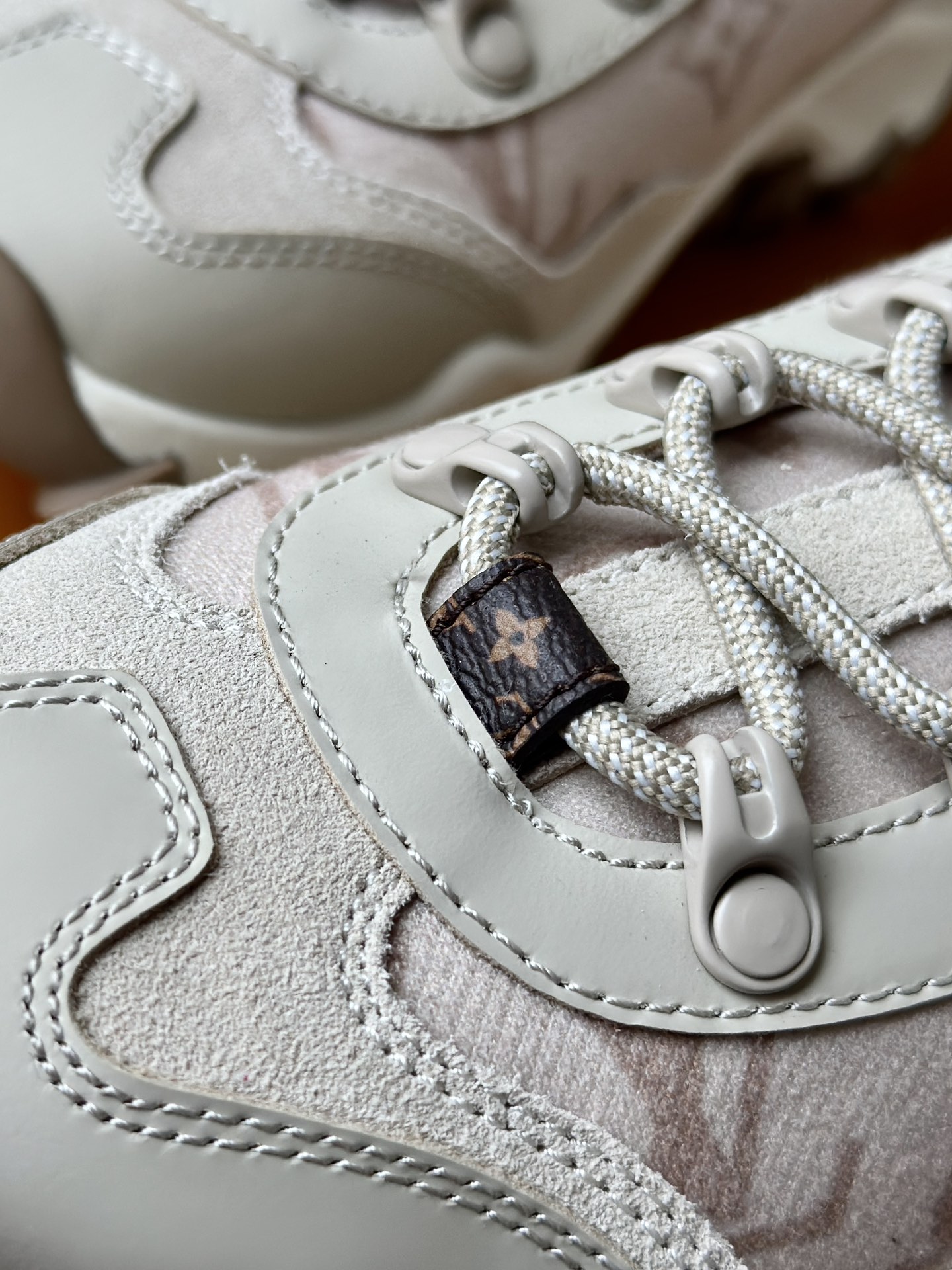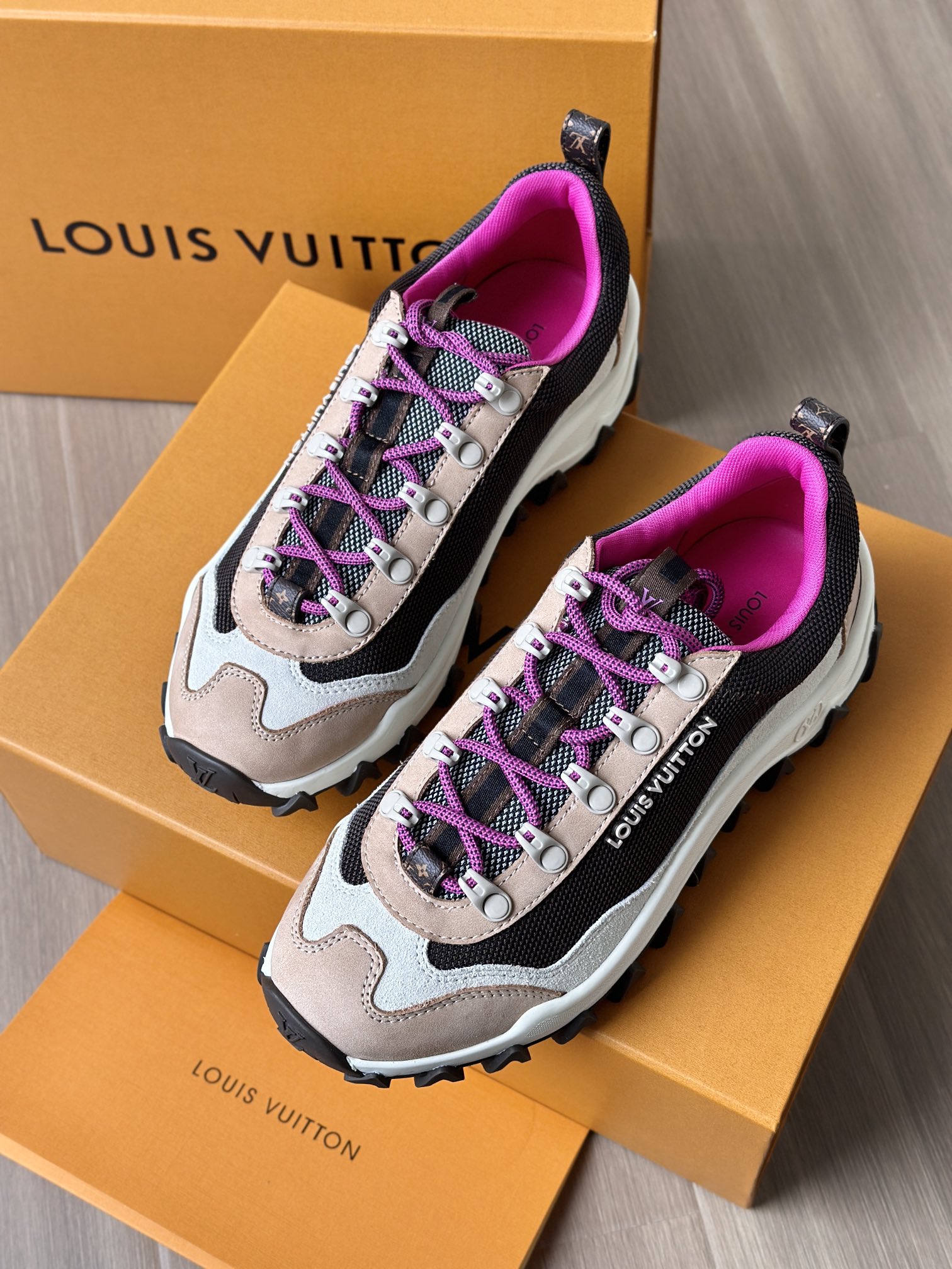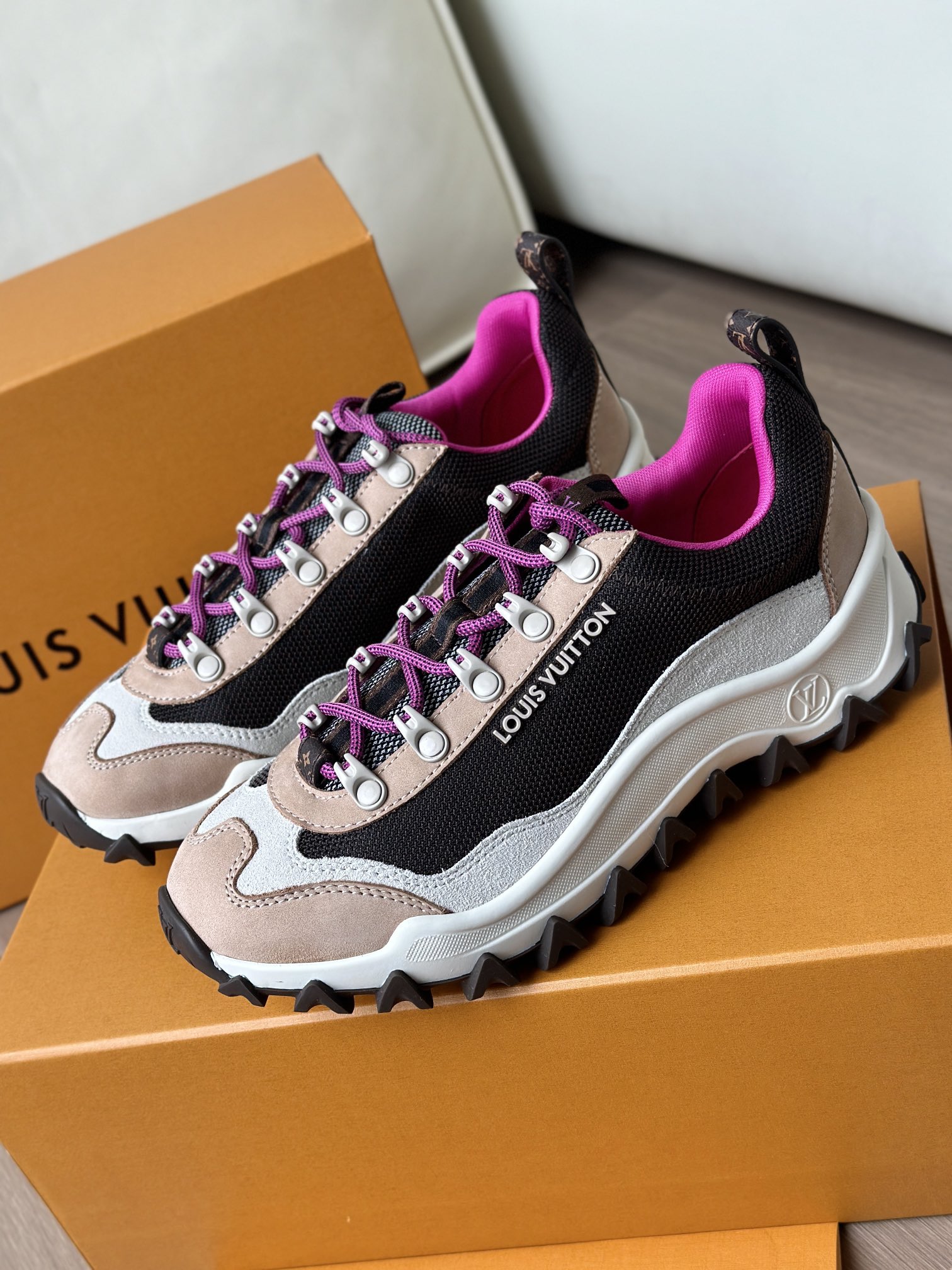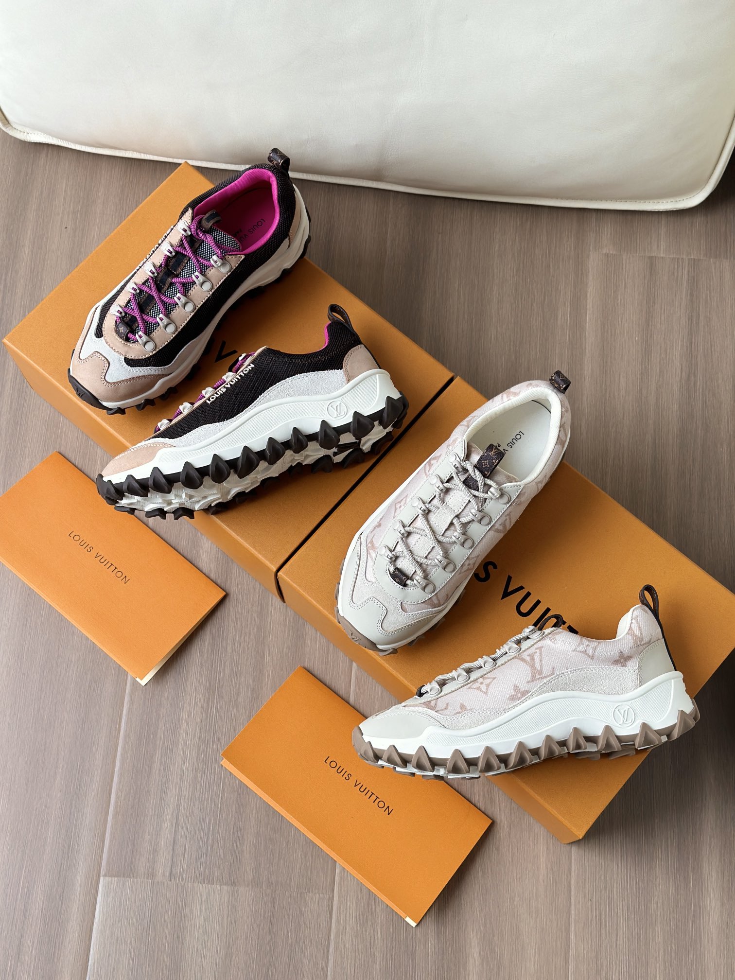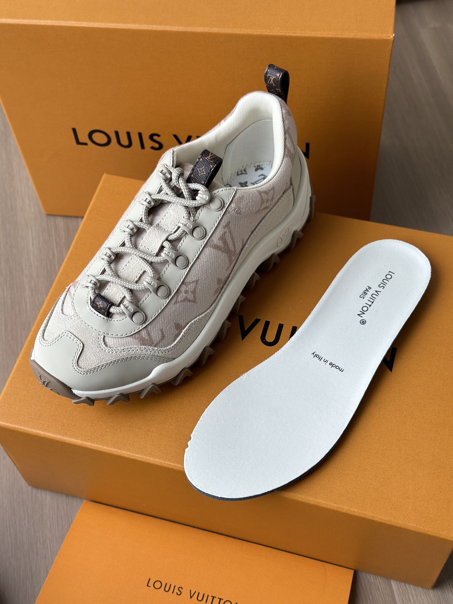 标志性 Monogram 帆布拼接透气网布,锯齿状厚底自带增高气场,既保留了品牌辨识度,又注入了户外机能感