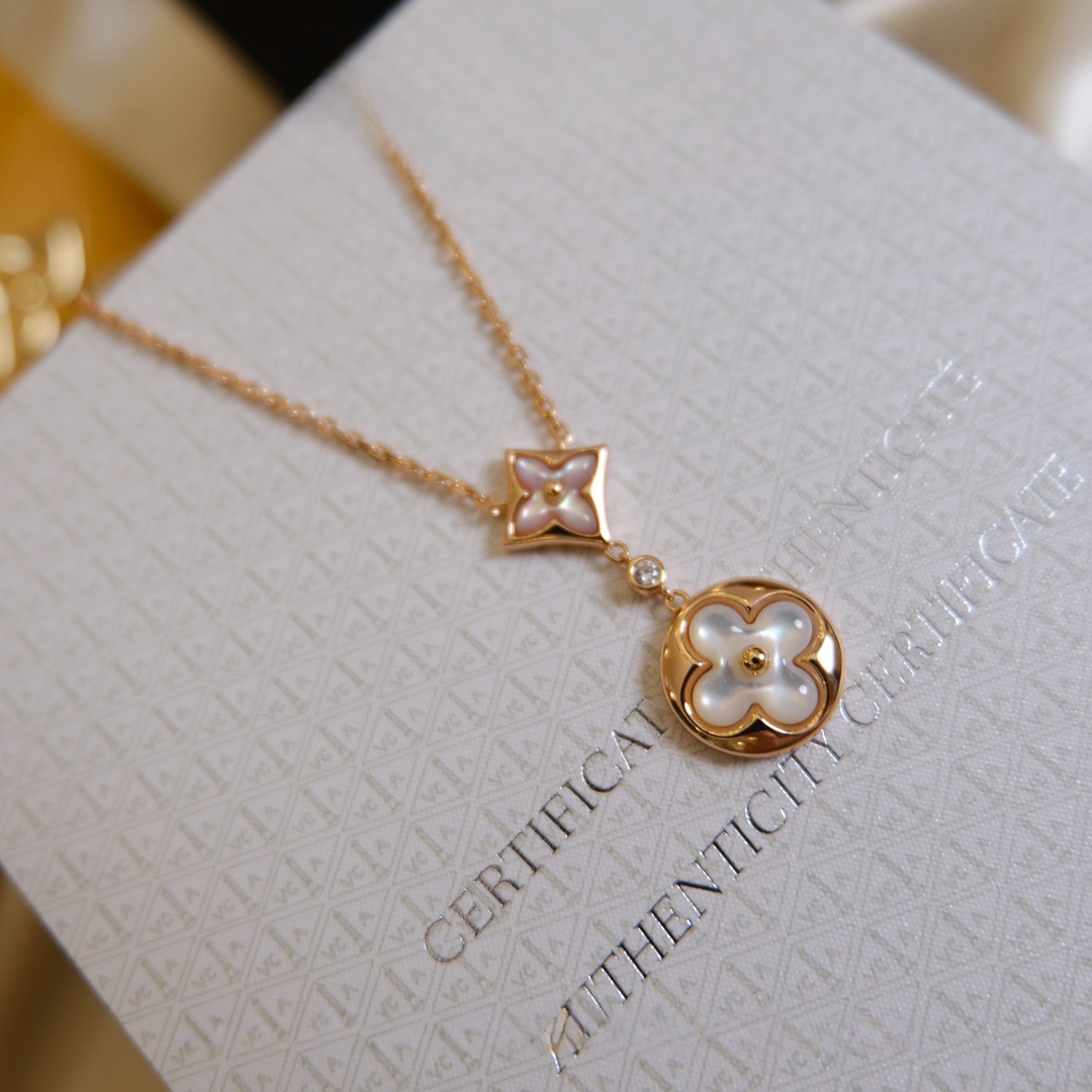 LV的珠宝还是做的相当别致的,经典小花配白贝➕粉色菱形粉贝