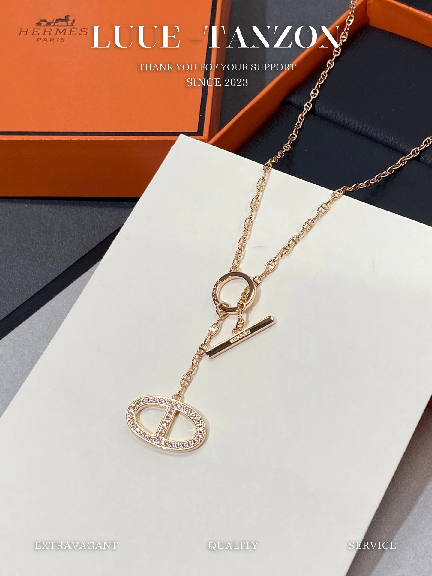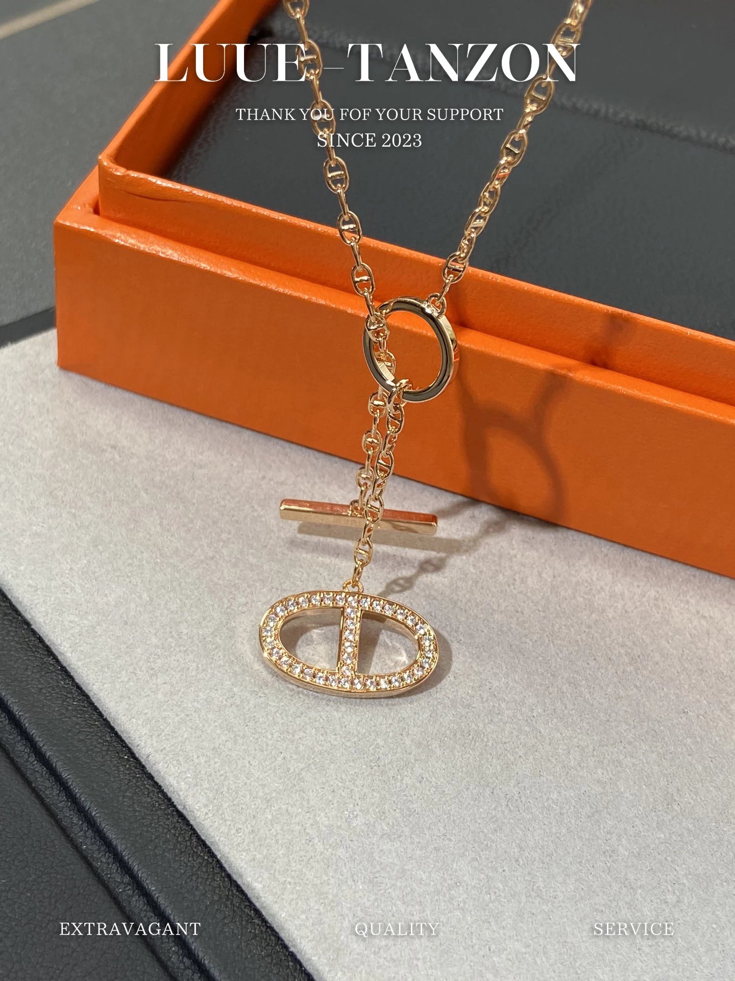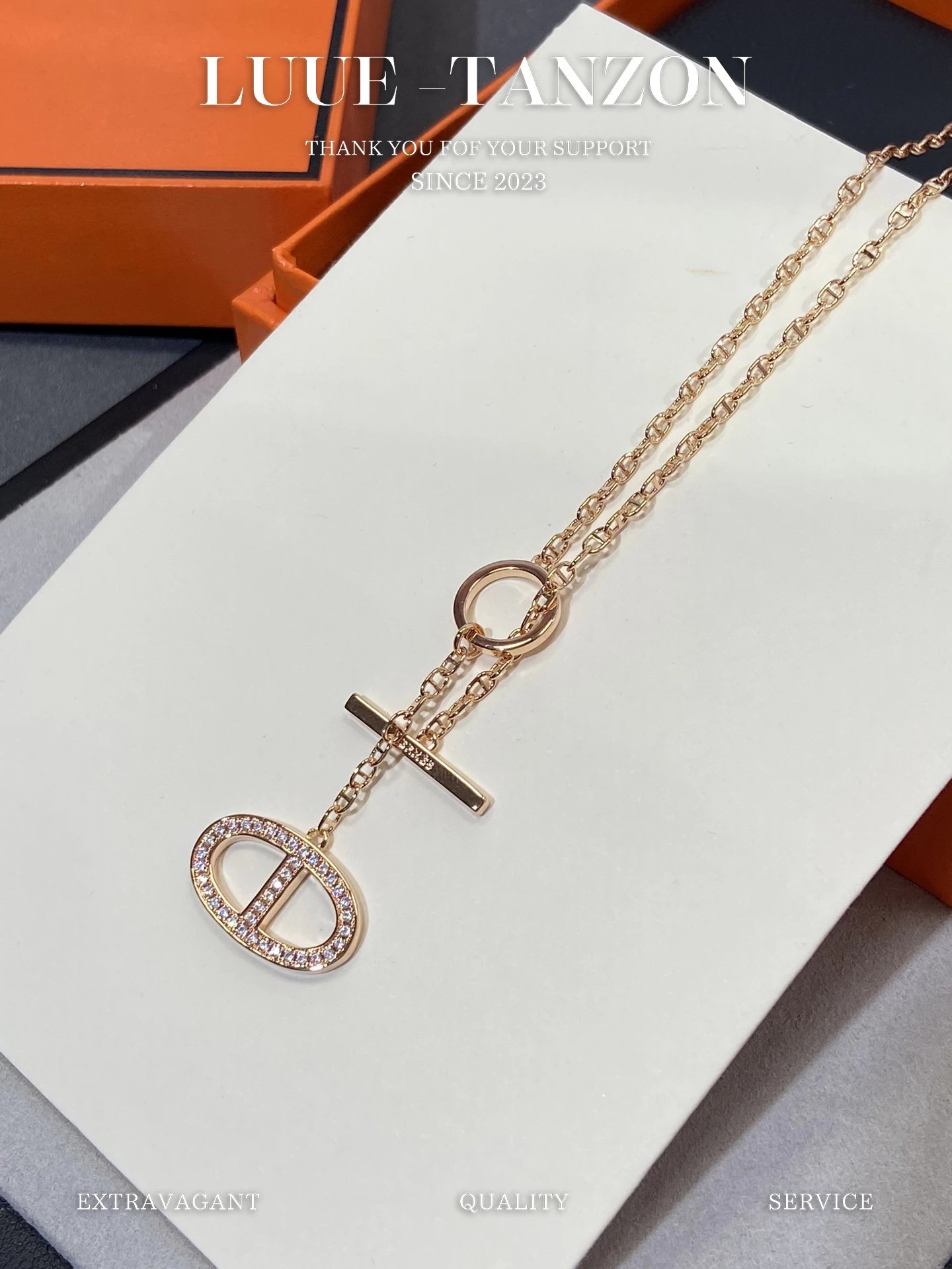 H家 满钻猪鼻双面流苏项链OT扣