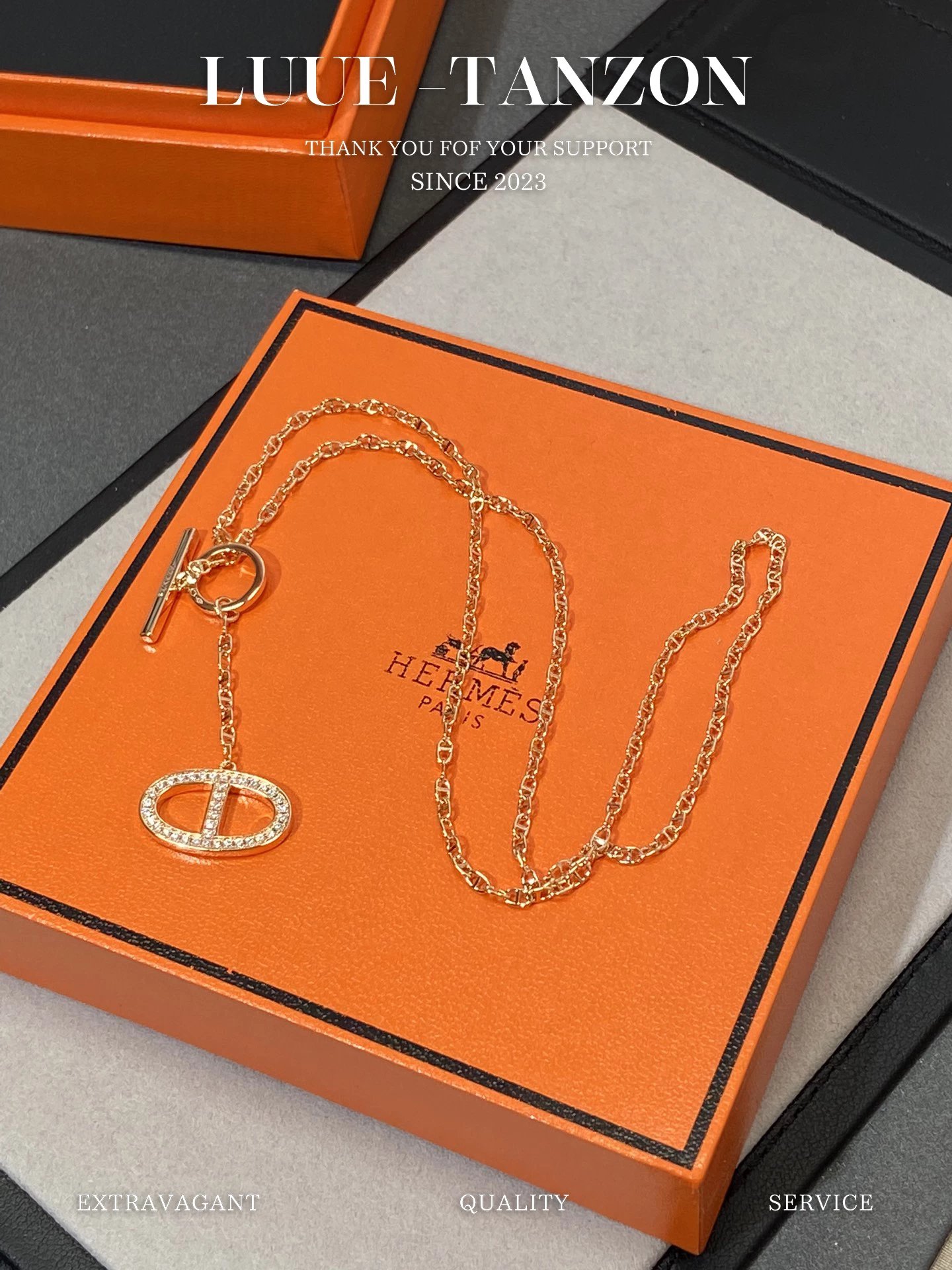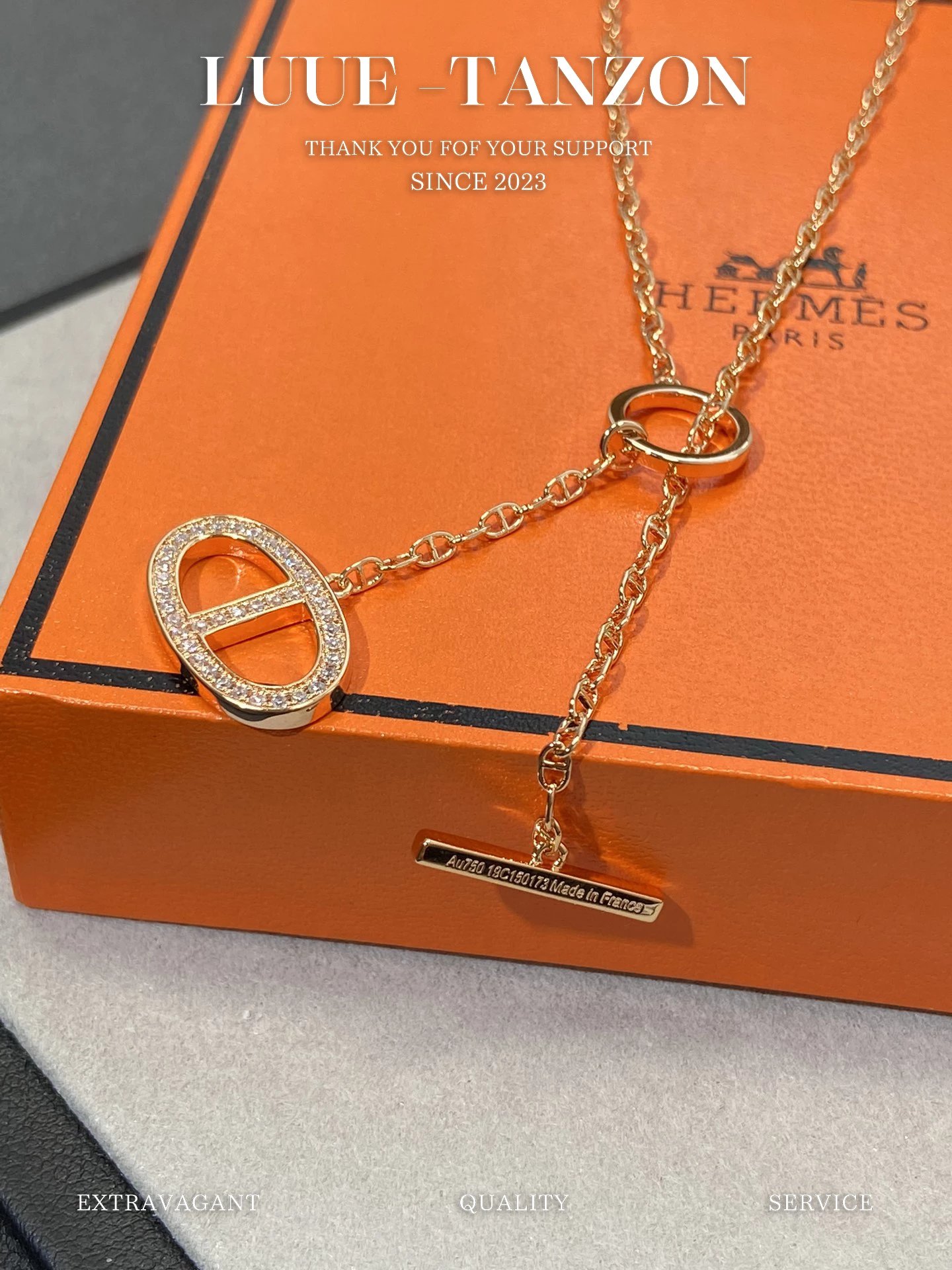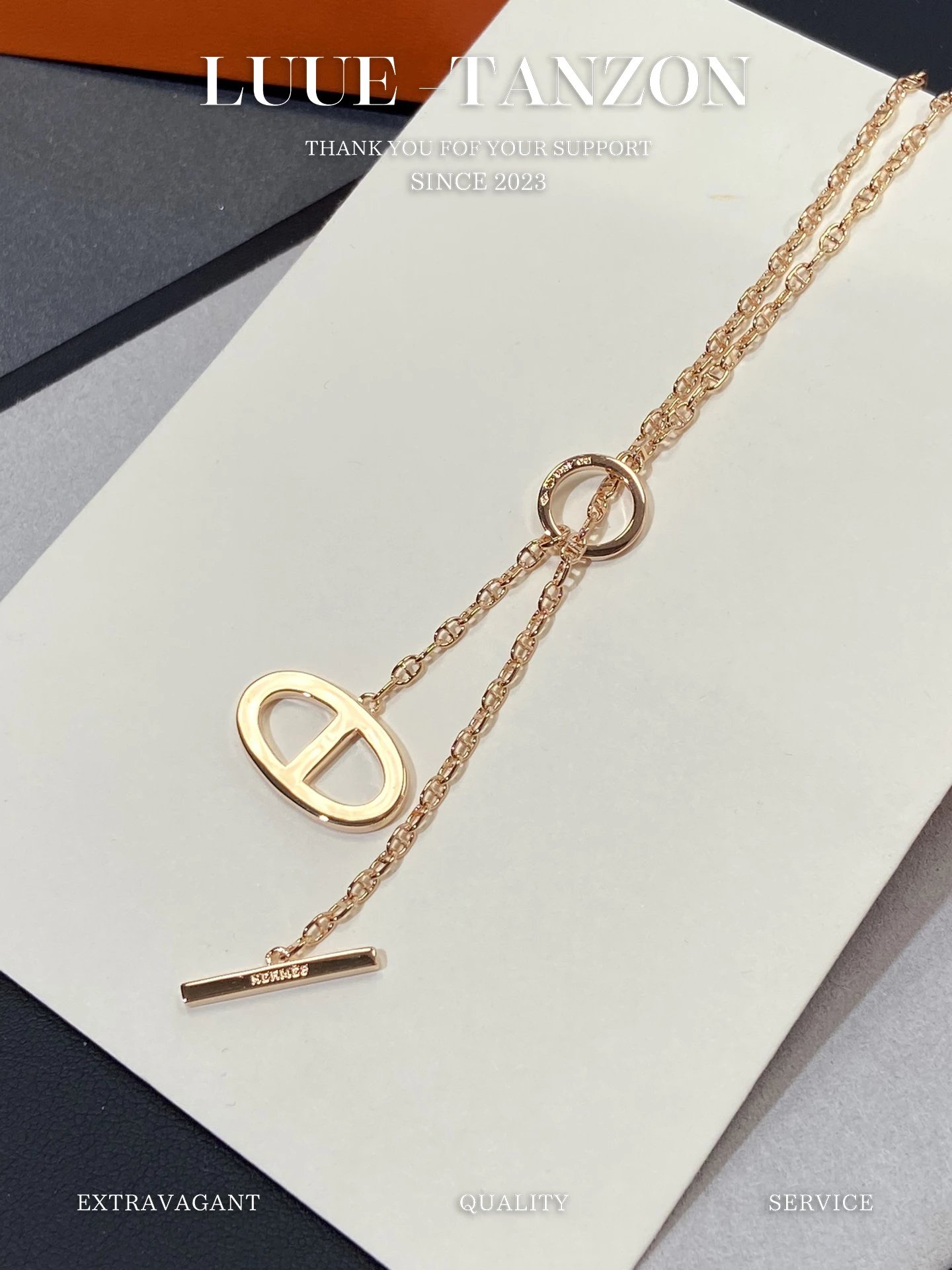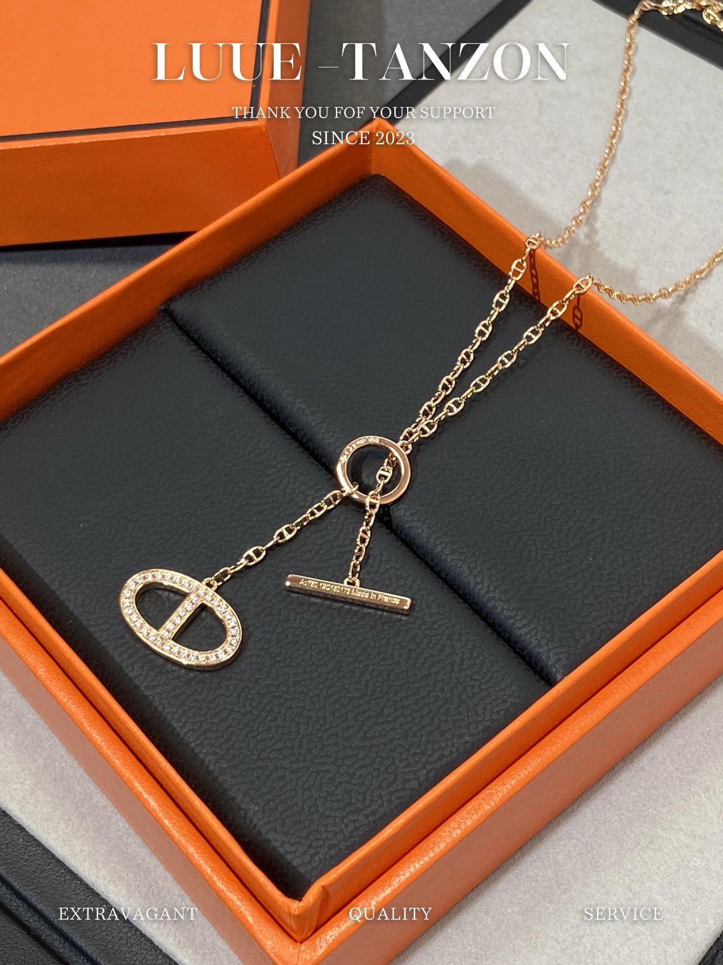 H家 满钻猪鼻双面流苏项链OT扣