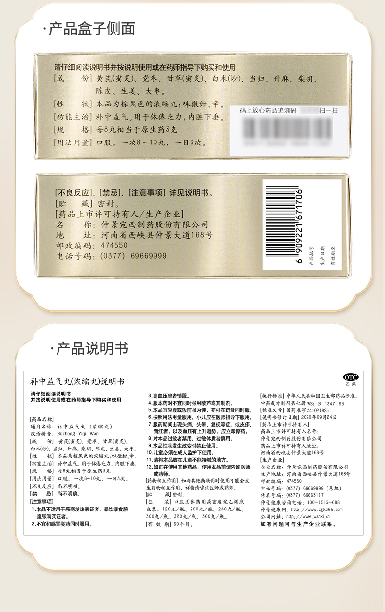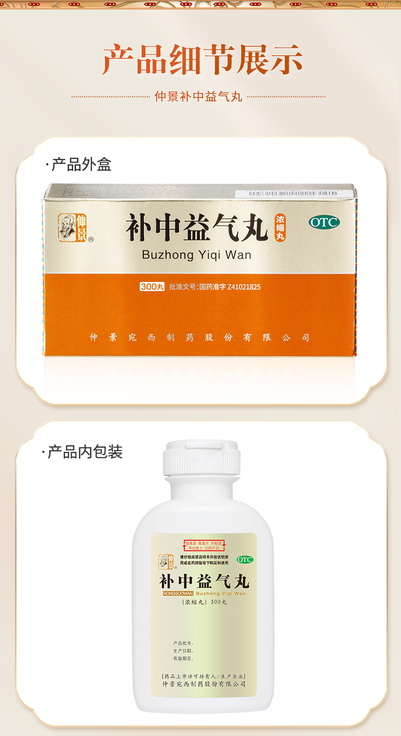 仲景补中益气丸仲景牌脾虚气虚体虚内脏下垂调理补气益气丸健脾药