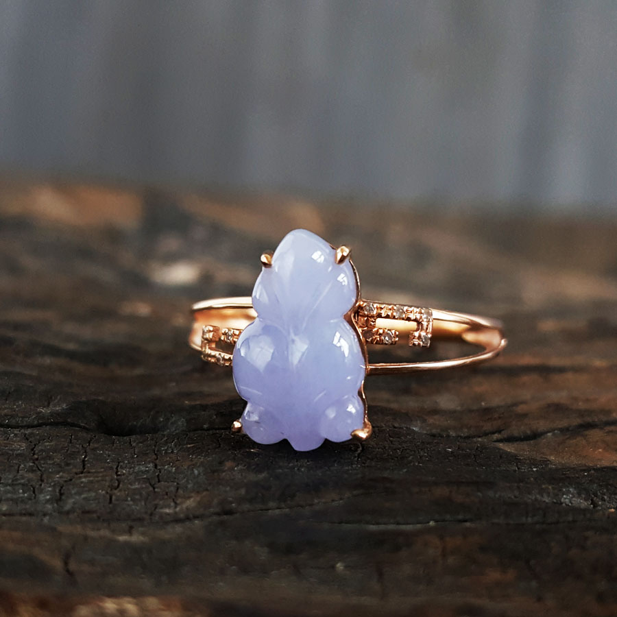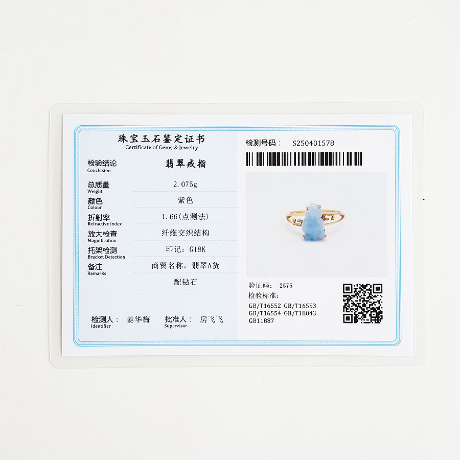 名称 | AU750玫瑰金镶钻镶天然糯种紫罗兰金鱼翡翠(年年有余)戒指 |