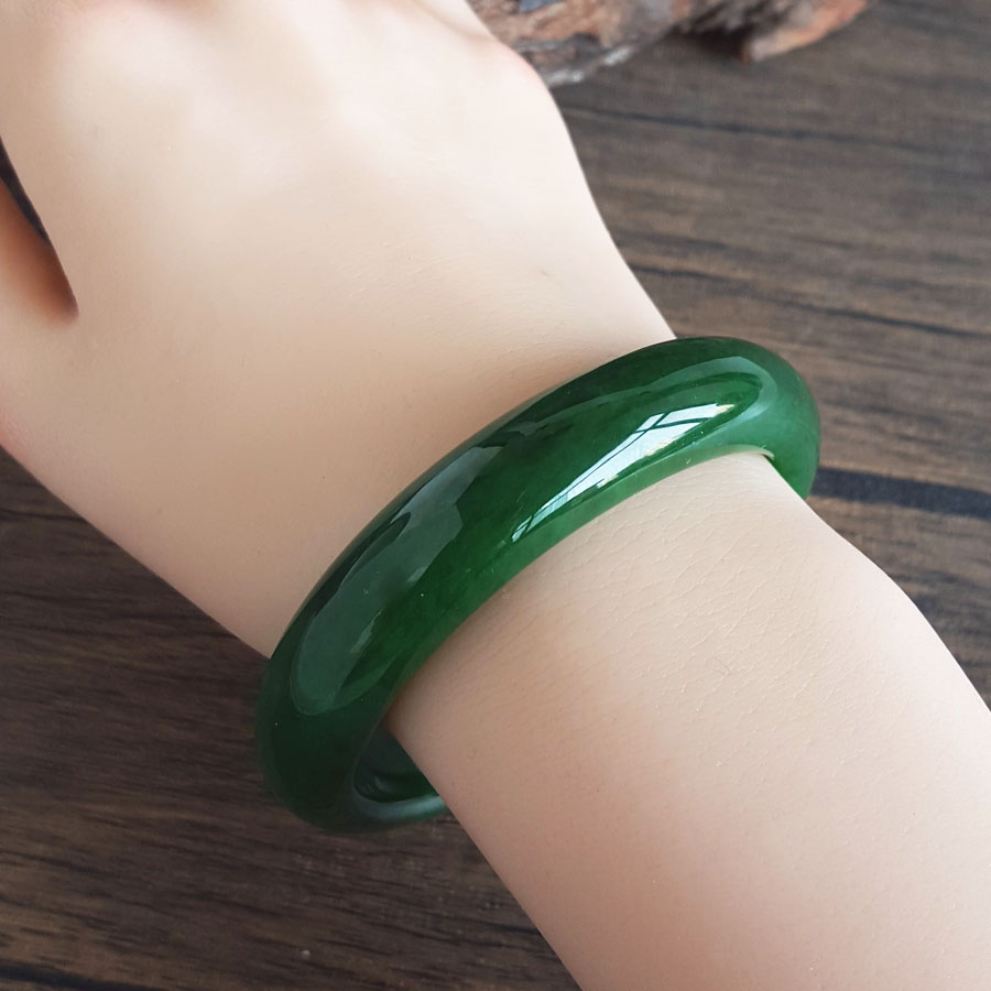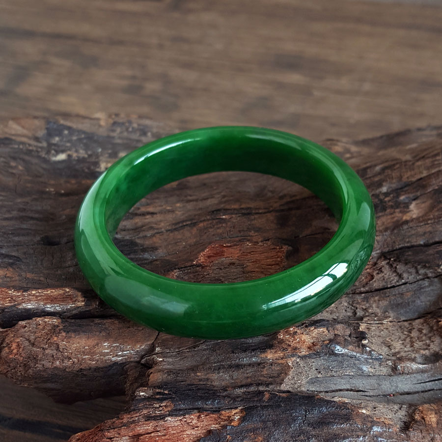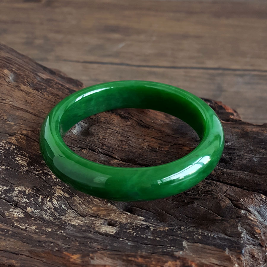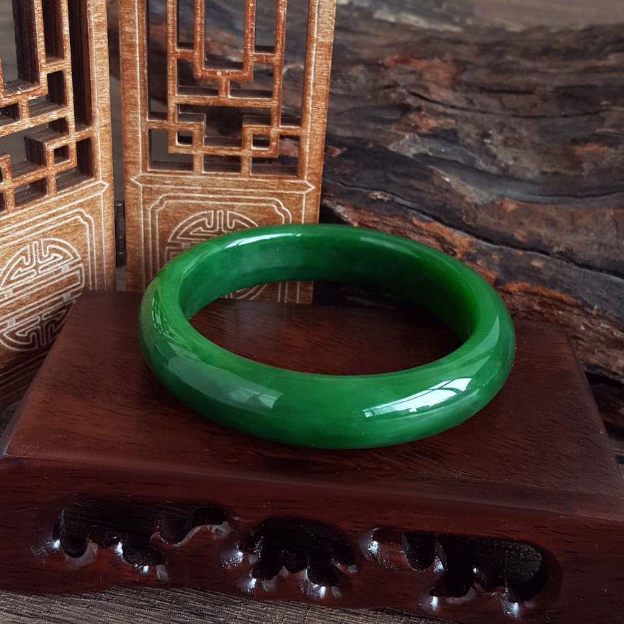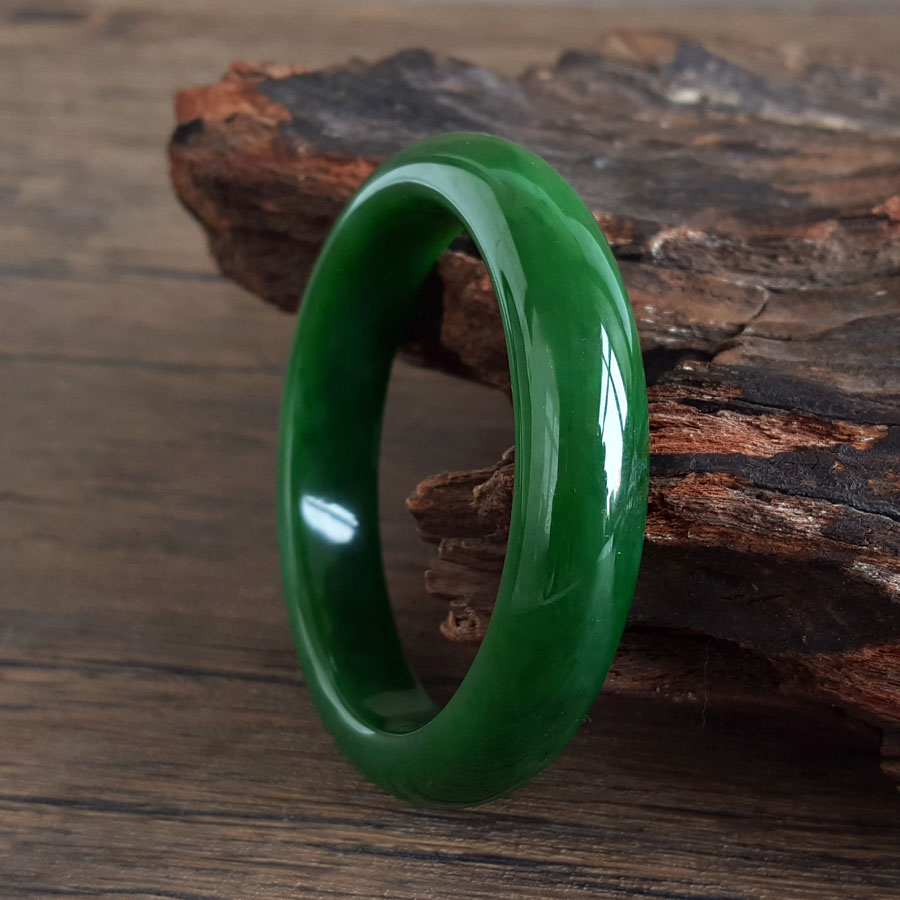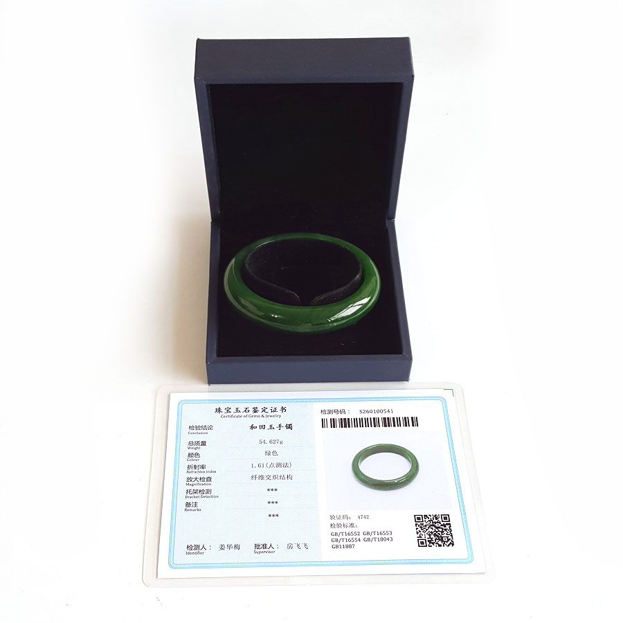 名称 | 天然精品无杂裂俄料菠菜绿无黑点和田玉碧玉56号手镯 |