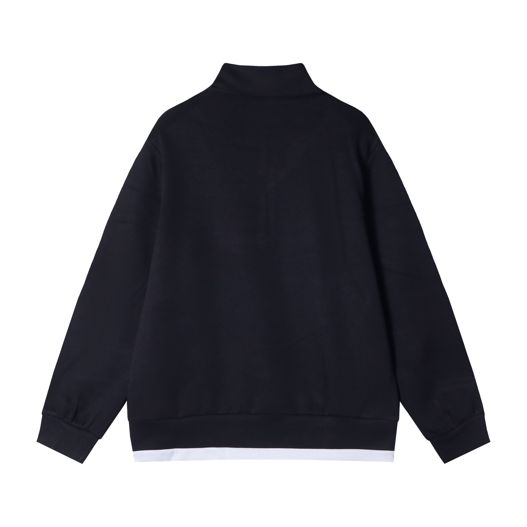 WY694新款男士翻领假两件半拉链时尚设计宽松百搭日常长袖套头