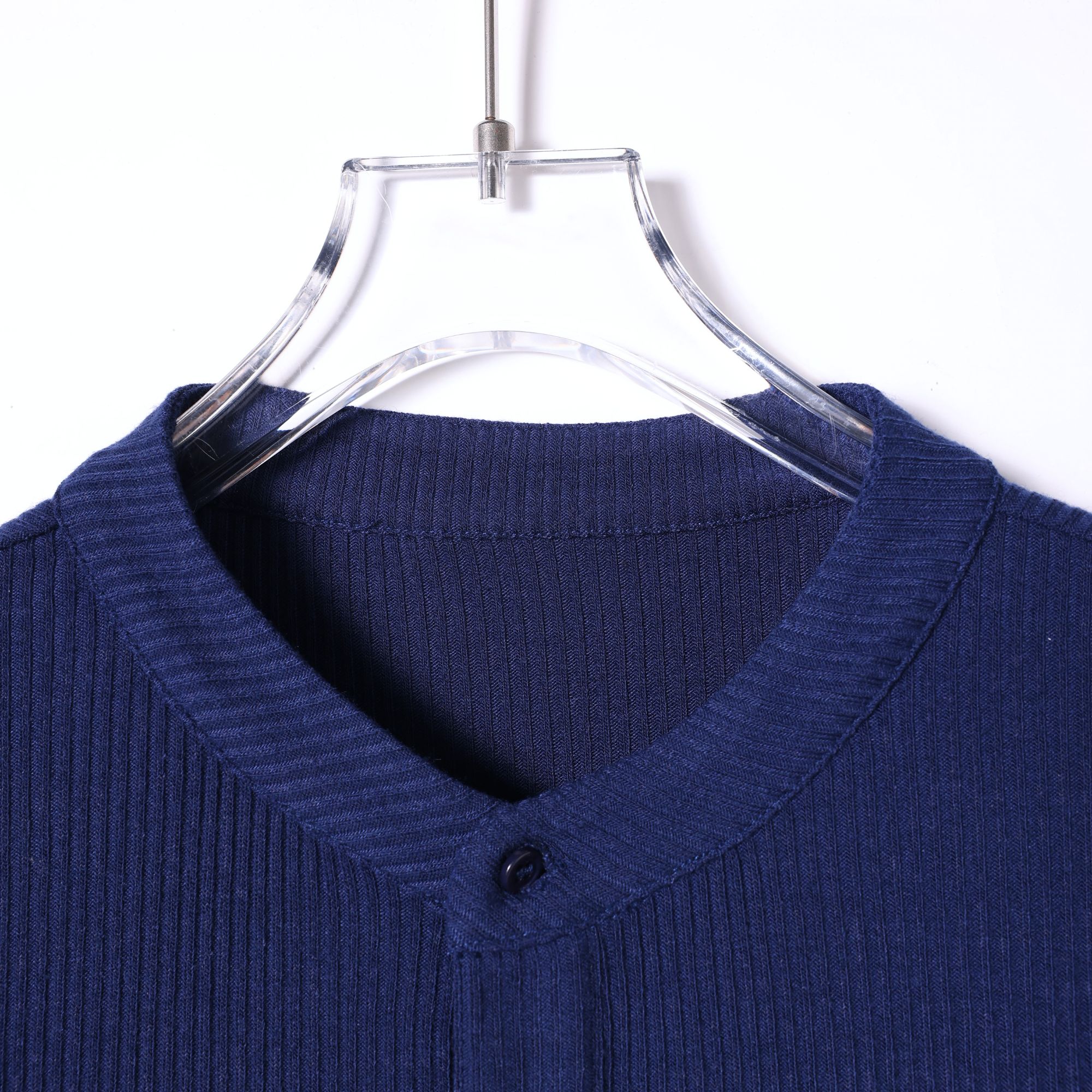 SDSA男装2026新款高贵轻奢潮牌纯色肌理半纽扣立领长袖T恤百搭潮