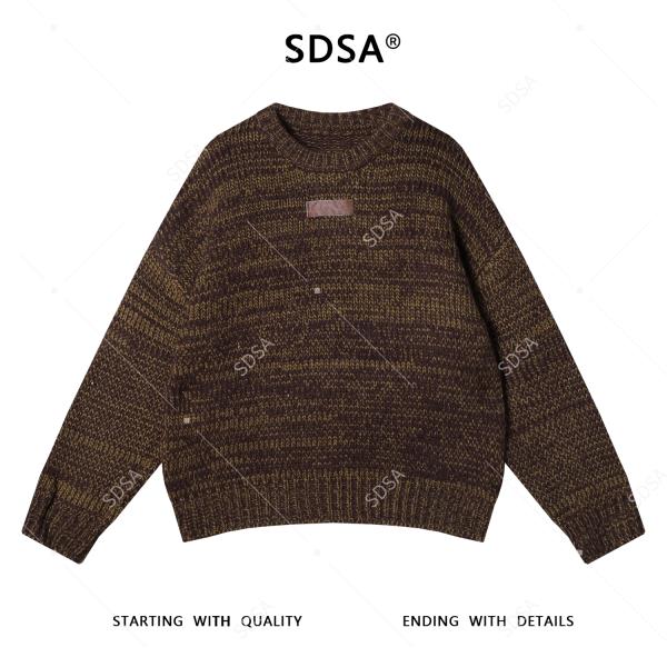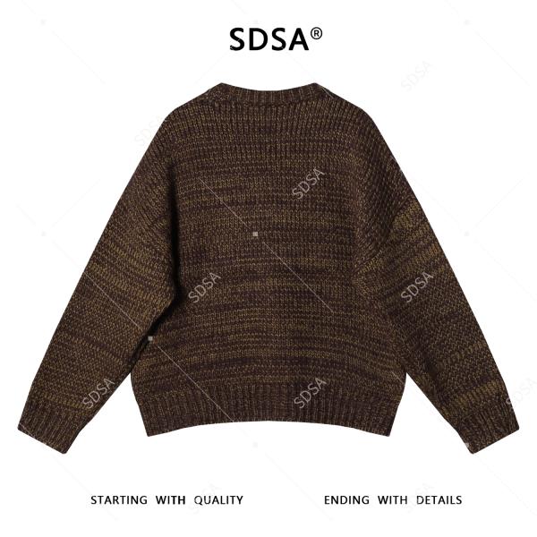 72611SDSA男士秋冬新款痞帅男装港风撞色圆领针织衫复古短款时尚毛衣