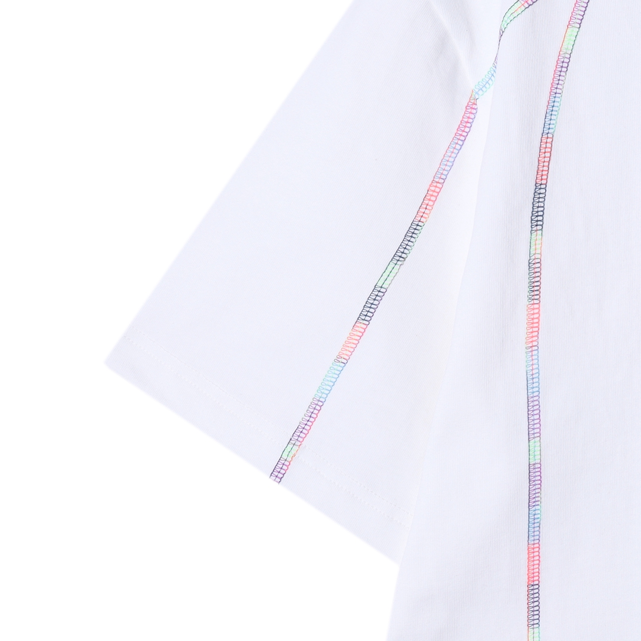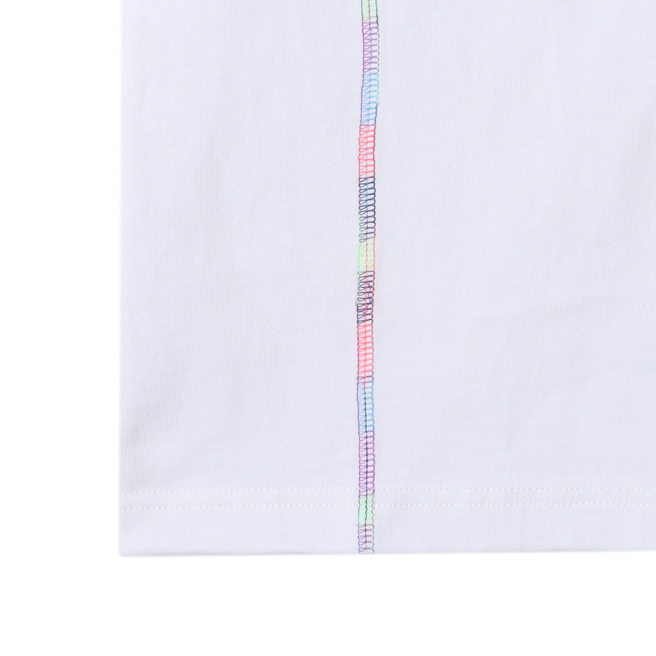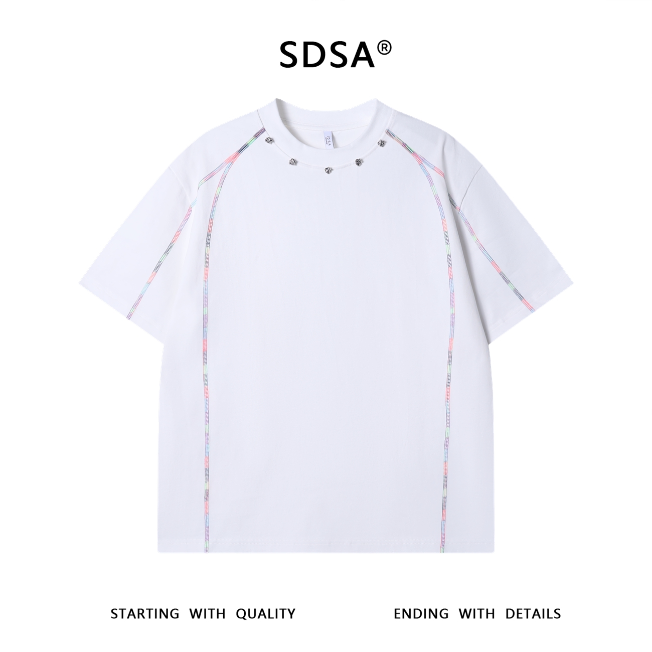T3243夏季高级感新款韩系潮牌彩色缝线圆领短袖T恤领口立体装饰上衣
