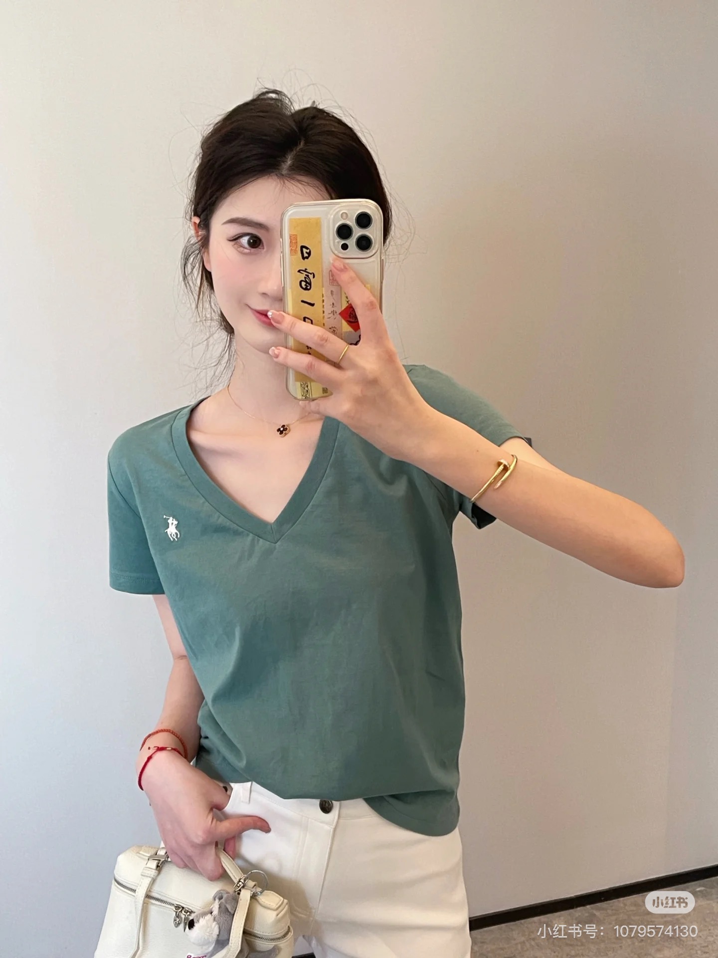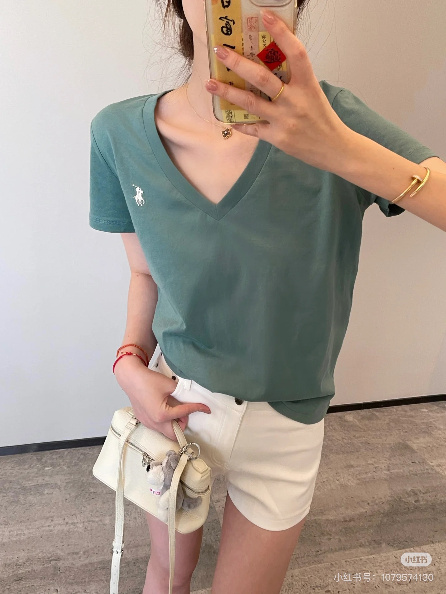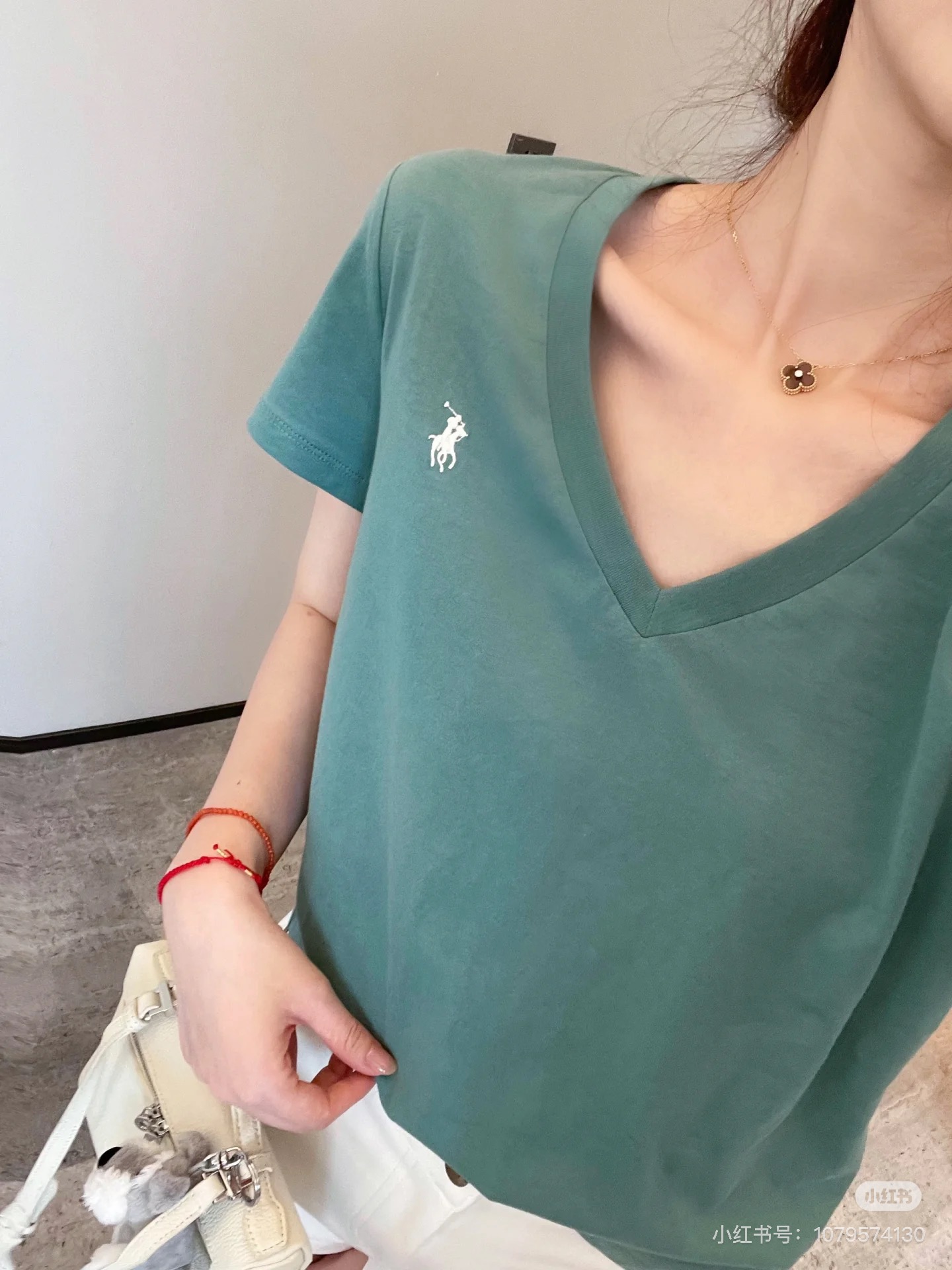 Ralph Lauren/拉夫劳伦老钱风v领短袖T恤 太喜欢这种基础又佰搭的单品! 这系列 上身就是干干净净的,版型也很好看~ 真的很嫩很显白我真的爱了 简约v领设计,修饰各种脸型,百搭不挑人 胸前经典小马标logo刺绣,别致篙级 干净利落正肩的tee✔松量剪裁,所以也不限制身材,一点也不挑人! 盲入不踩雷!无论是搭配裙装还是裤装都不会出错,算是日常生活的万能款~一共四个颜色,黑灰白绿!无论哪个颜色,你闭眼选都不会踩雷。