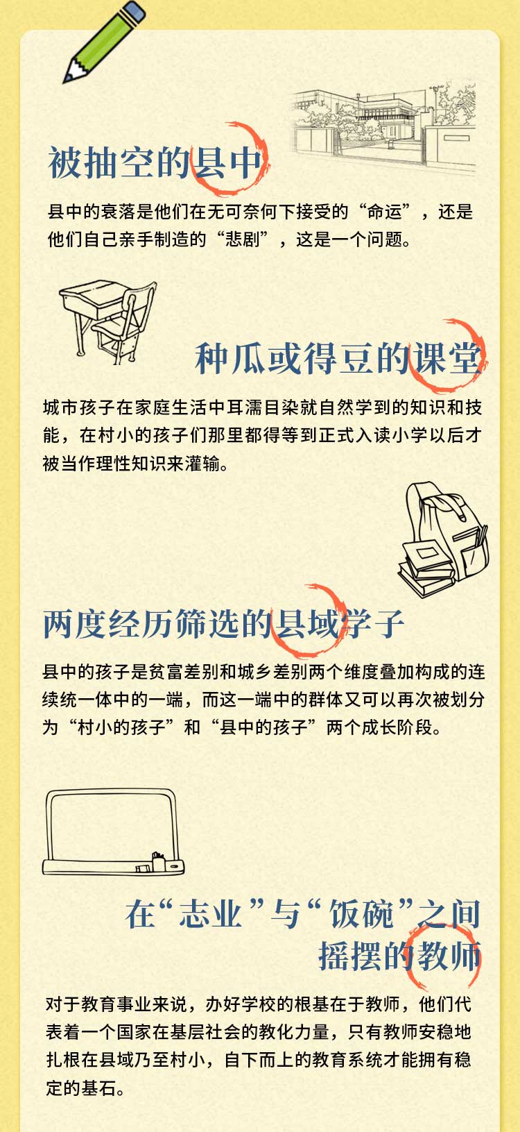 第二, 要考虑到初中和高中也许就是一些学生的最高学段, 学校应该提供最完整的文理通识教育。县域里面的校长都应该清楚地认识到这一点, 很多学生从他们的学校毕业, 可能一生都不会再踏入学校了, 后面就是忙忙碌碌地谋生。如果他一辈子注定了只能高中毕业,那么高中就有义务让他获得最基本的文理科知识。