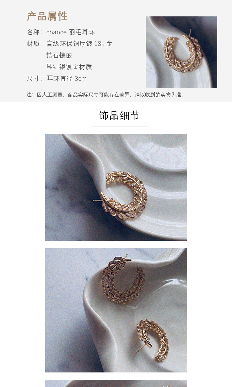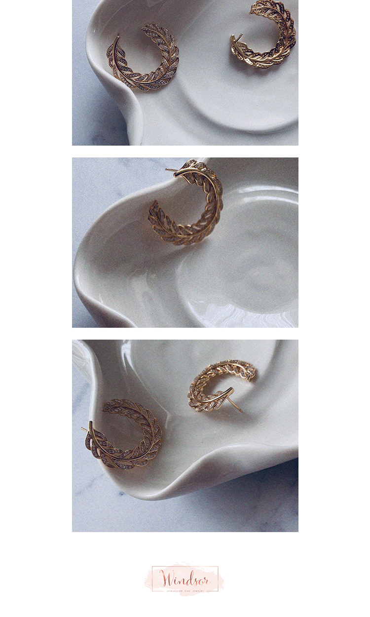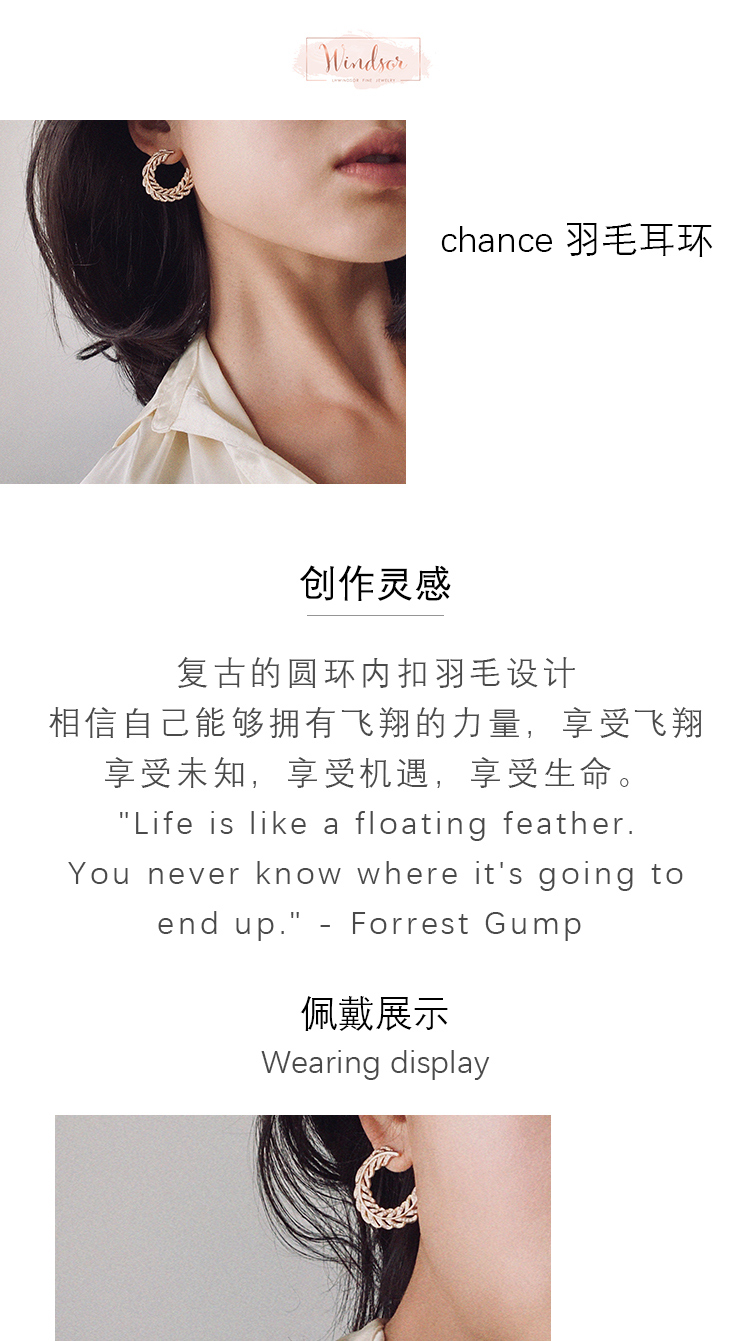 LHWINDSORchance羽毛耳环复古圆环内扣设计质感耳饰